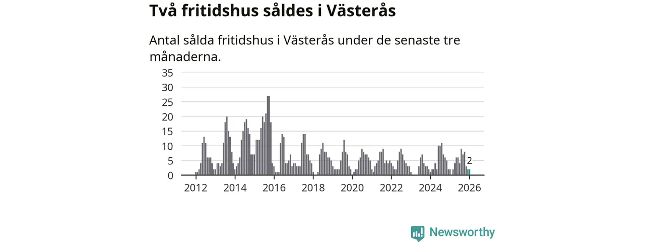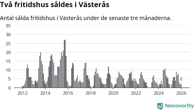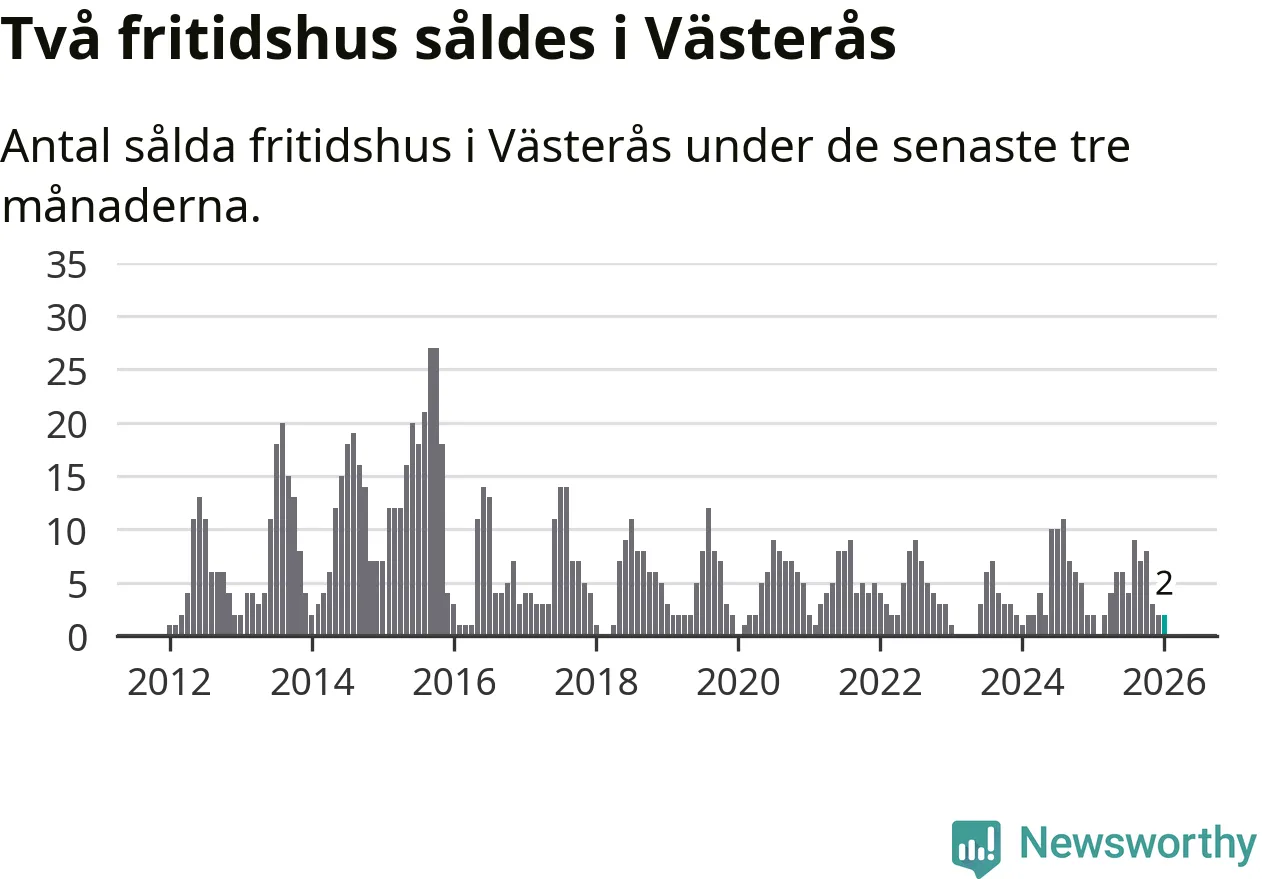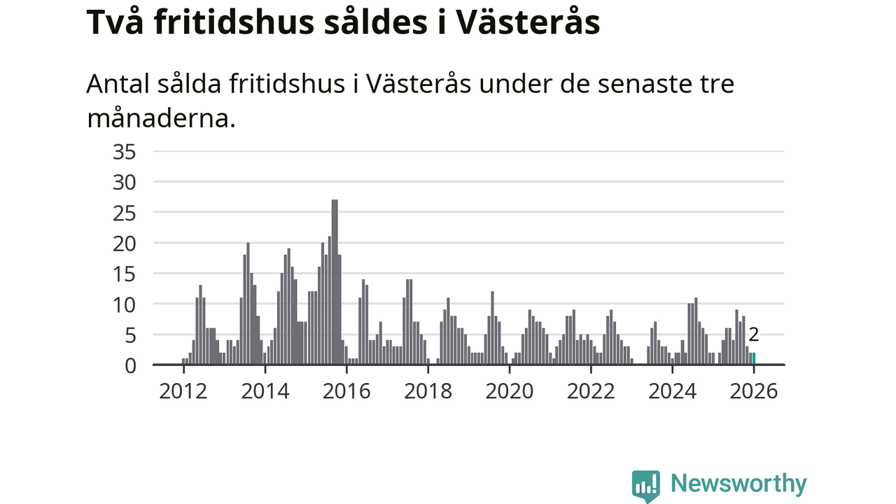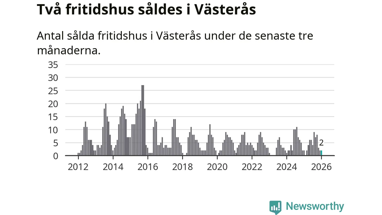 Mellan november och januari gjordes sammanlagt två affärer med fritidshus i Västerås kommun. Det är lika många affärer som vid motsvarande tid i fjol.
