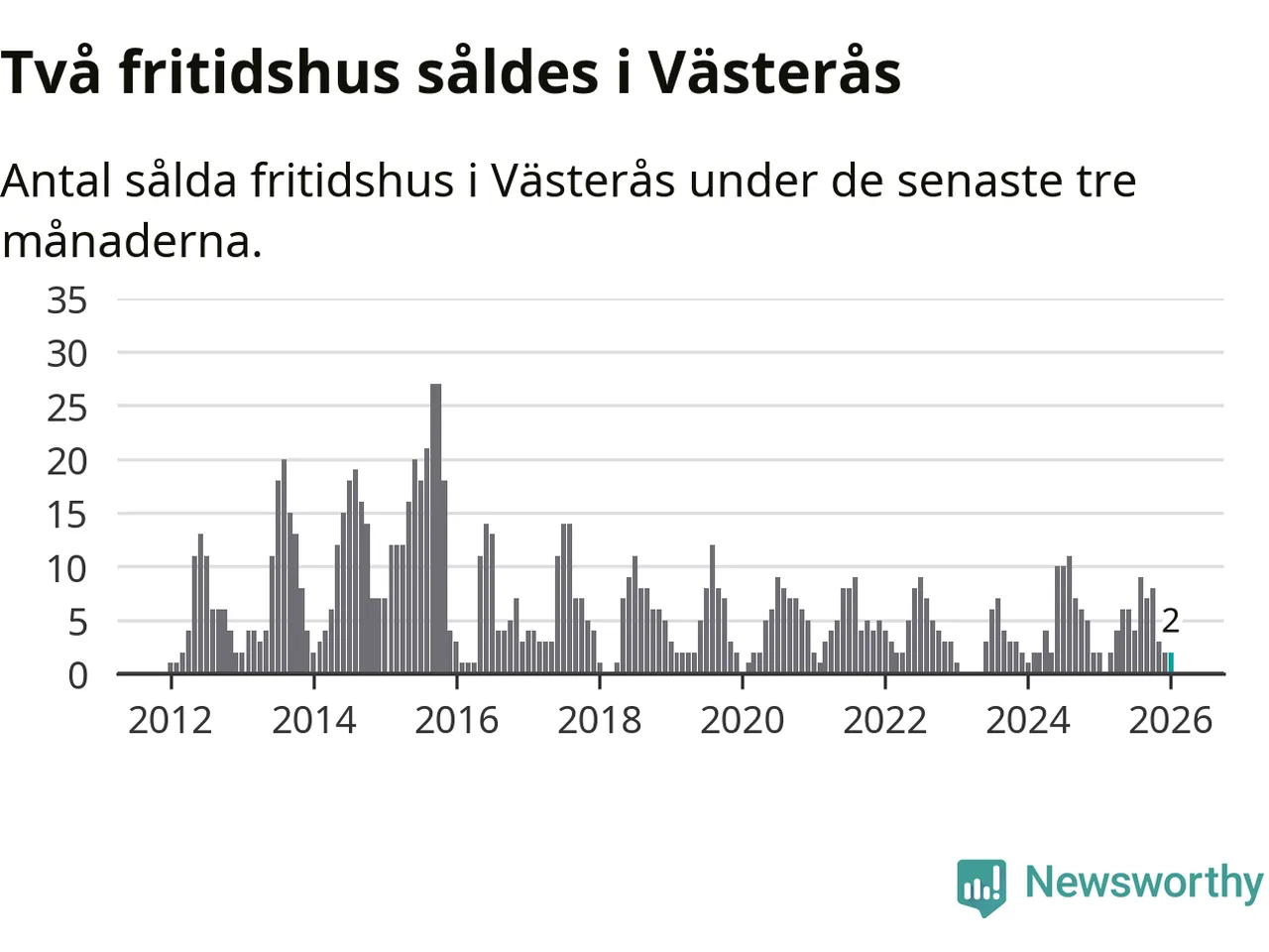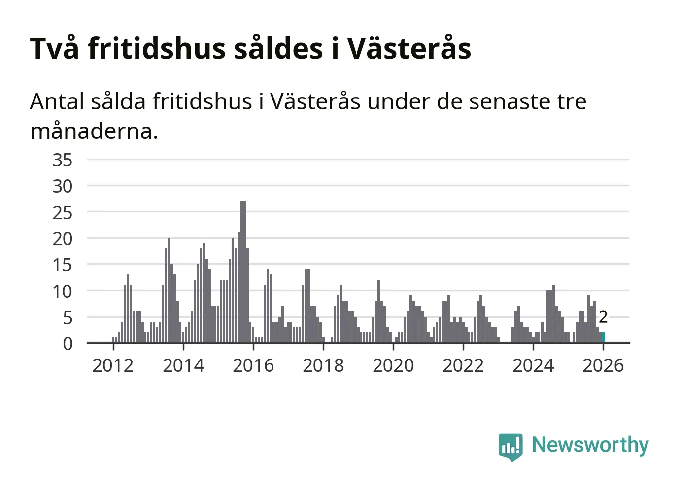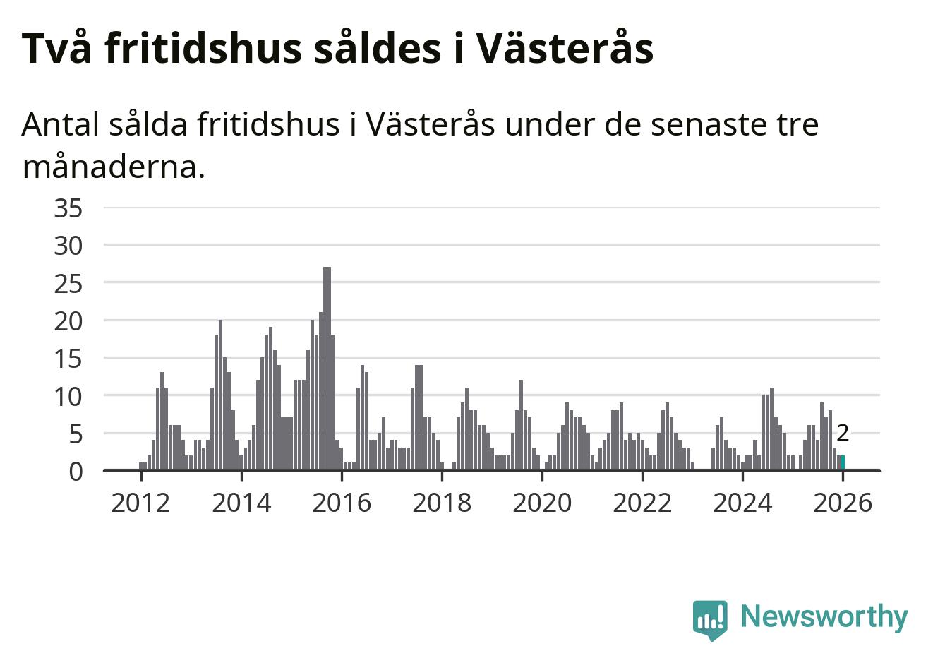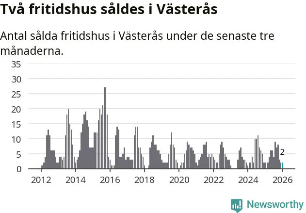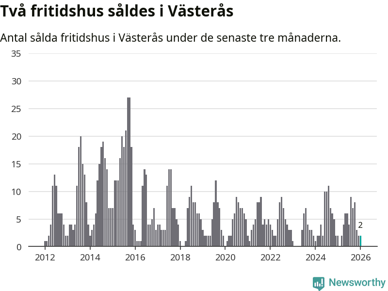 Mellan november och januari gjordes sammanlagt två affärer med fritidshus i Västerås kommun. Det är lika många affärer som vid motsvarande tid i fjol.