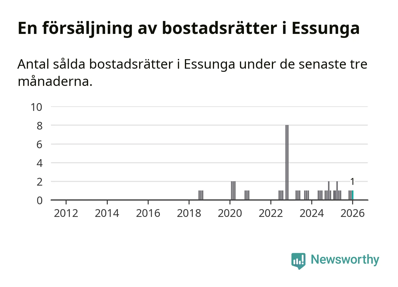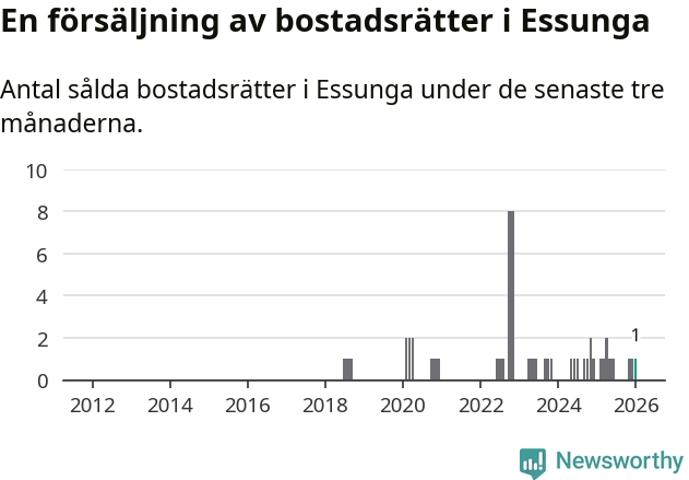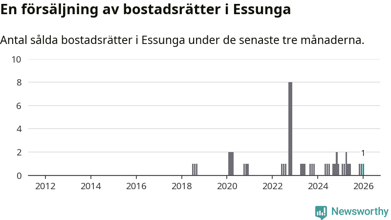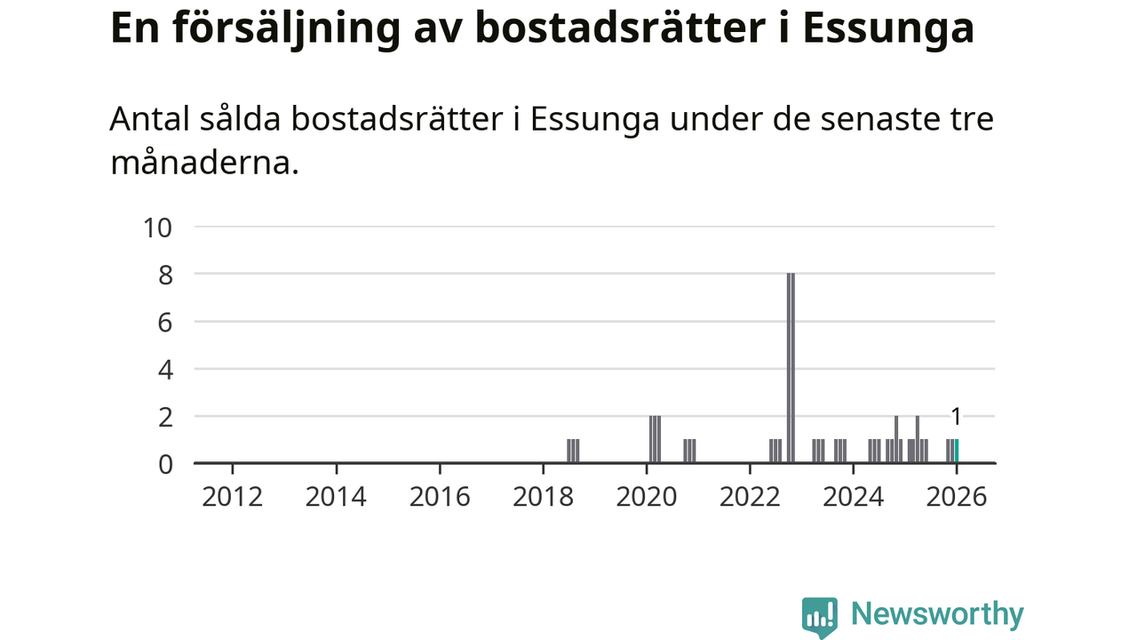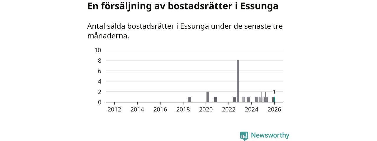 Mellan november och januari gjordes sammanlagt en affär med bostadsrätter i Essunga kommun.