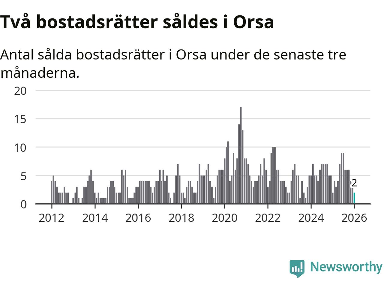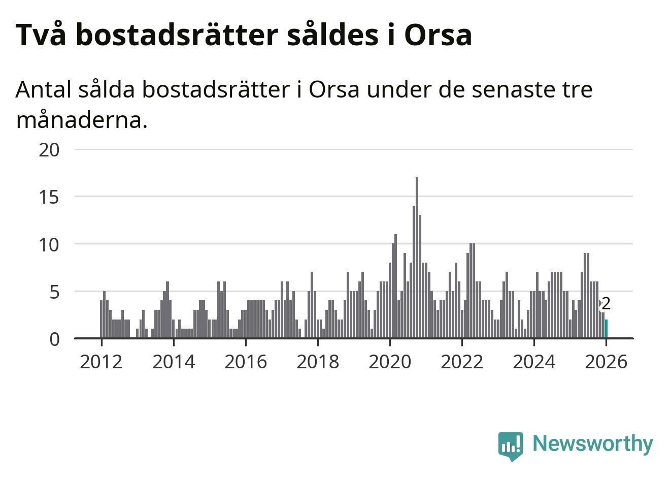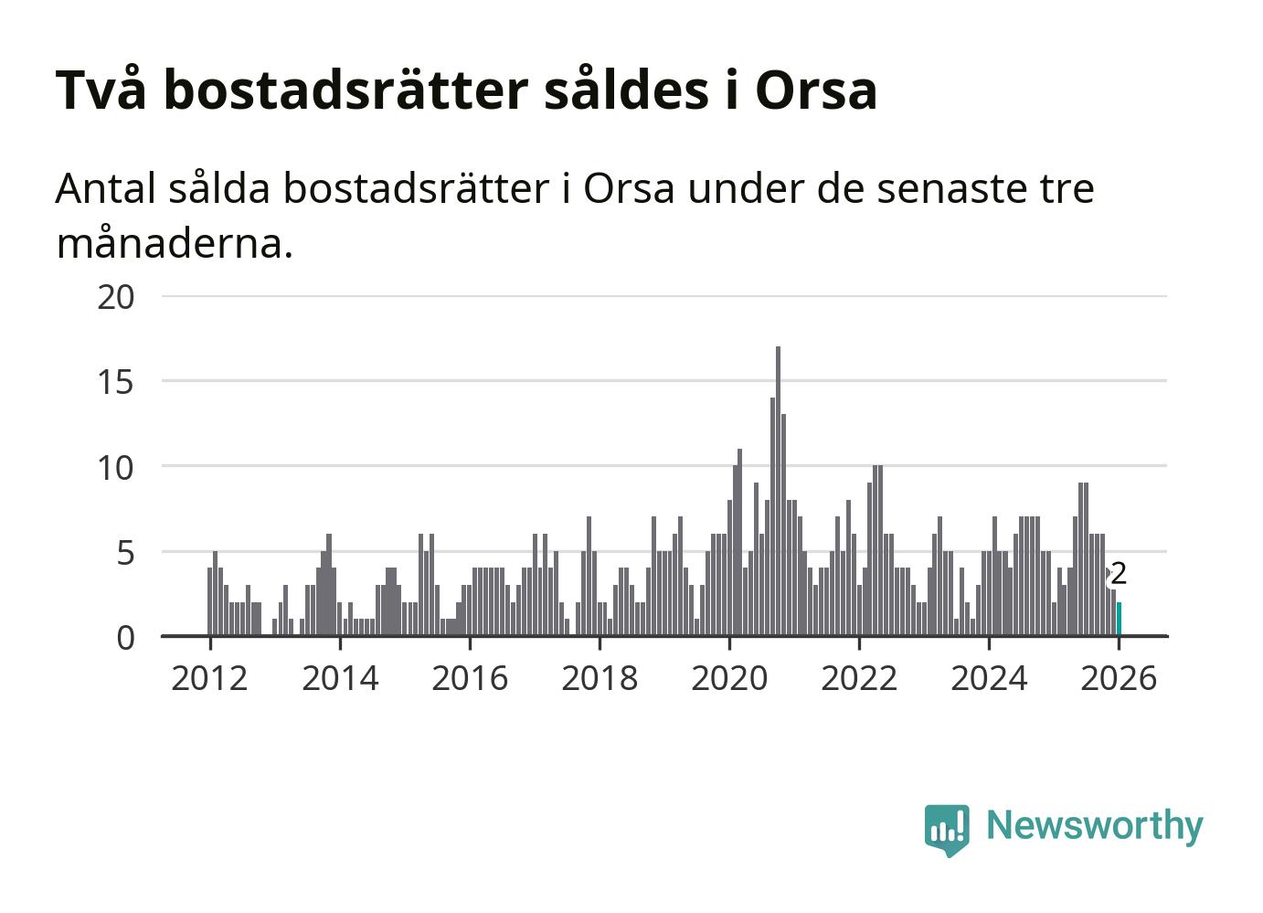 Graf: Antal sålda bostadsrätter i Orsa kommun