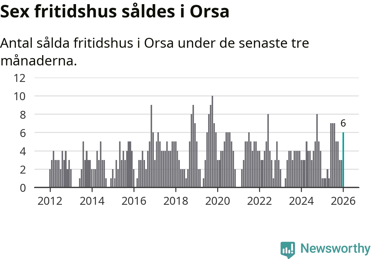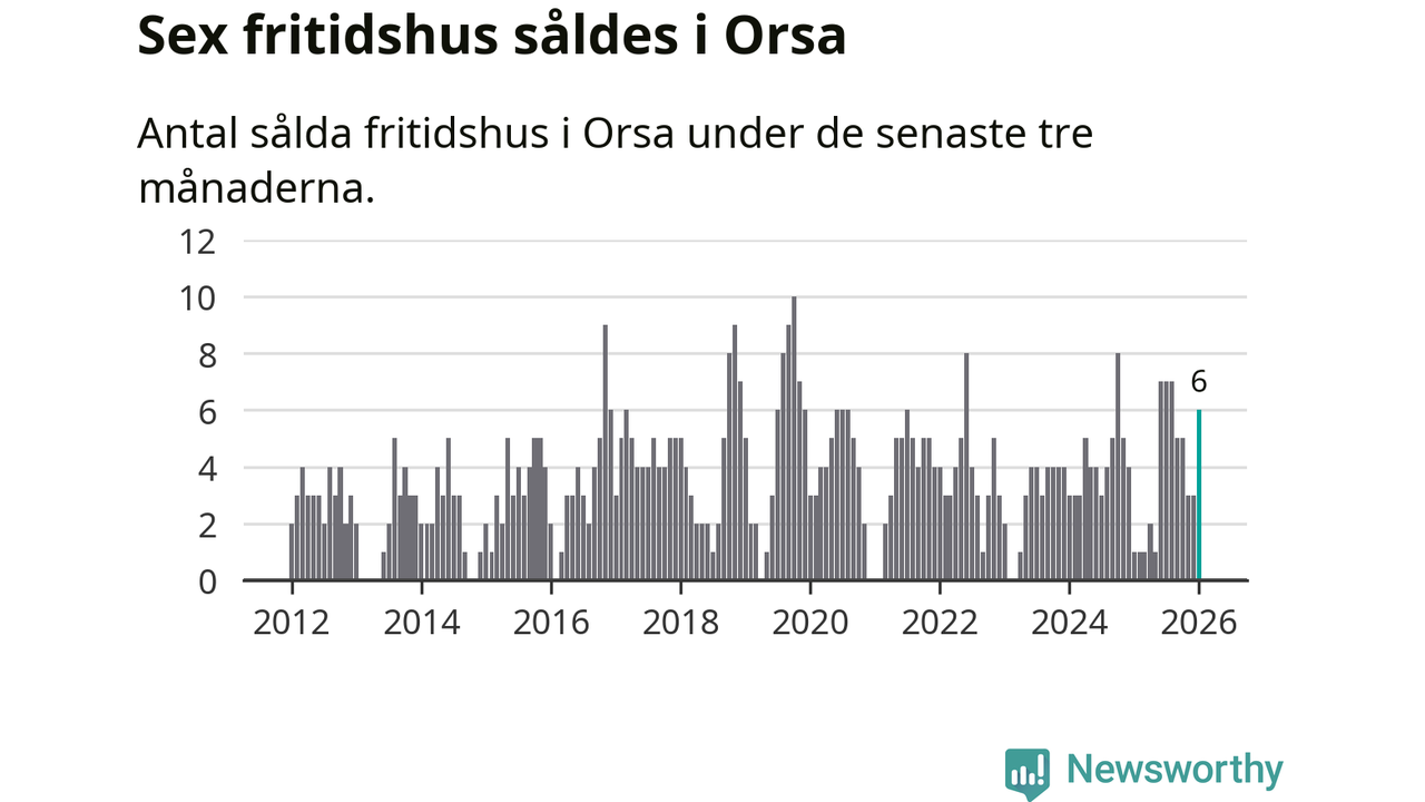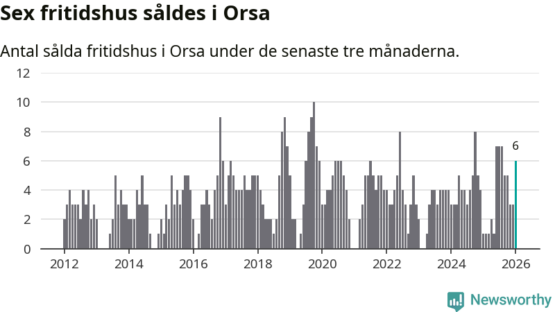 Mellan november och januari gjordes sammanlagt sex affärer med fritidshus i Orsa kommun. Det kan jämföras med ett vid motsvarande tid i fjol.