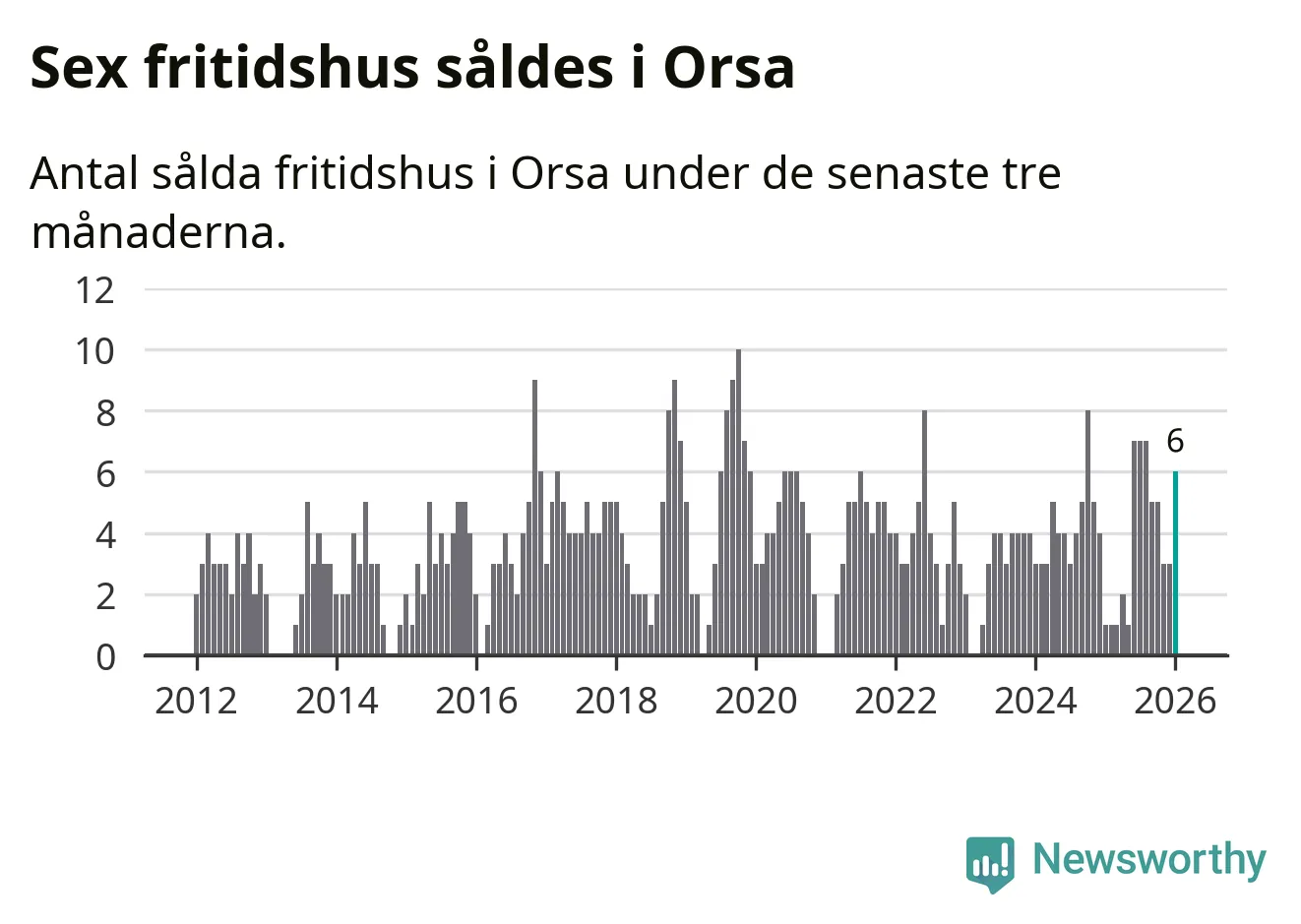 Graf: Antal sålda fritidshus i Orsa kommun