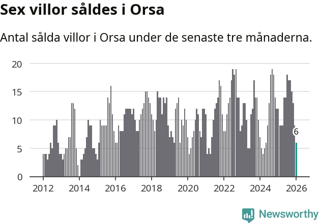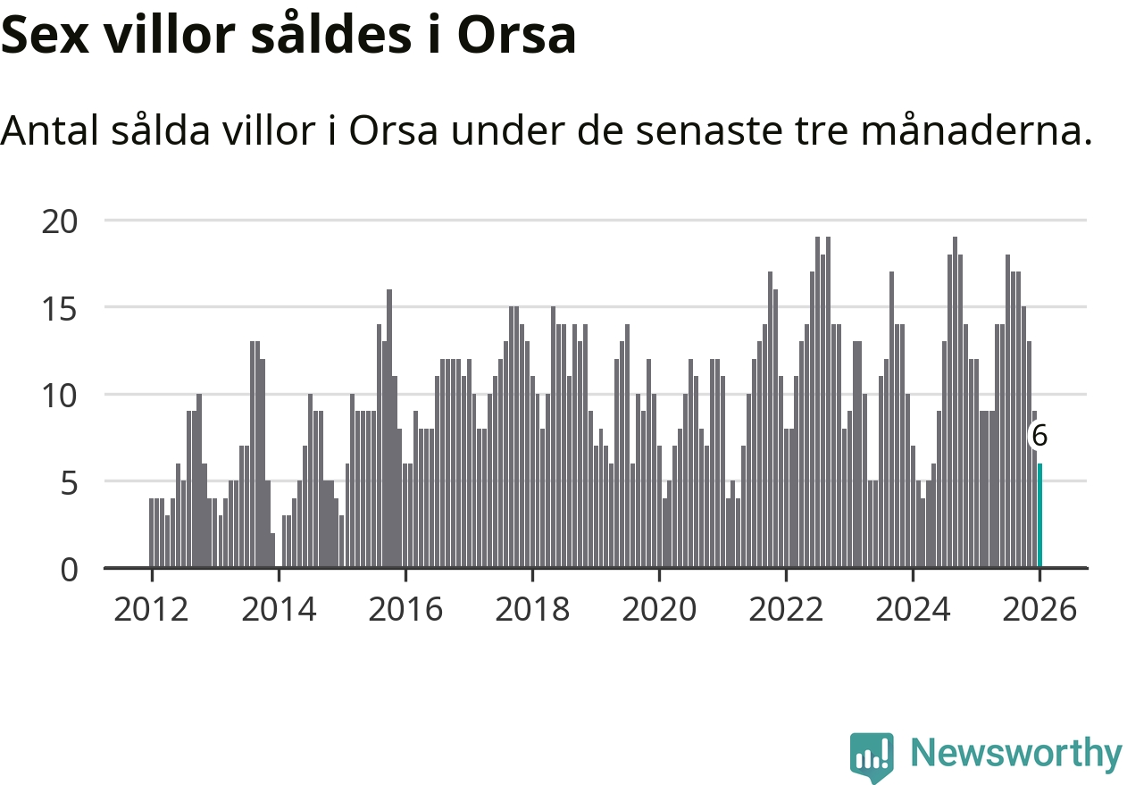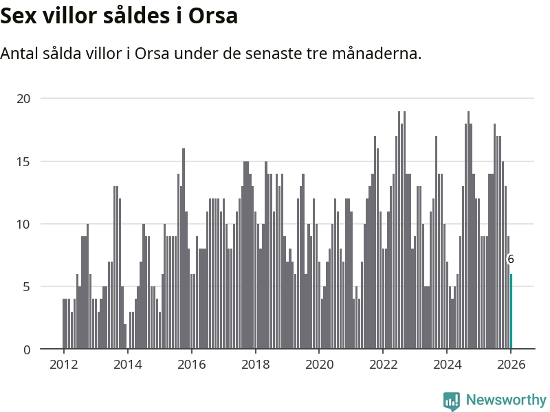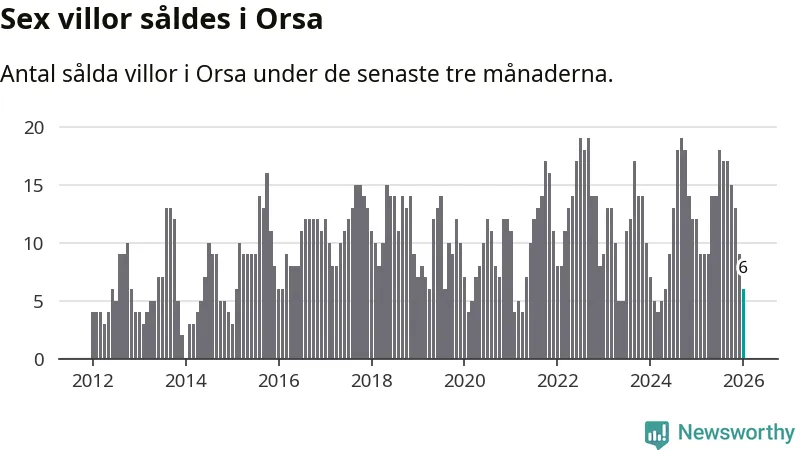 Mellan november och januari gjordes sammanlagt sex affärer med villor i Orsa kommun. Det kan jämföras med tolv vid motsvarande tid i fjol.