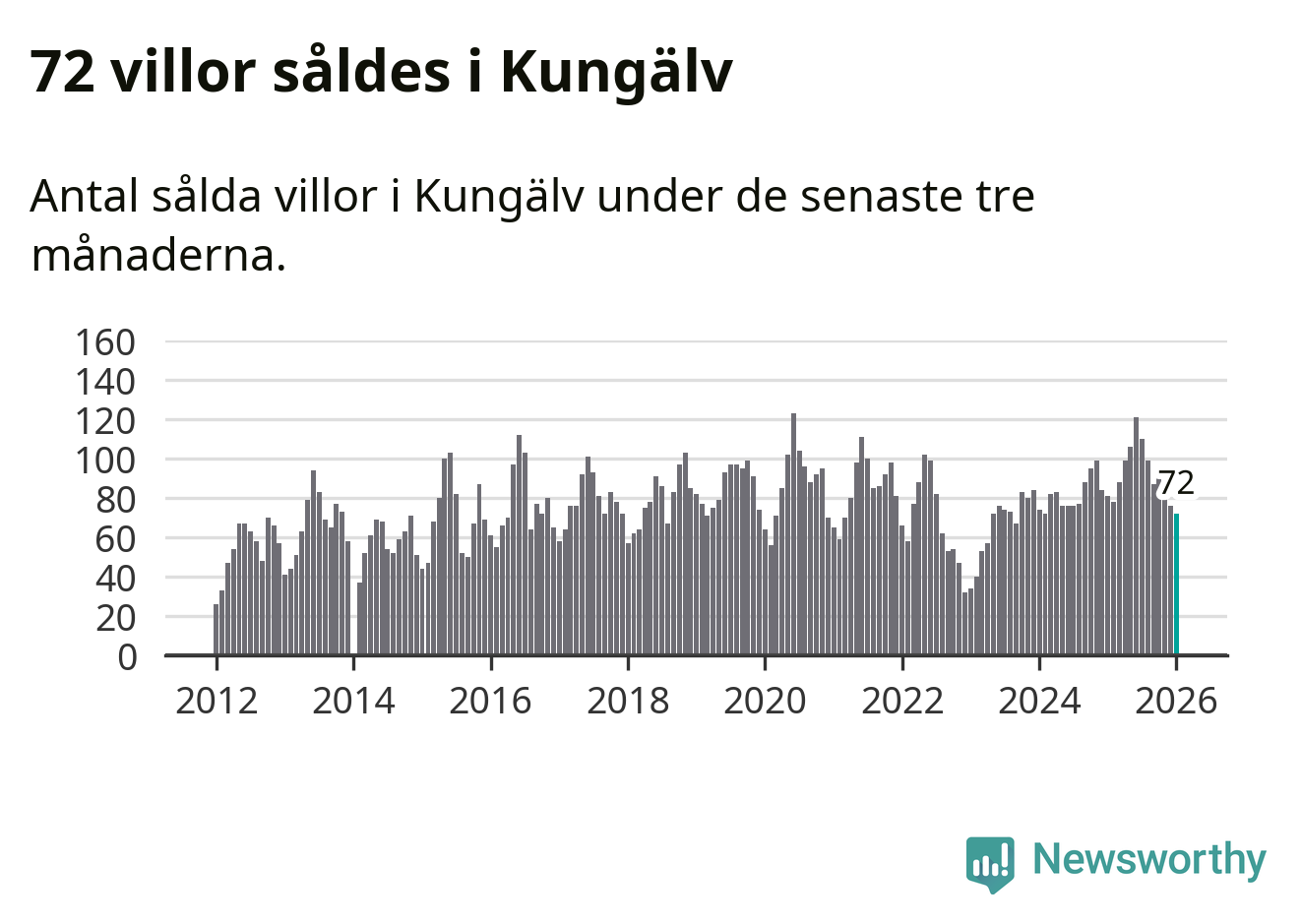 Graf: Antal sålda villor i Kungälvs kommun