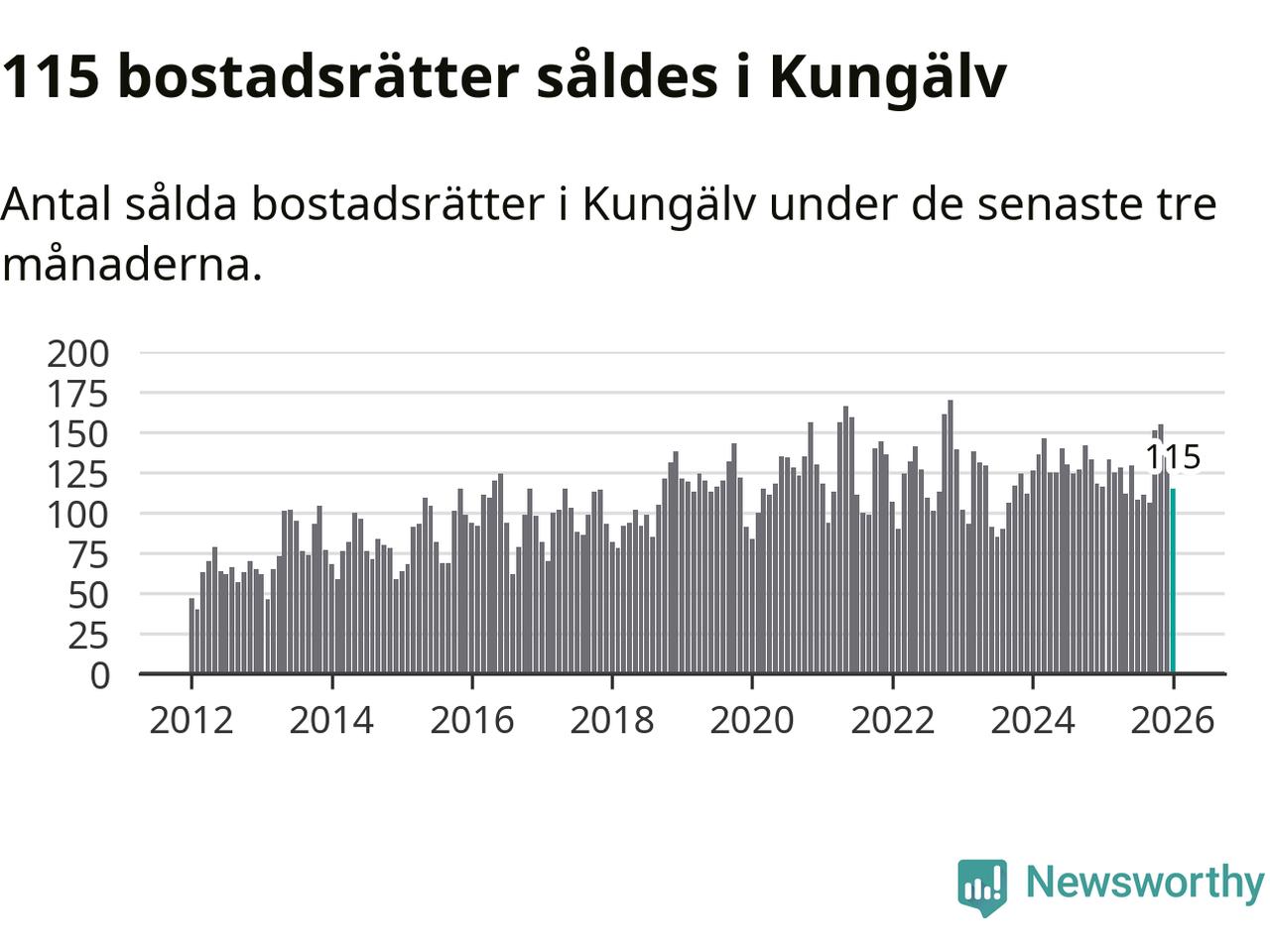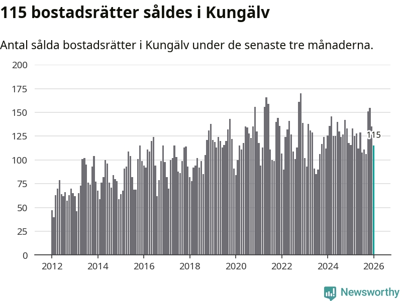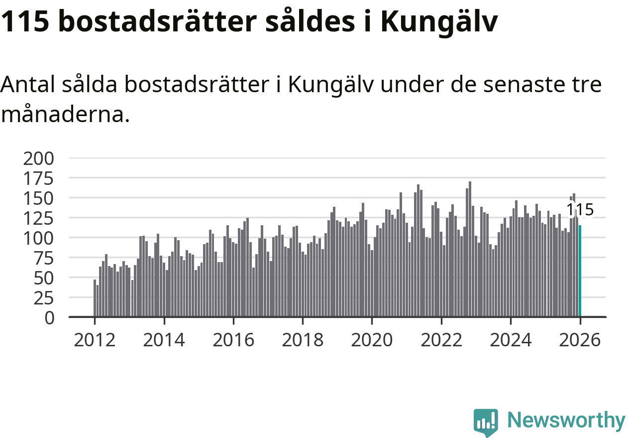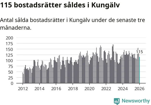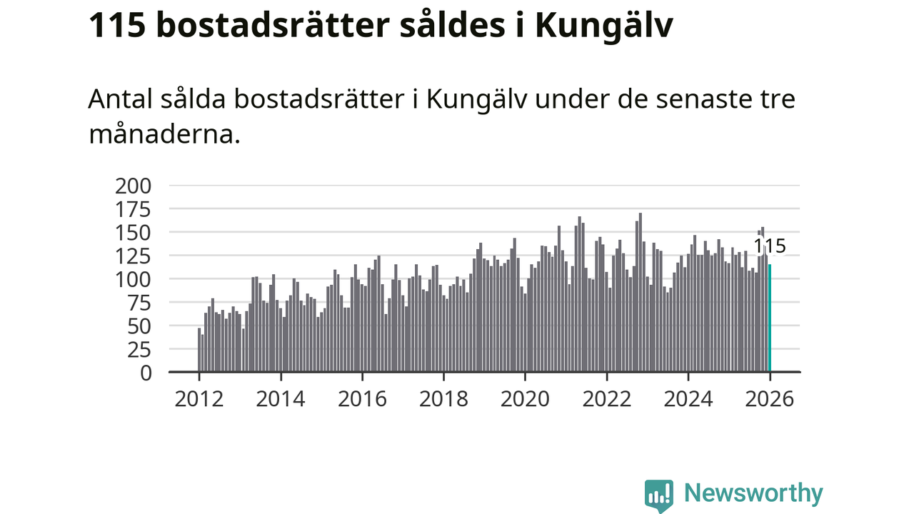 Sammanlagt såldes 115 bostadsrätter i Kungälvs kommun mellan november och januari till ett genomsnittligt pris på 2,7 miljoner kronor. I fjol gjordes 116 affärer vid den här tiden på året.