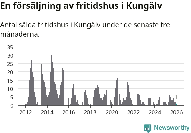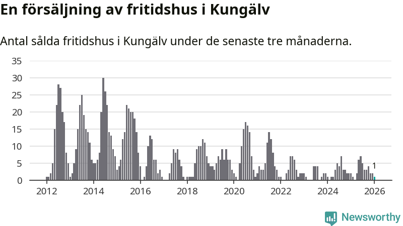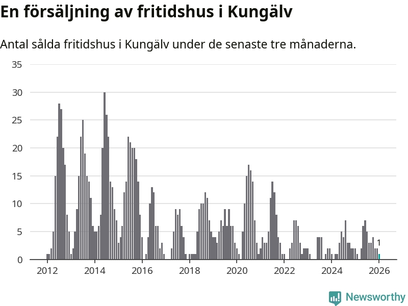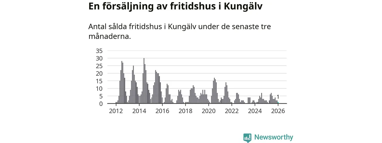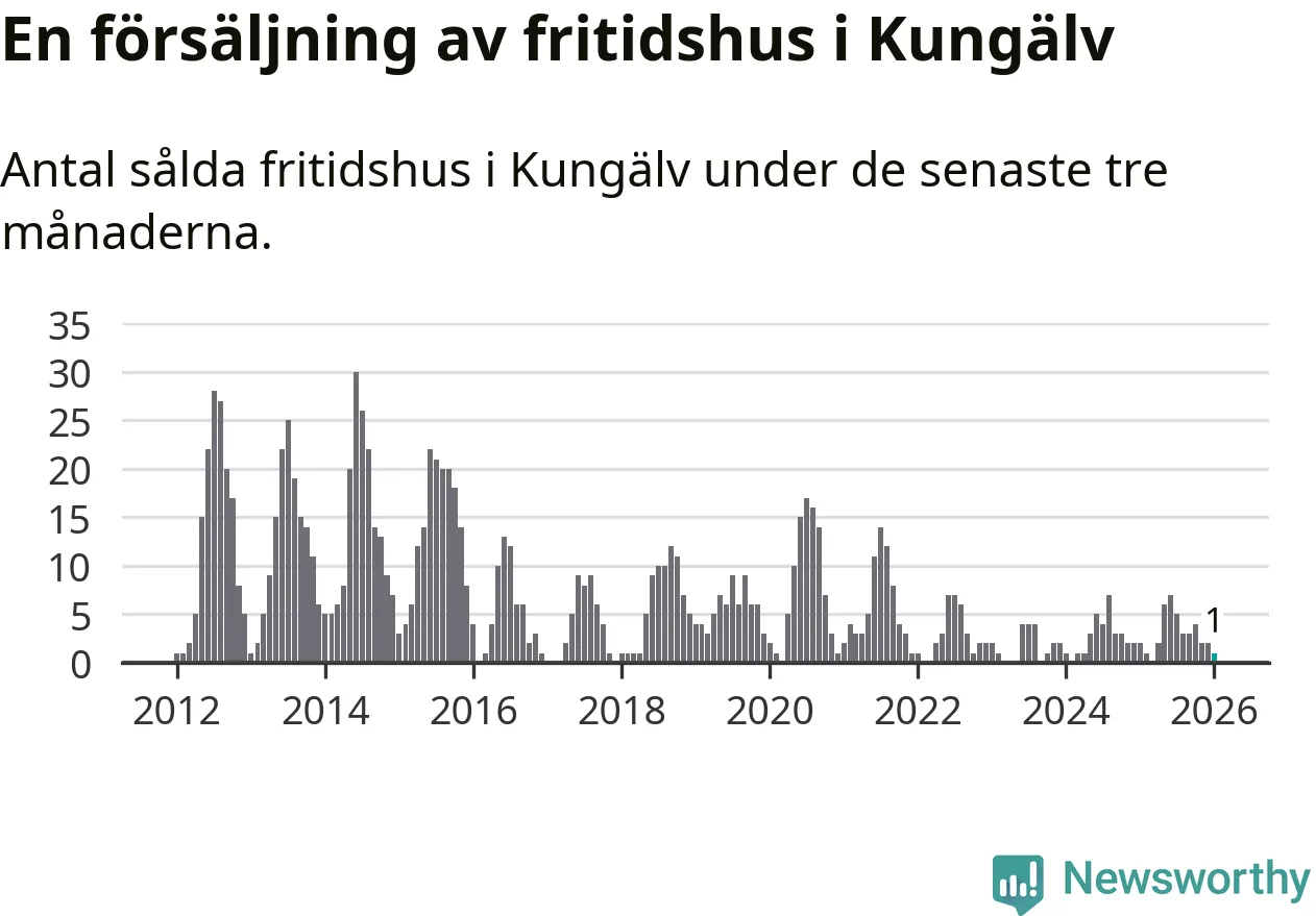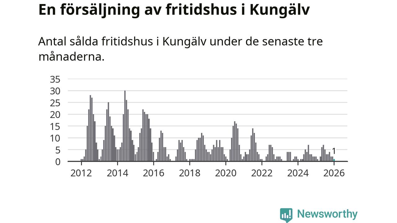 Mellan november och januari gjordes sammanlagt en affär med fritidshus i Kungälvs kommun. Det kan jämföras med två vid motsvarande tid i fjol.