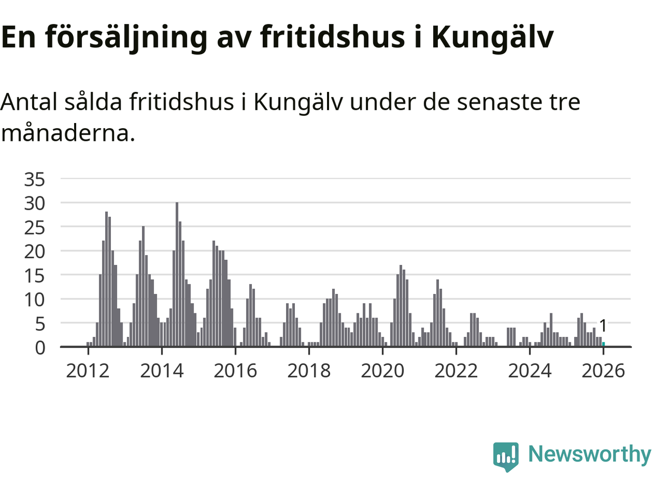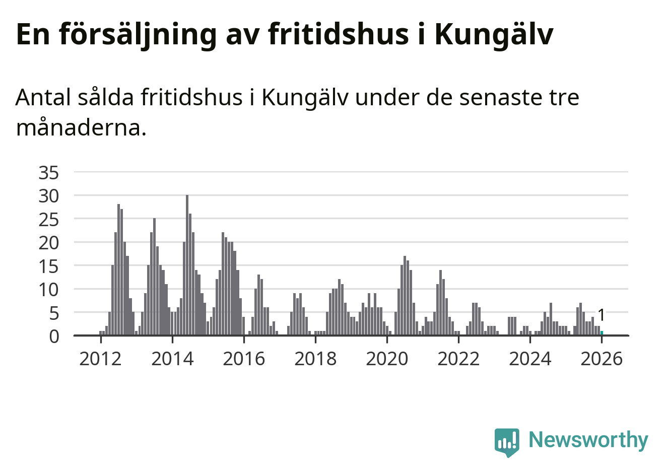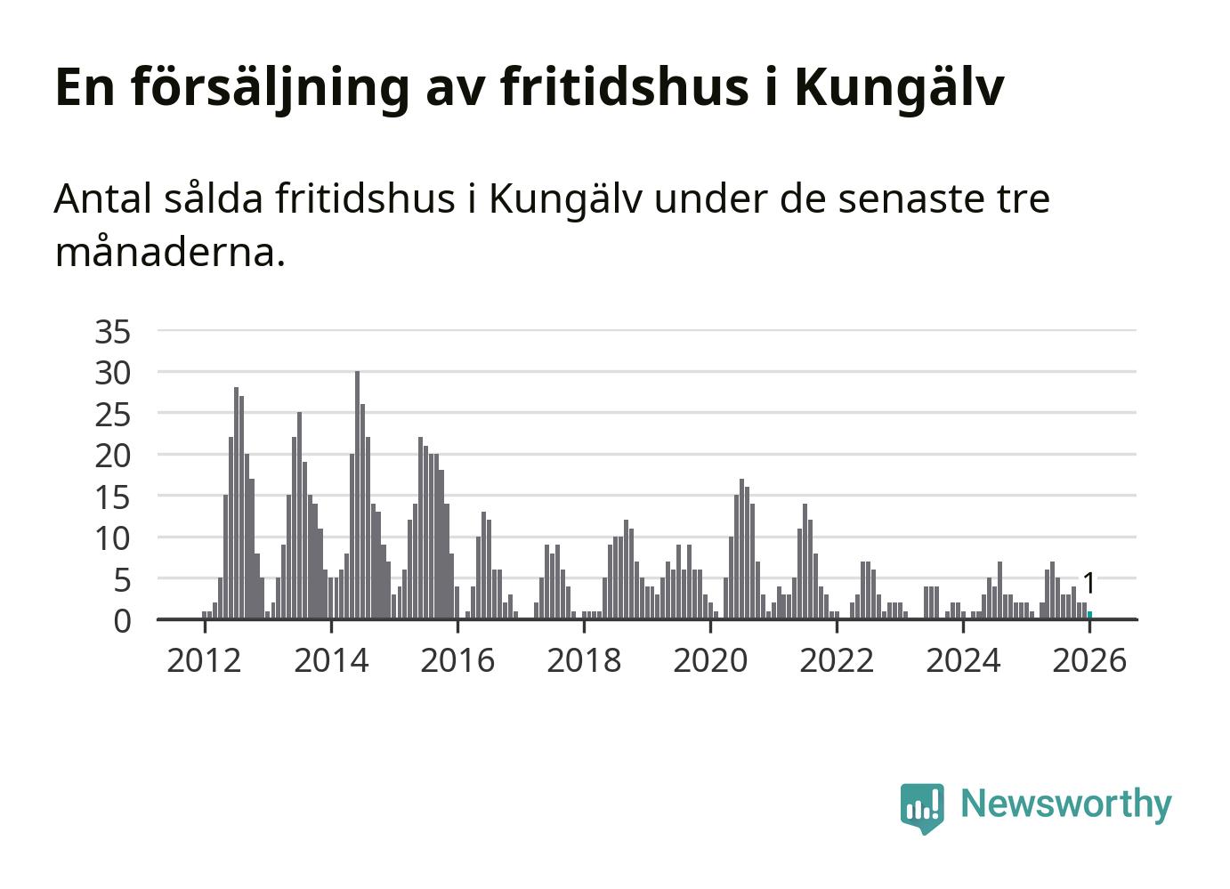Mellan november och januari gjordes sammanlagt en affär med fritidshus i Kungälvs kommun. Det kan jämföras med två vid motsvarande tid i fjol.