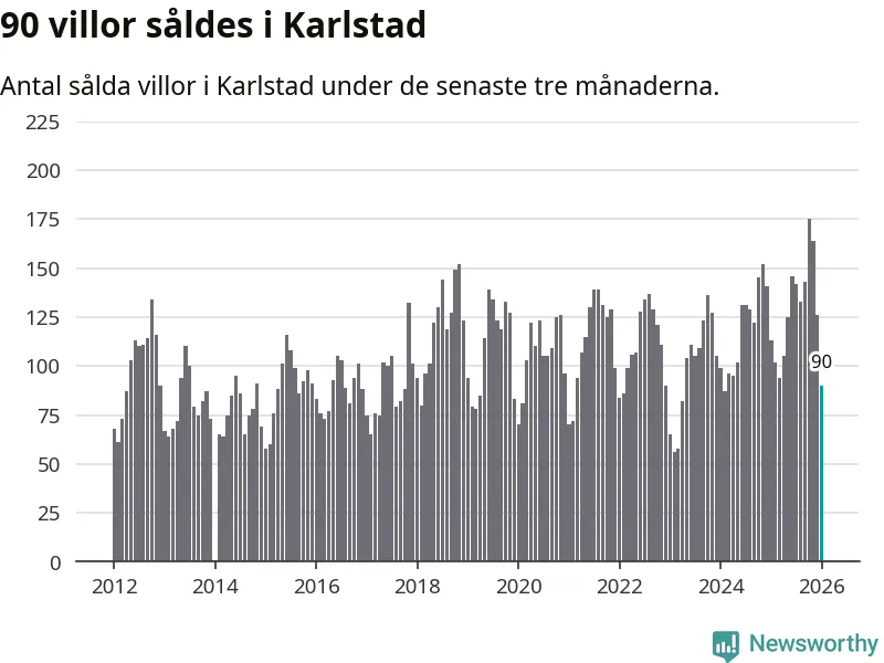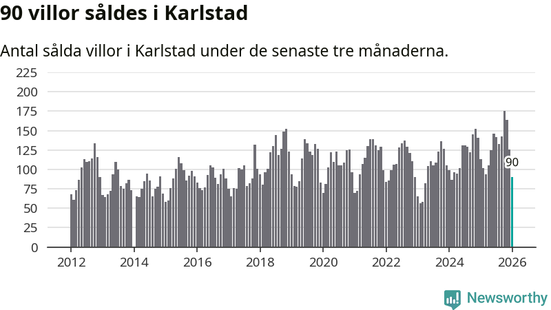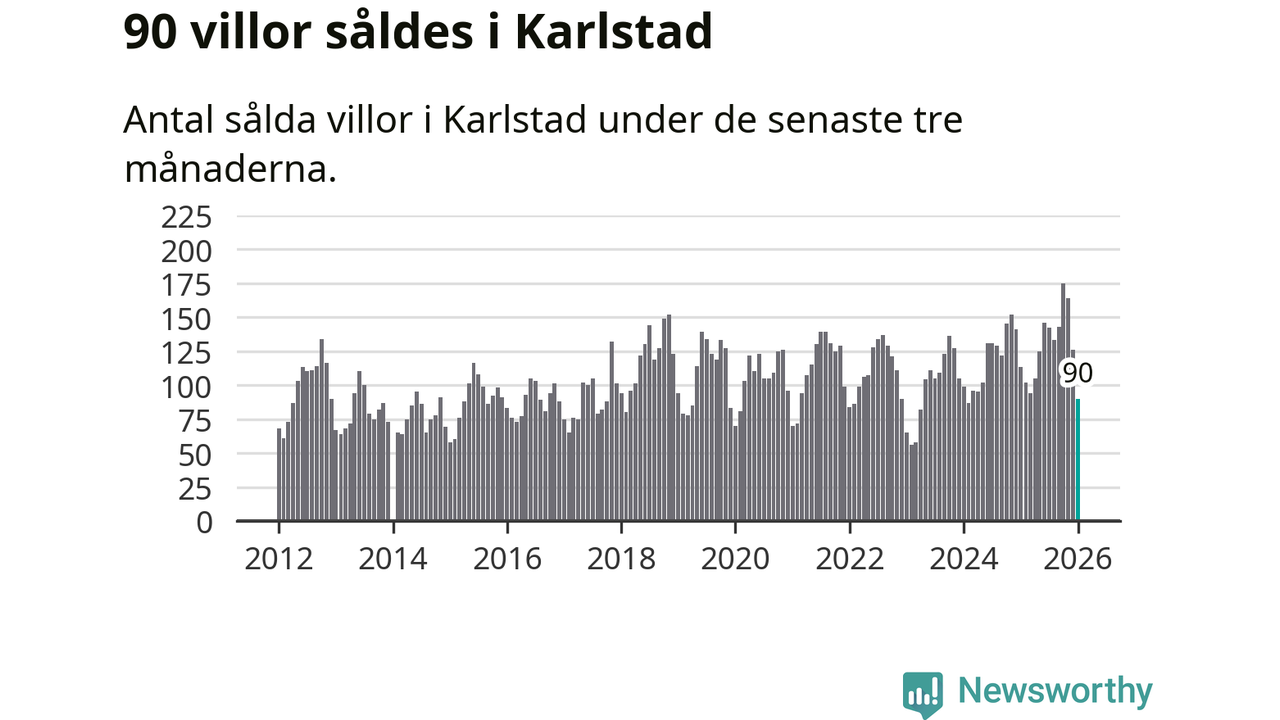 Sammanlagt såldes 90 villor i Karlstads kommun mellan november och januari till ett genomsnittligt pris på 3,7 miljoner kronor. I fjol gjordes 113 affärer vid den här tiden på året.