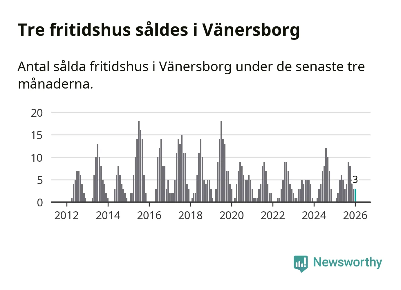 Mellan november och januari gjordes sammanlagt tre affärer med fritidshus i Vänersborgs kommun.
