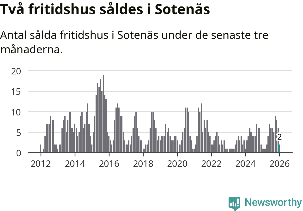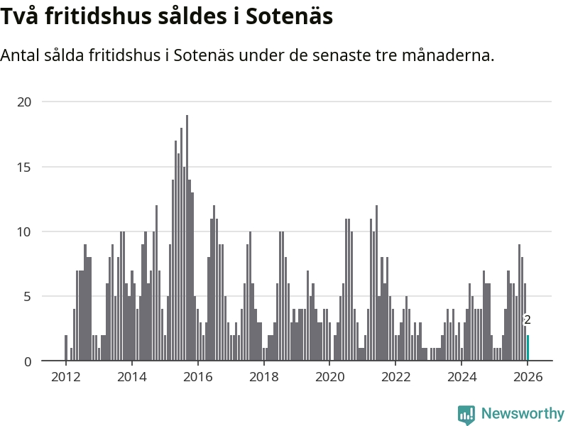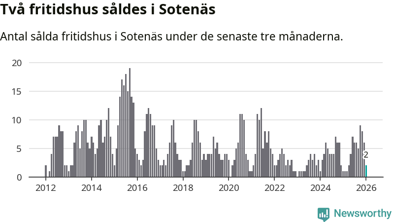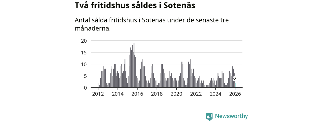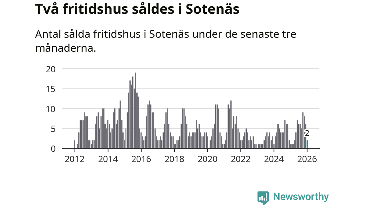 Mellan november och januari gjordes sammanlagt två affärer med fritidshus i Sotenäs kommun. Det kan jämföras med ett vid motsvarande tid i fjol.