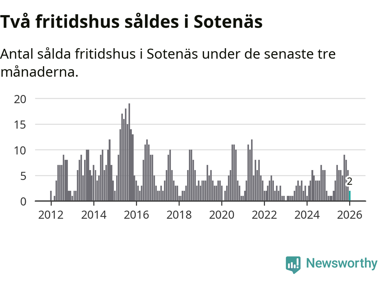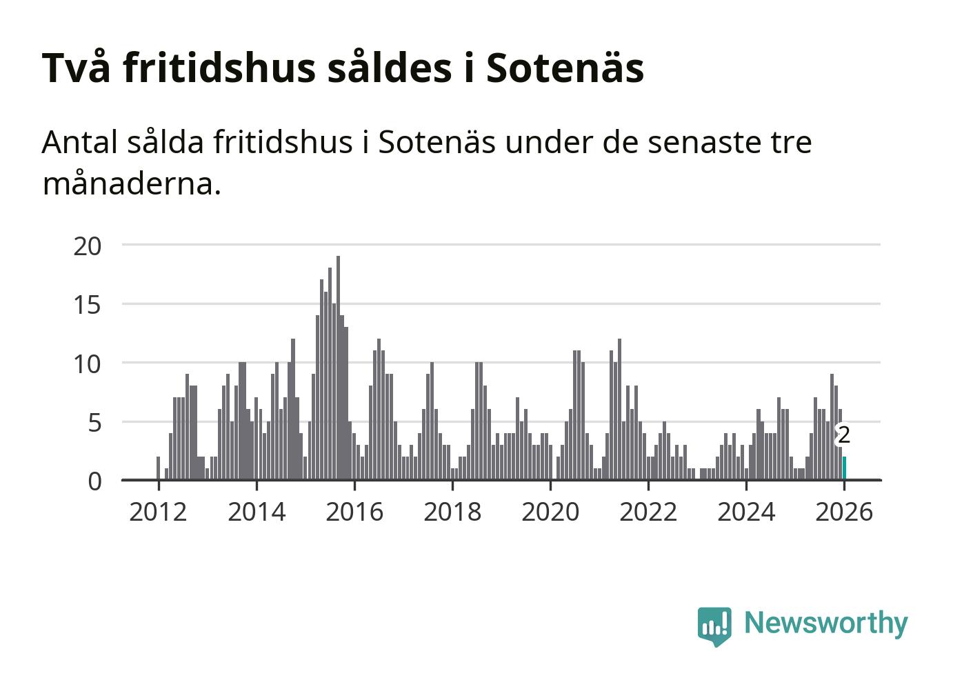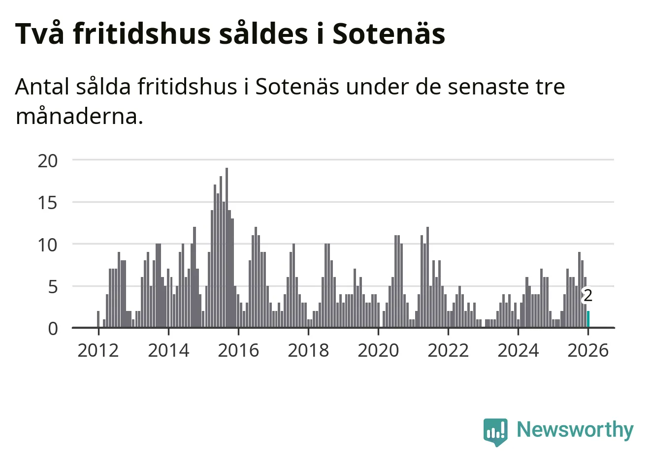 Mellan november och januari gjordes sammanlagt två affärer med fritidshus i Sotenäs kommun. Det kan jämföras med ett vid motsvarande tid i fjol.
