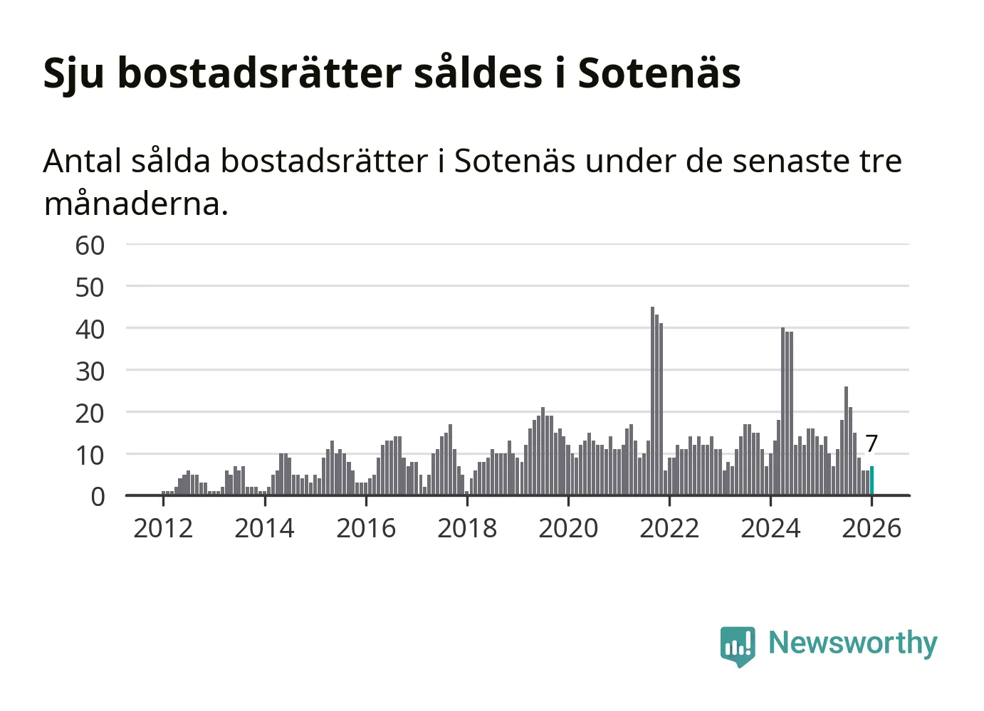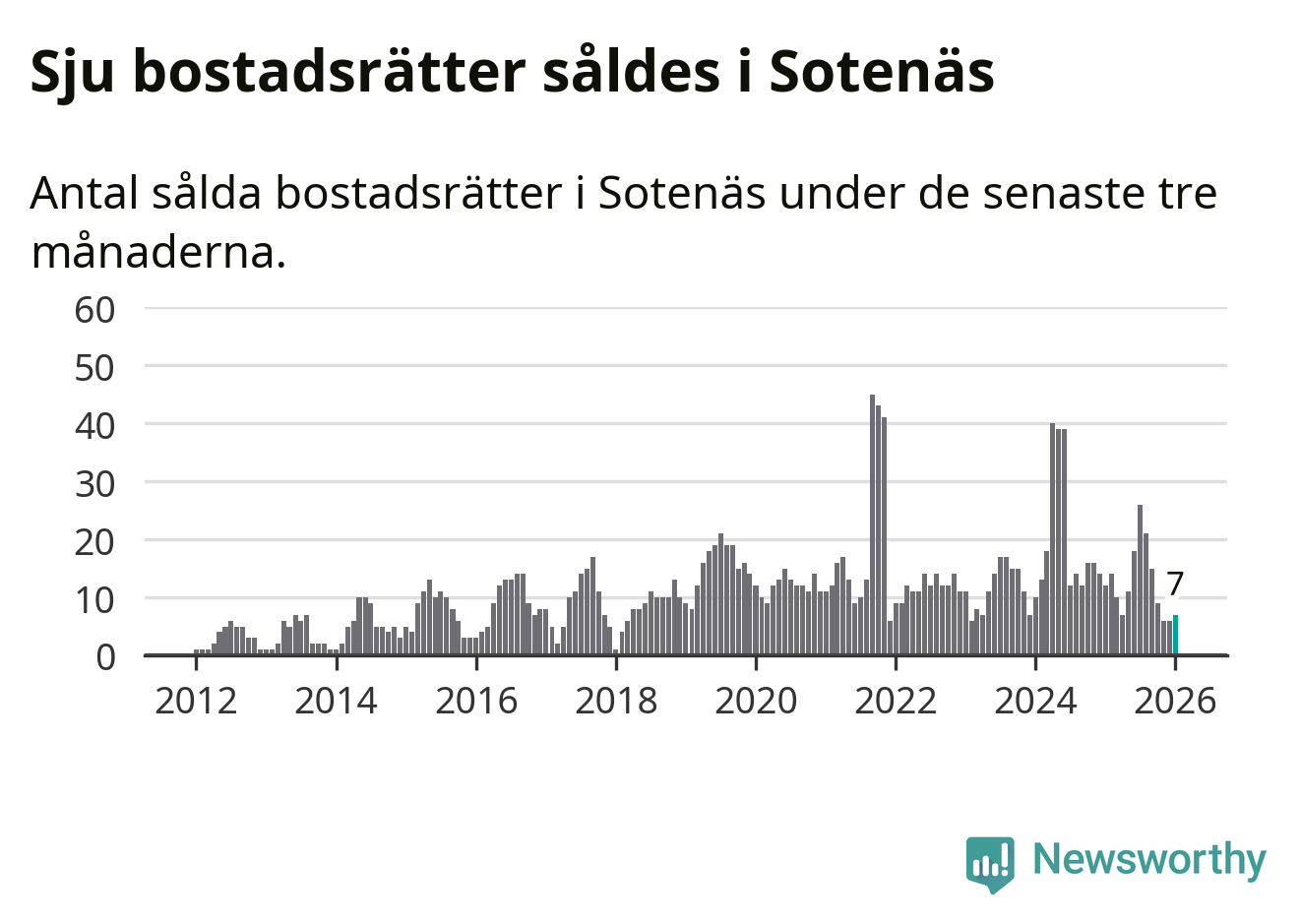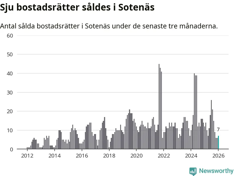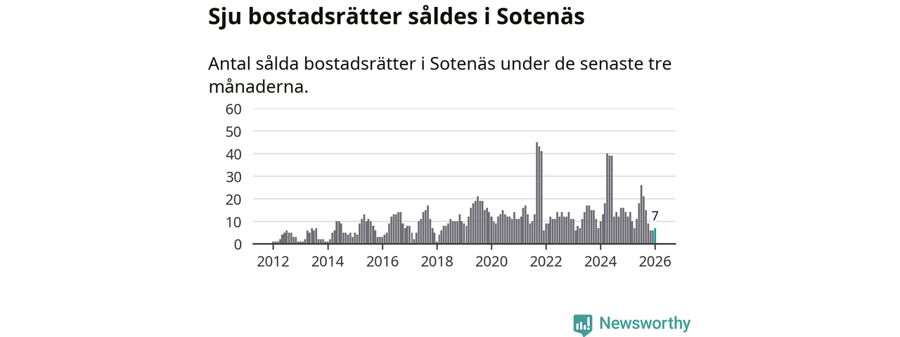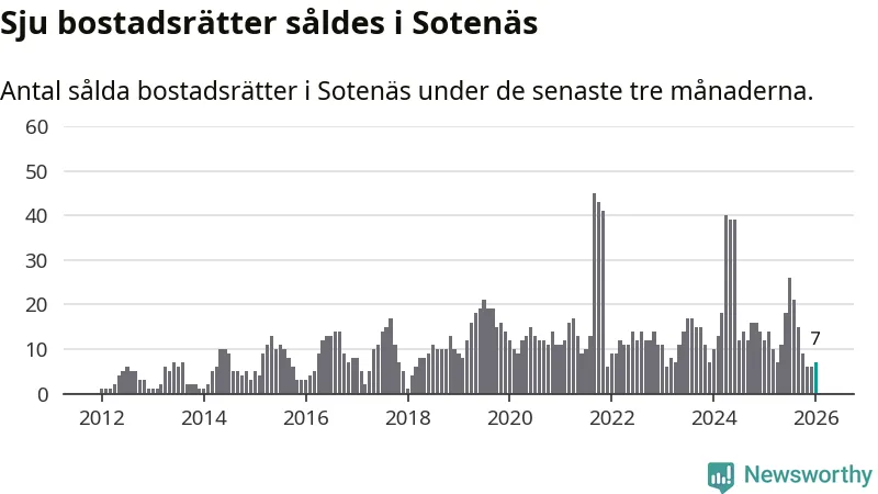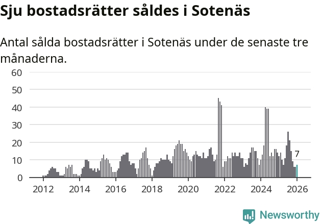 Mellan november och januari gjordes sammanlagt sju affärer med bostadsrätter i Sotenäs kommun. Det kan jämföras med tolv vid motsvarande tid i fjol.