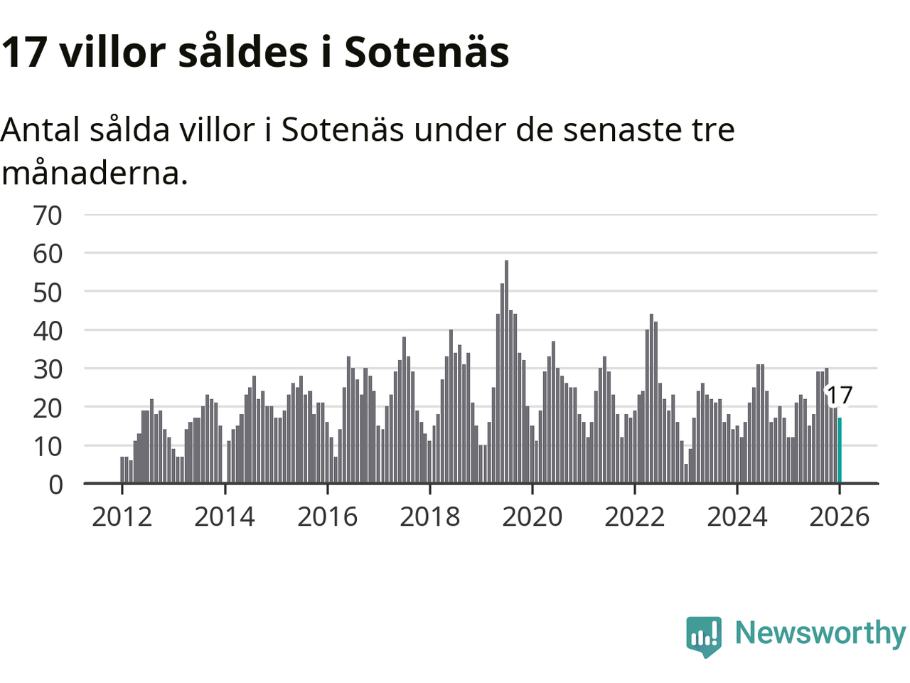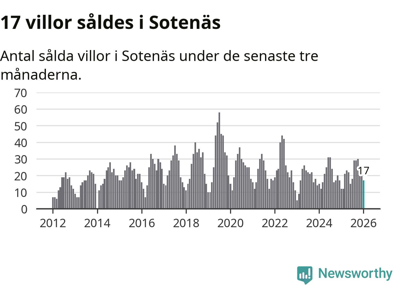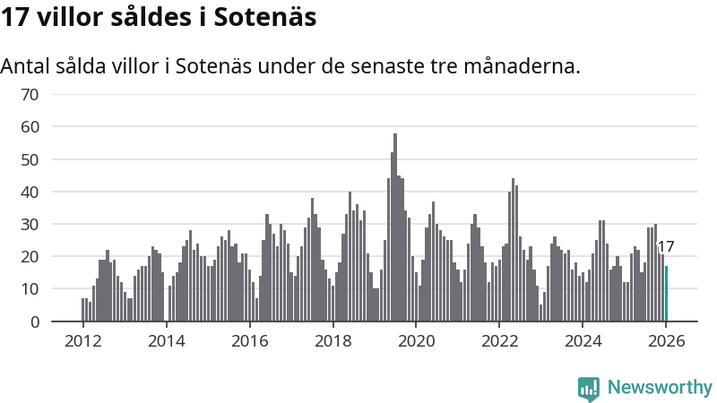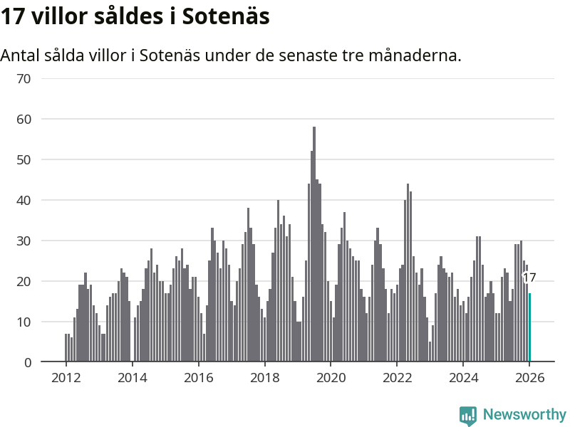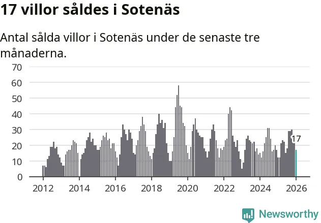 Mellan november och januari gjordes sammanlagt 17 affärer med villor i Sotenäs kommun. Det kan jämföras med tolv vid motsvarande tid i fjol.