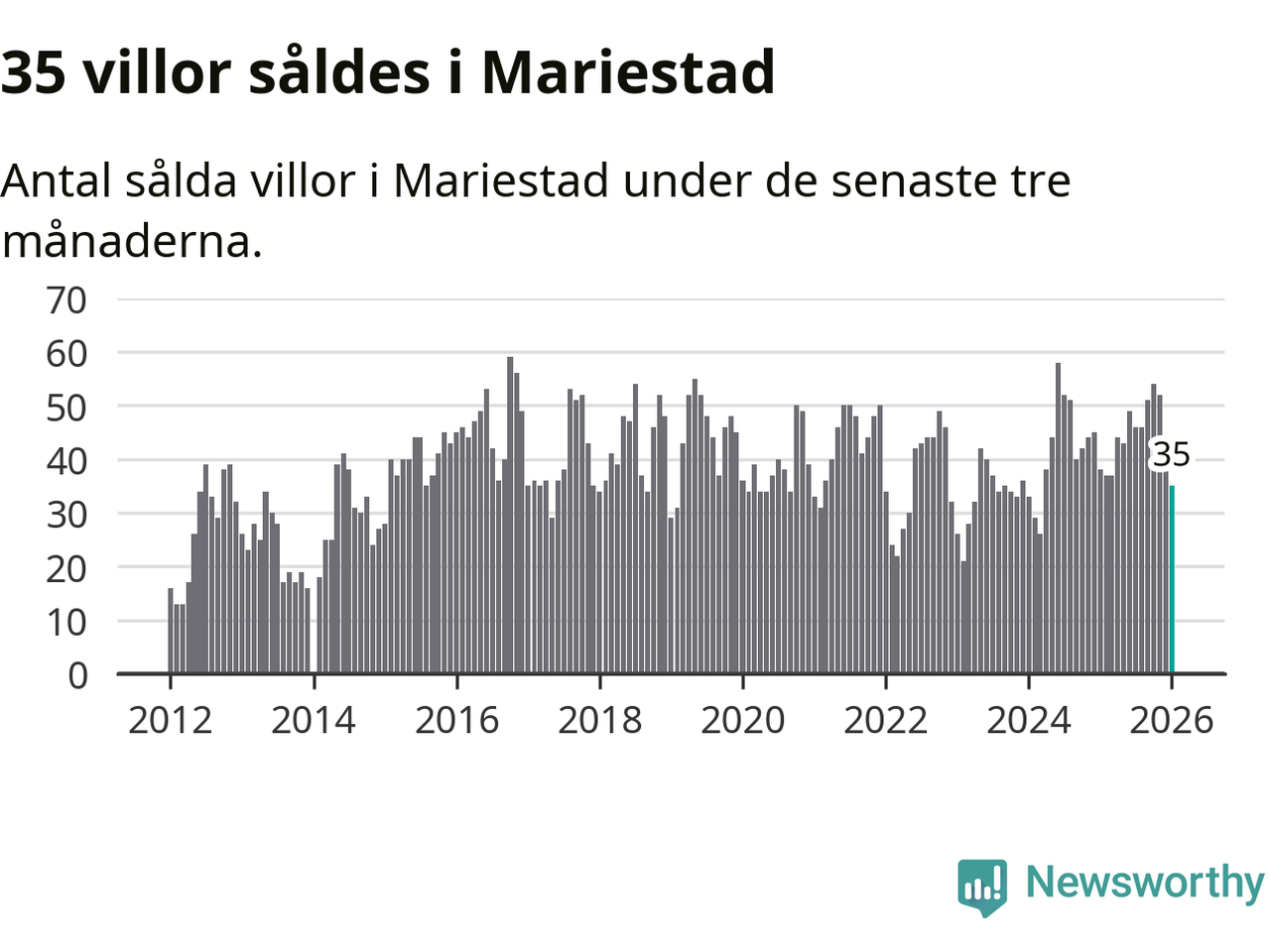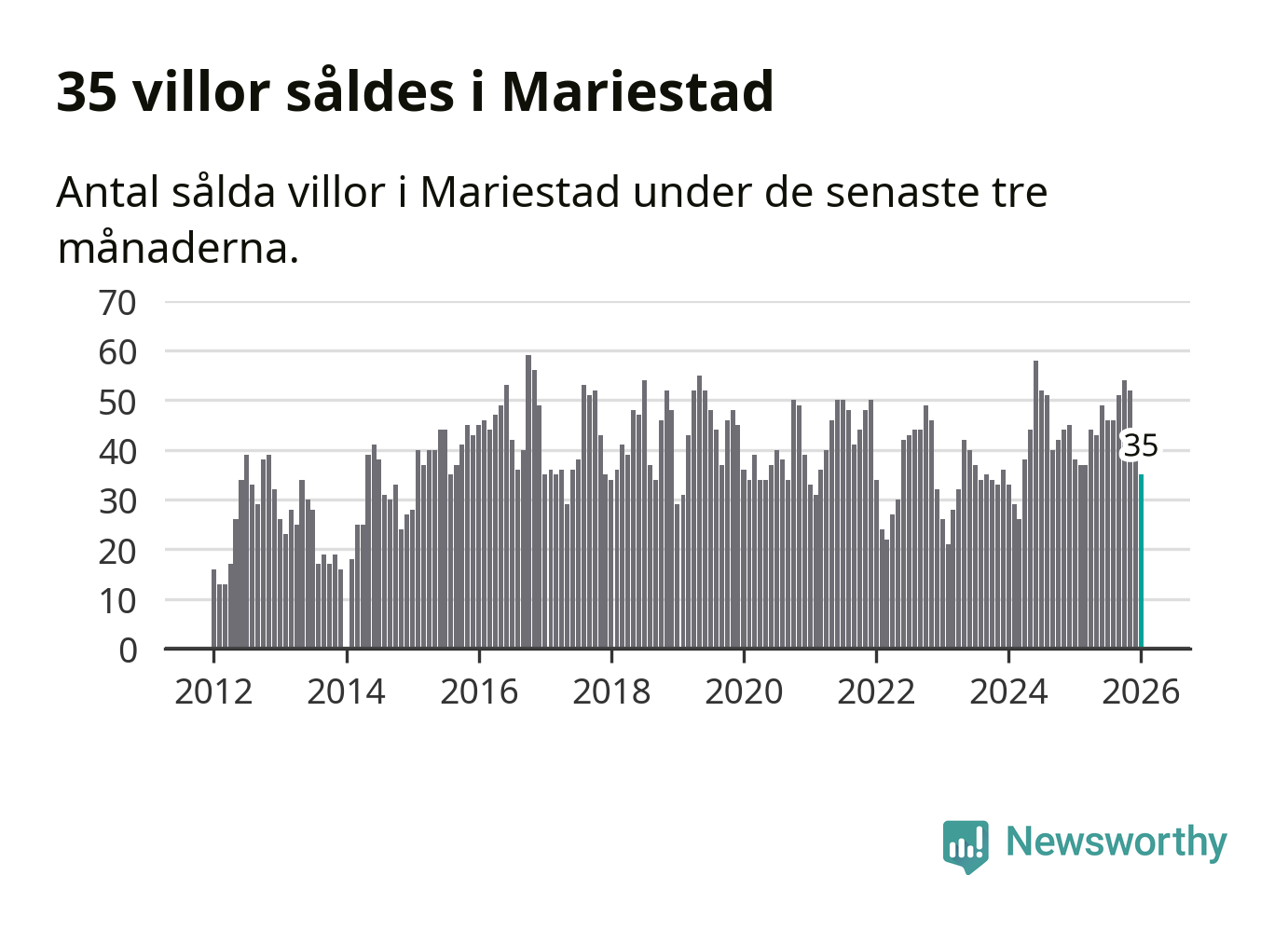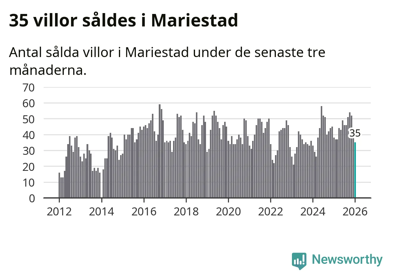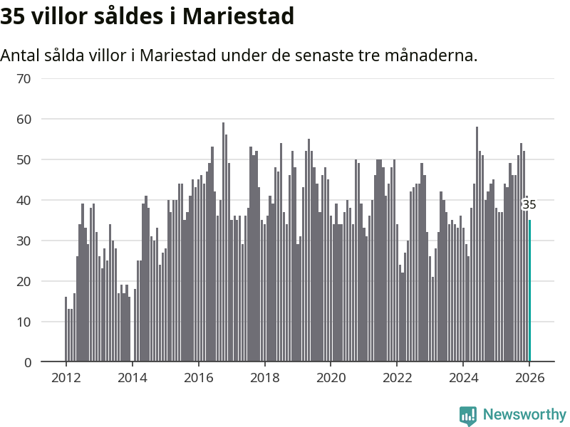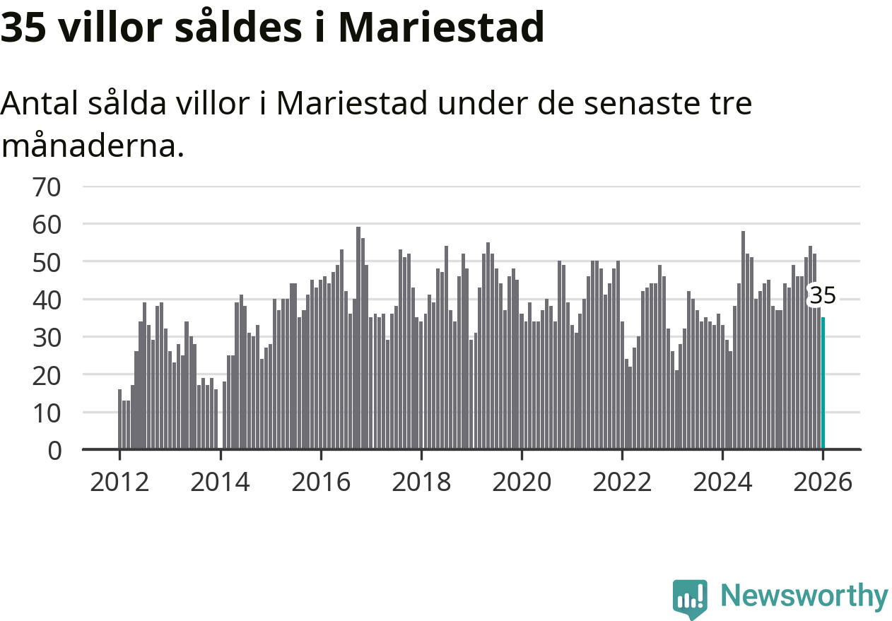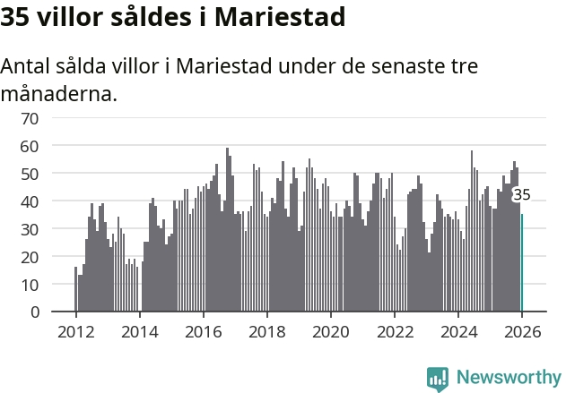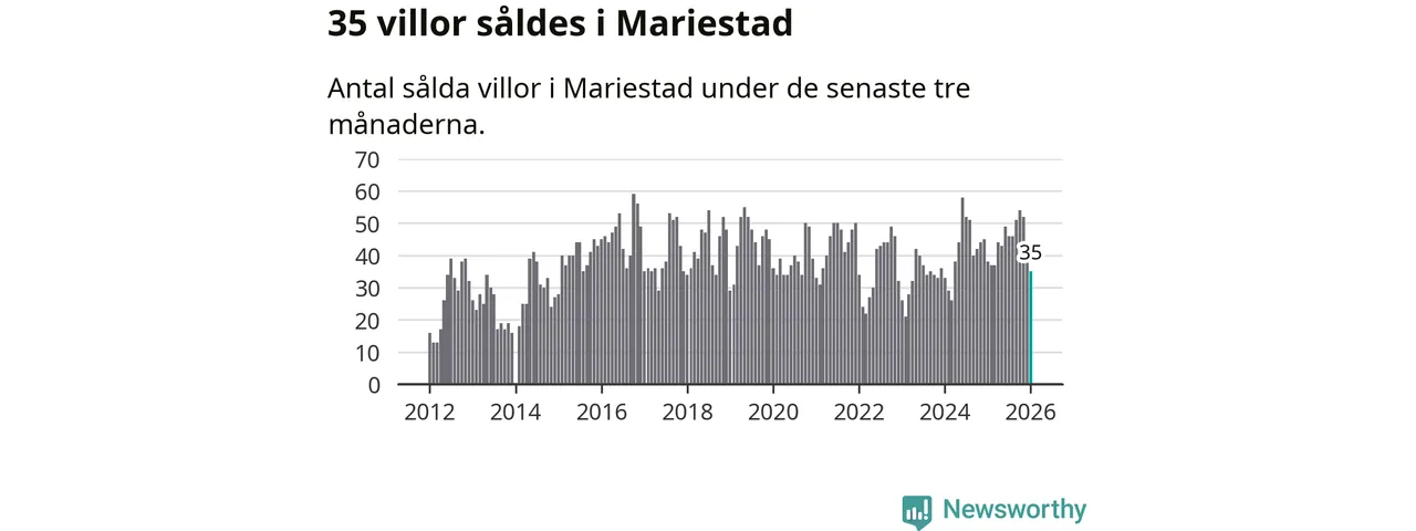 Sammanlagt såldes 35 villor i Mariestads kommun mellan november och januari till ett genomsnittligt pris på 2,4 miljoner kronor. I fjol gjordes 38 affärer vid den här tiden på året.