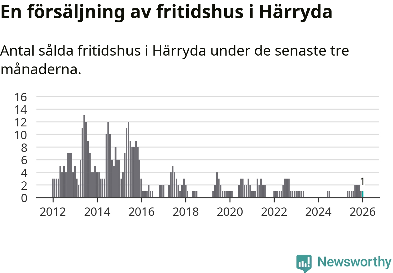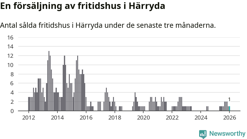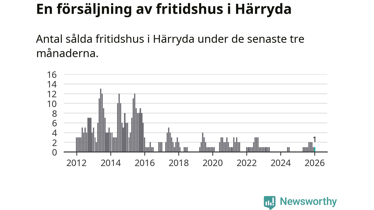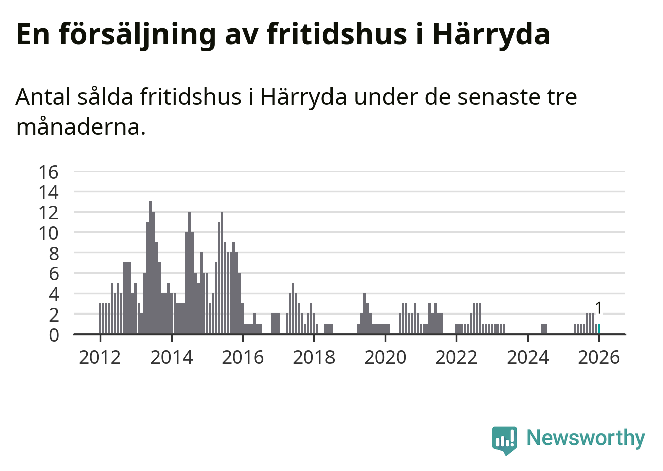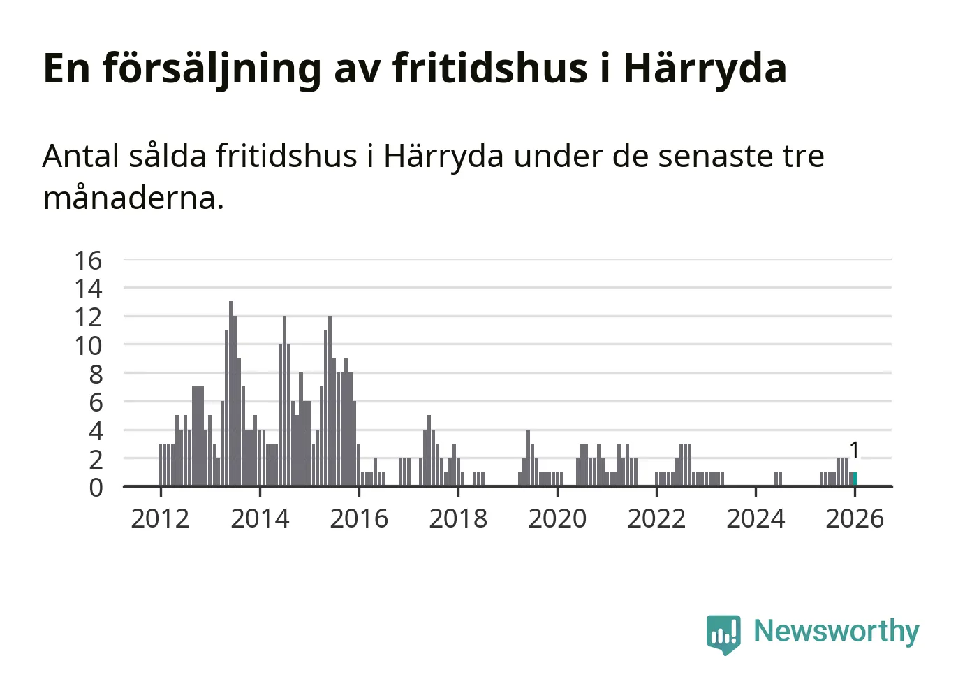 Mellan november och januari gjordes sammanlagt en affär med fritidshus i Härryda kommun.