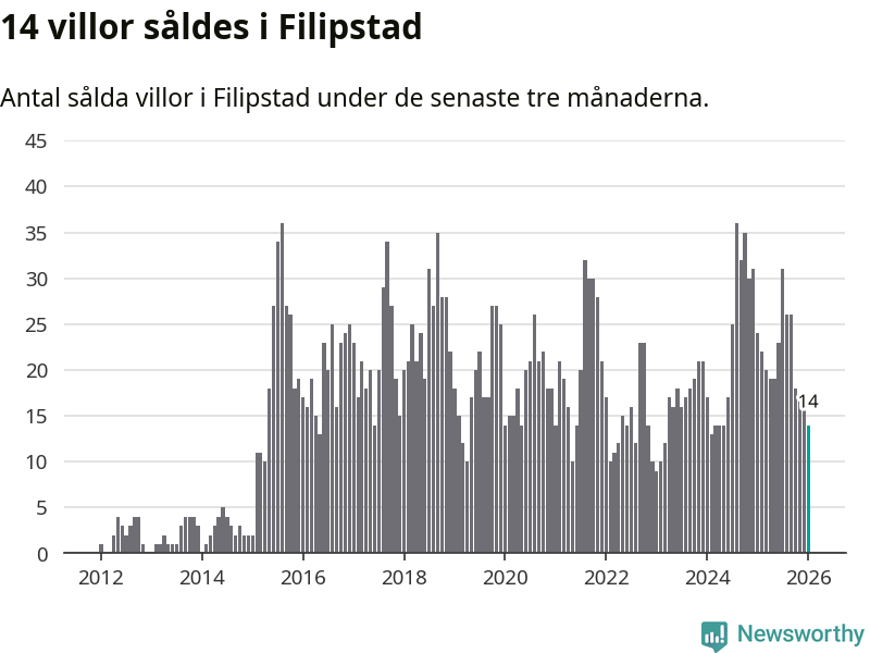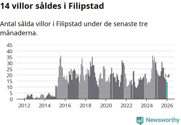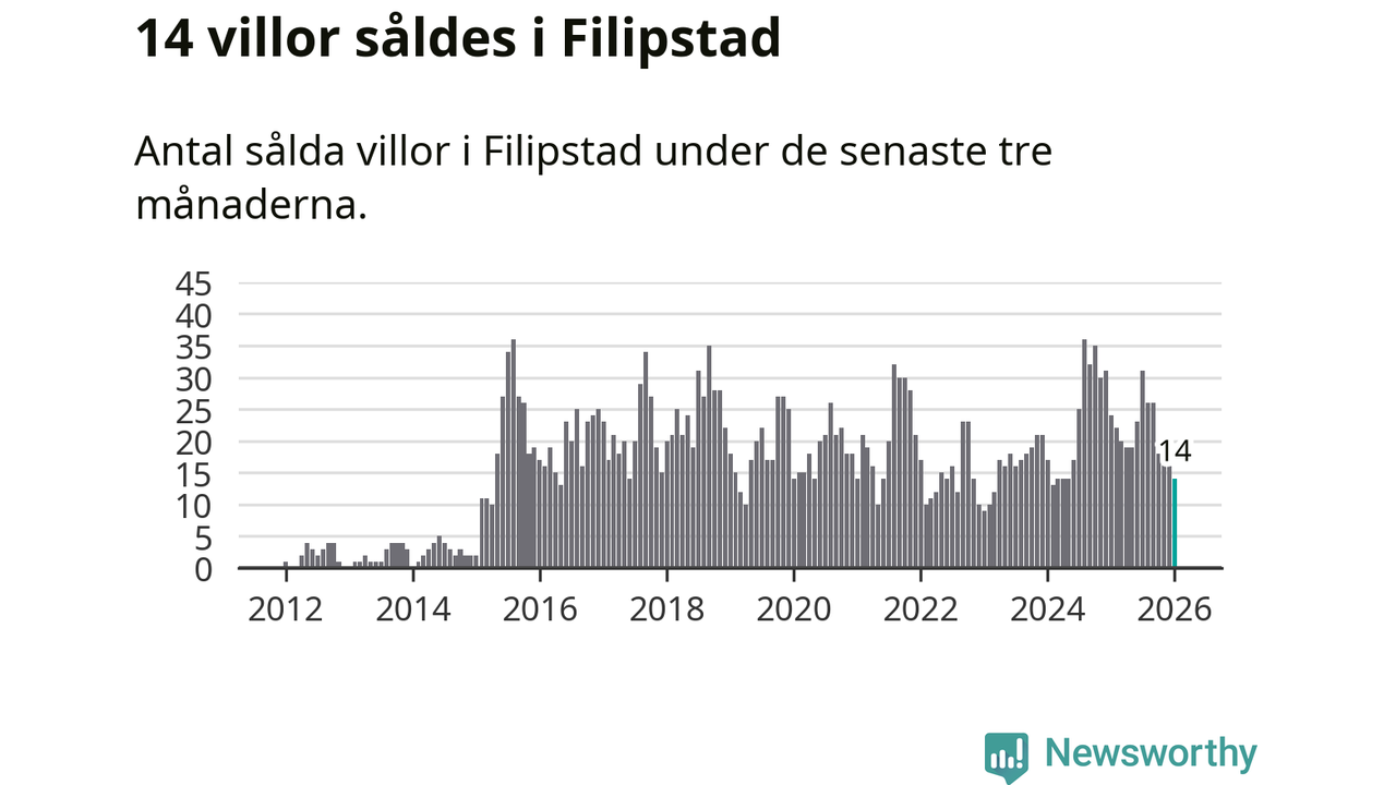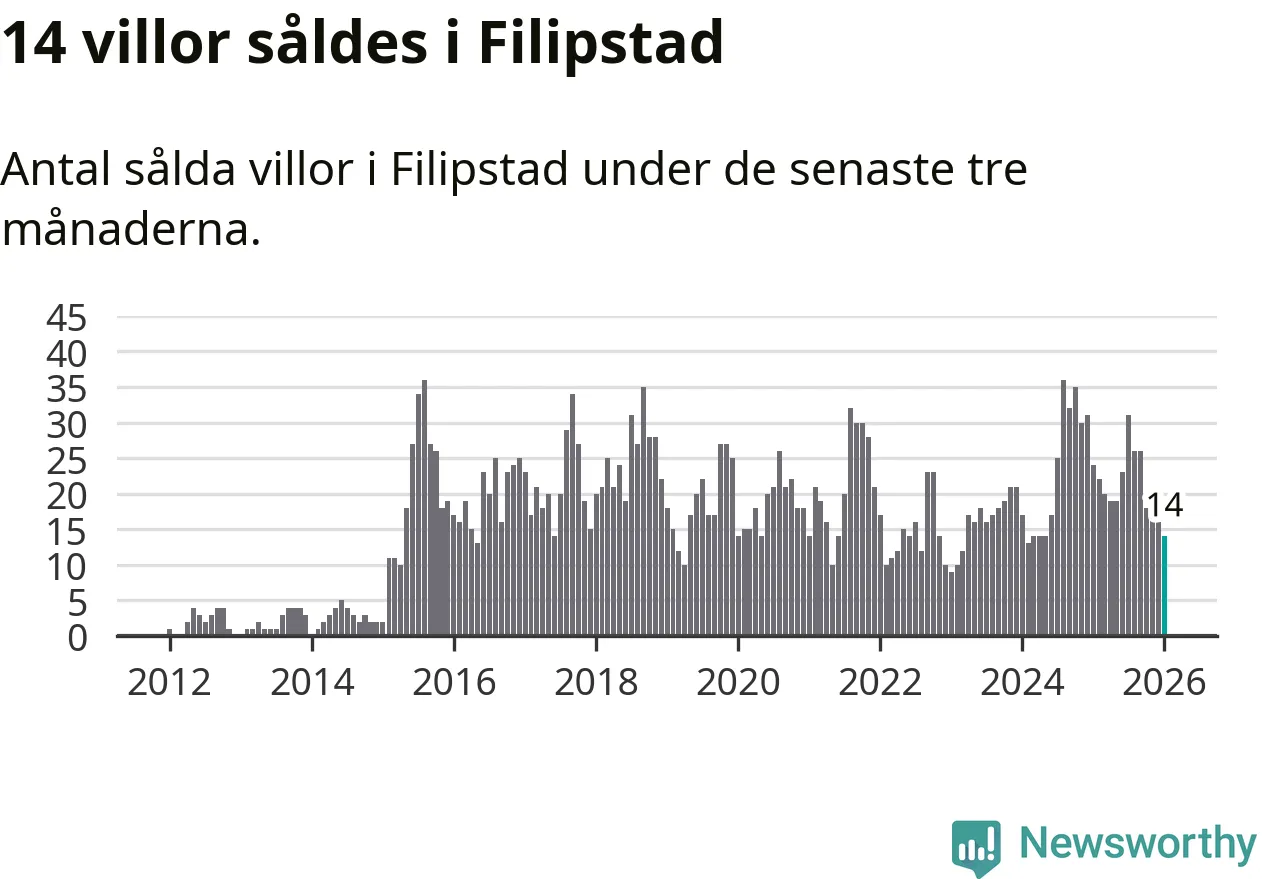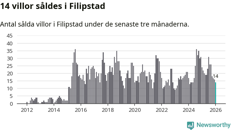 Mellan november och januari gjordes sammanlagt 14 affärer med villor i Filipstads kommun. Det kan jämföras med 24 vid motsvarande tid i fjol.