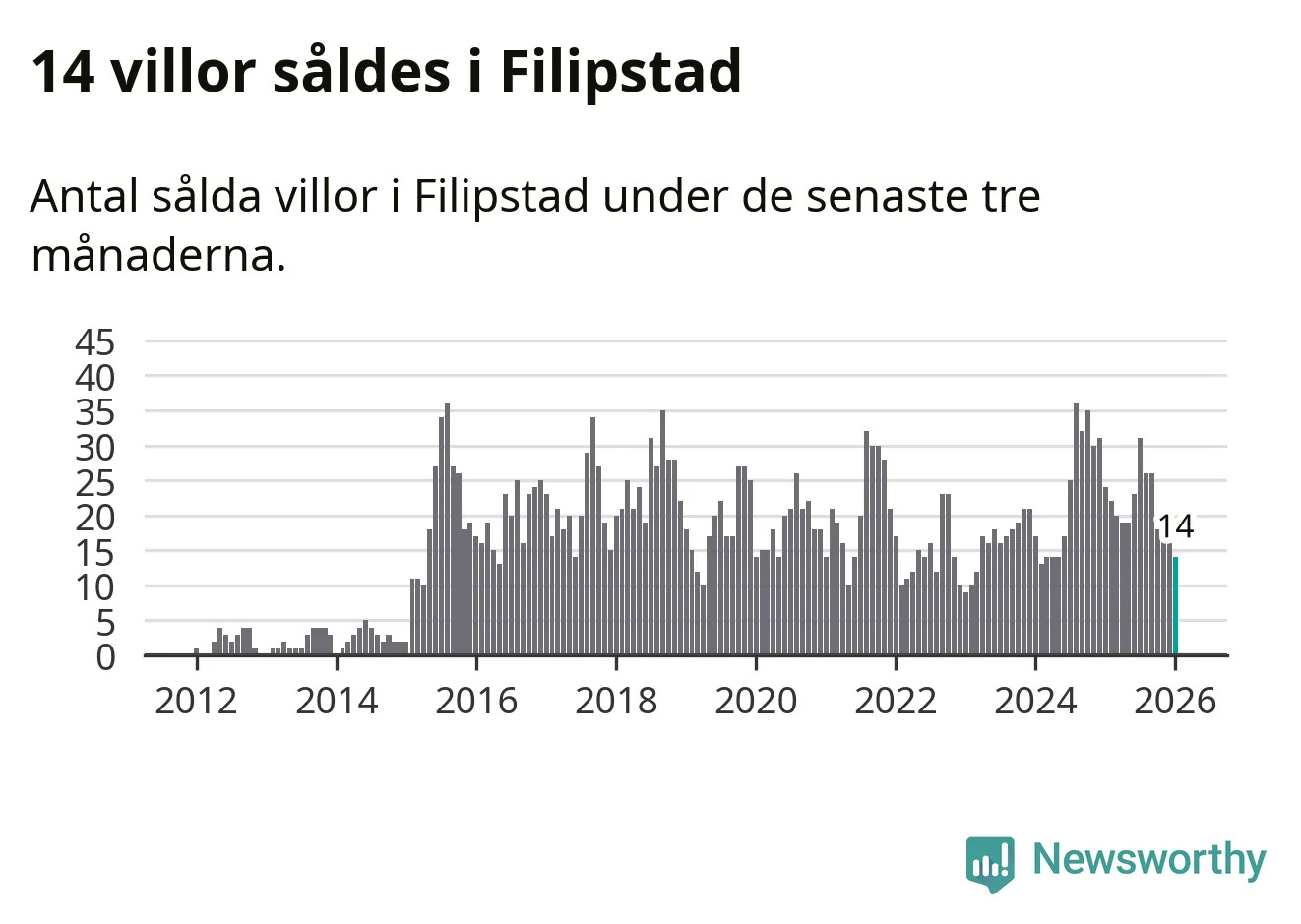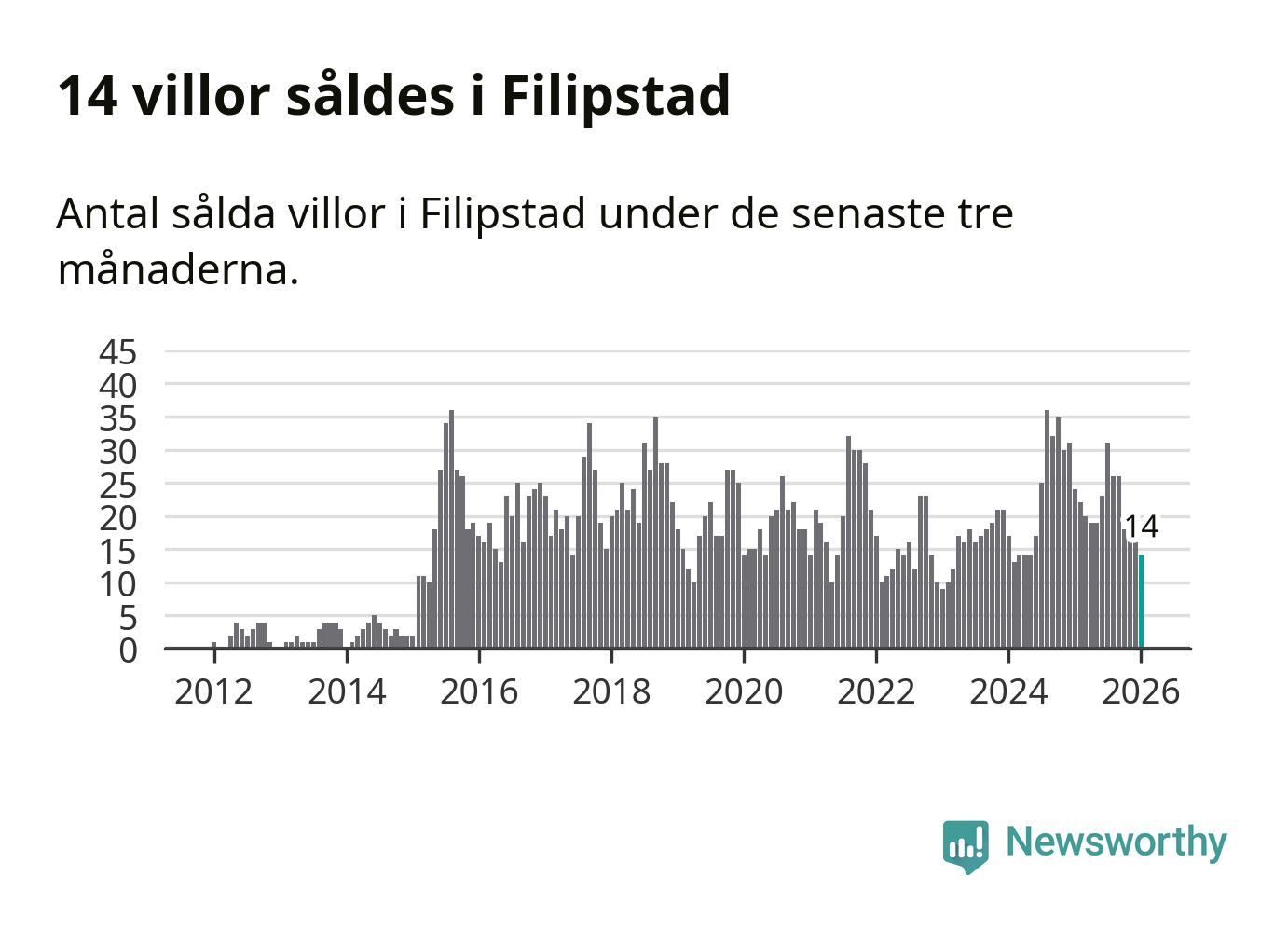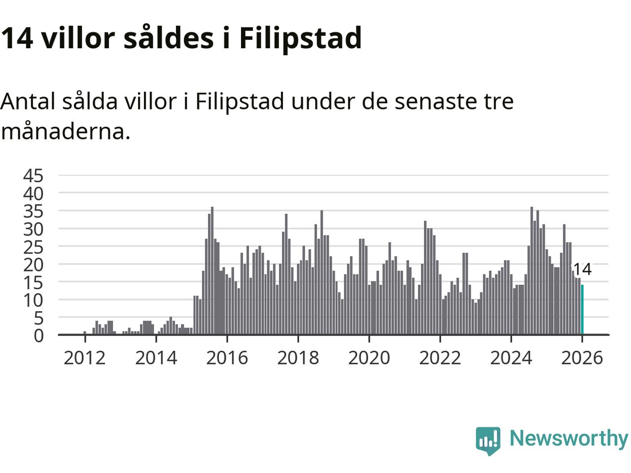 Mellan november och januari gjordes sammanlagt 14 affärer med villor i Filipstads kommun. Det kan jämföras med 24 vid motsvarande tid i fjol.