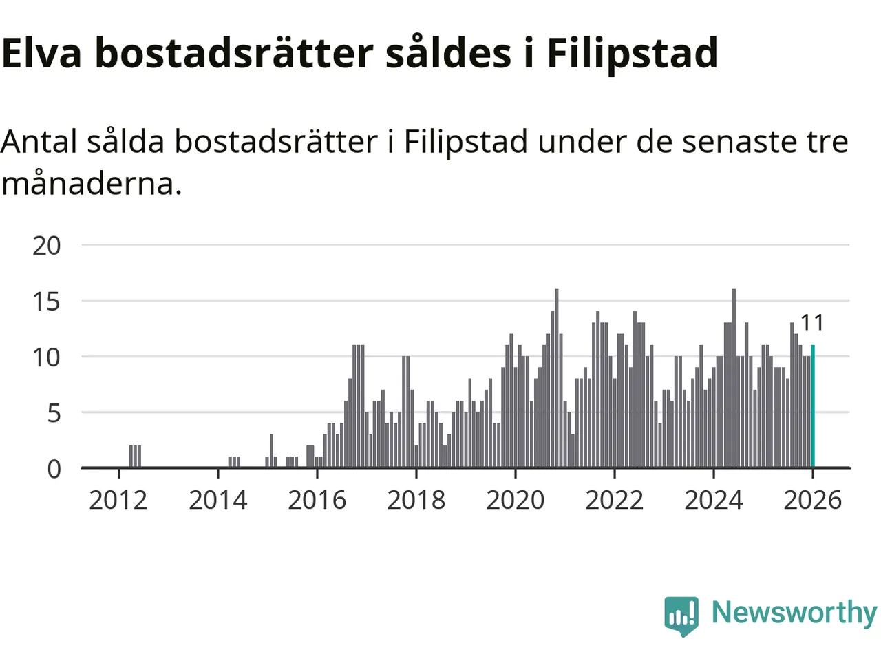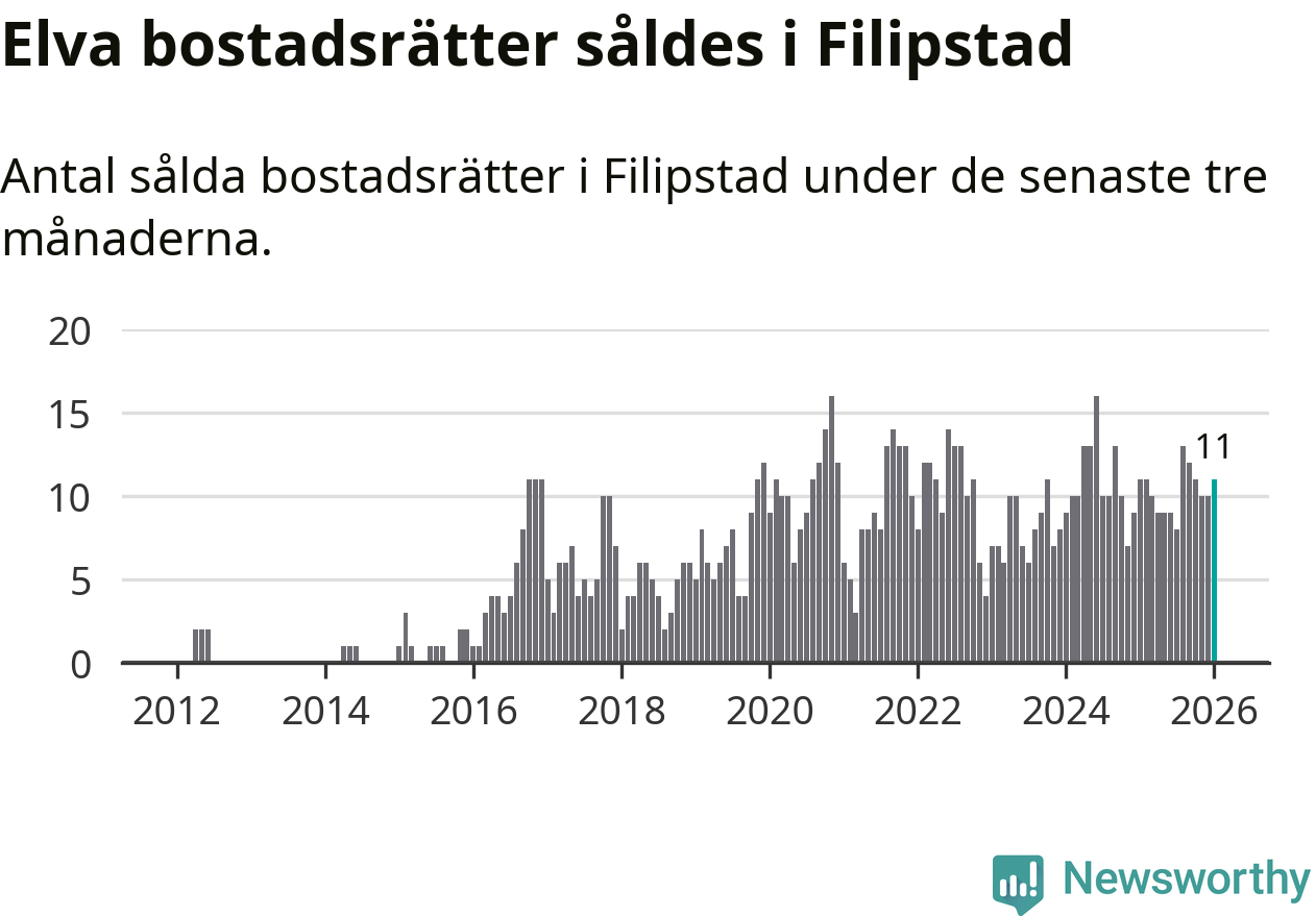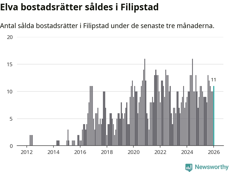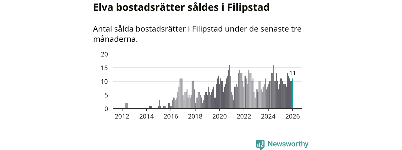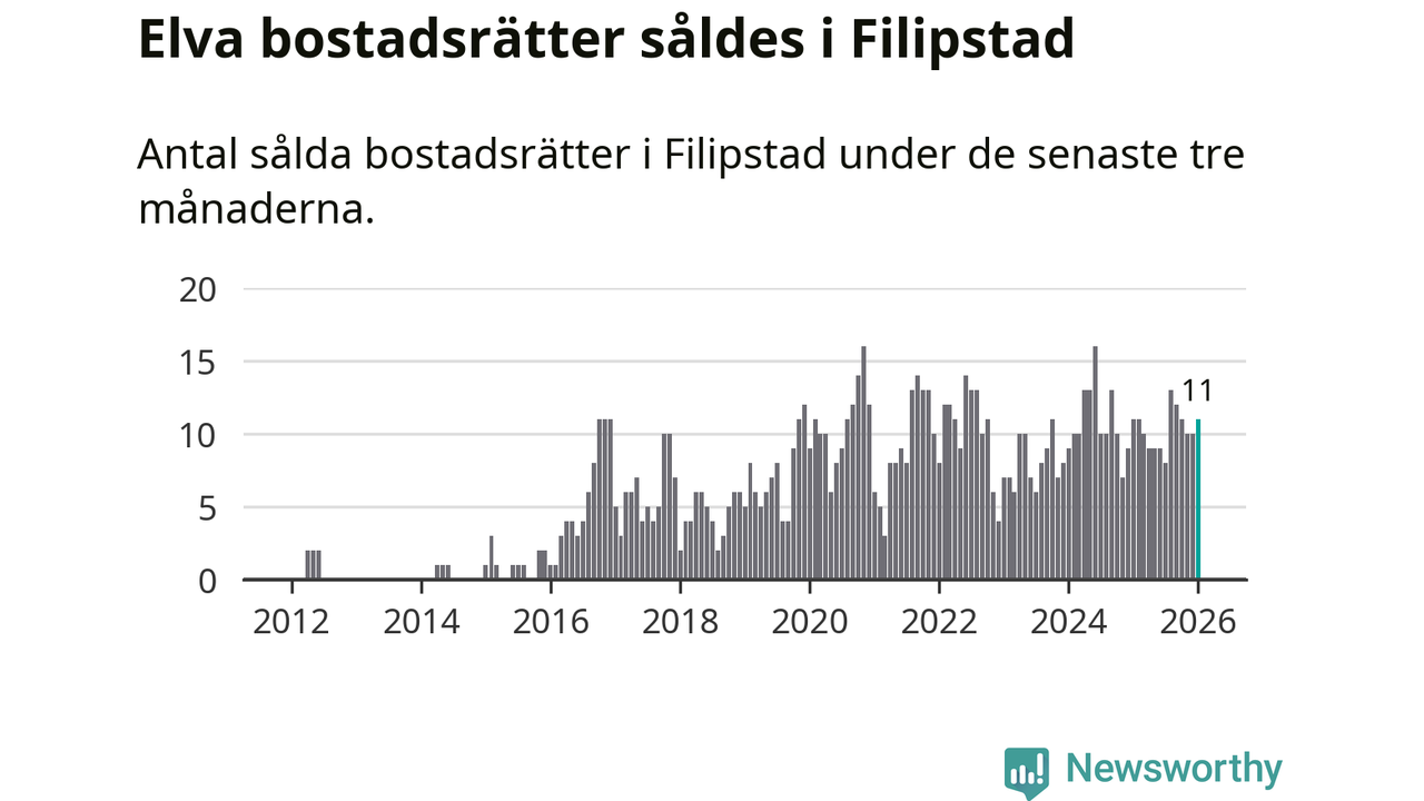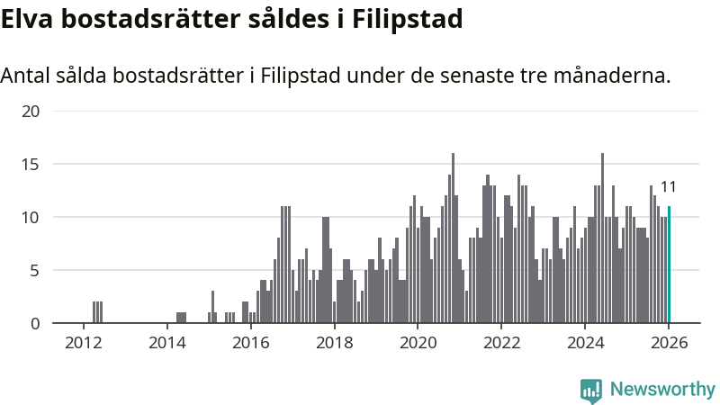 Mellan november och januari gjordes sammanlagt elva affärer med bostadsrätter i Filipstads kommun. Det är lika många affärer som vid motsvarande tid i fjol.