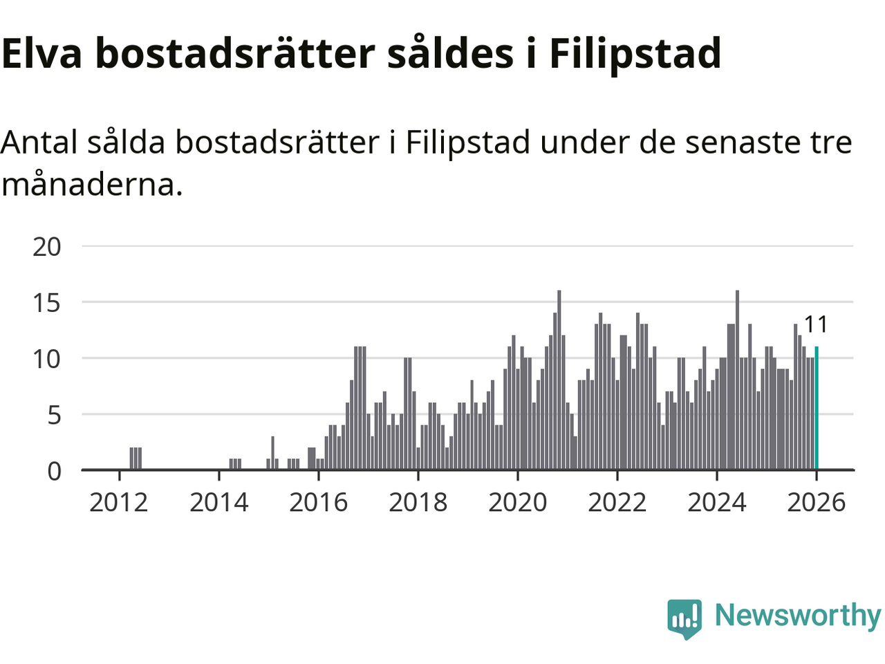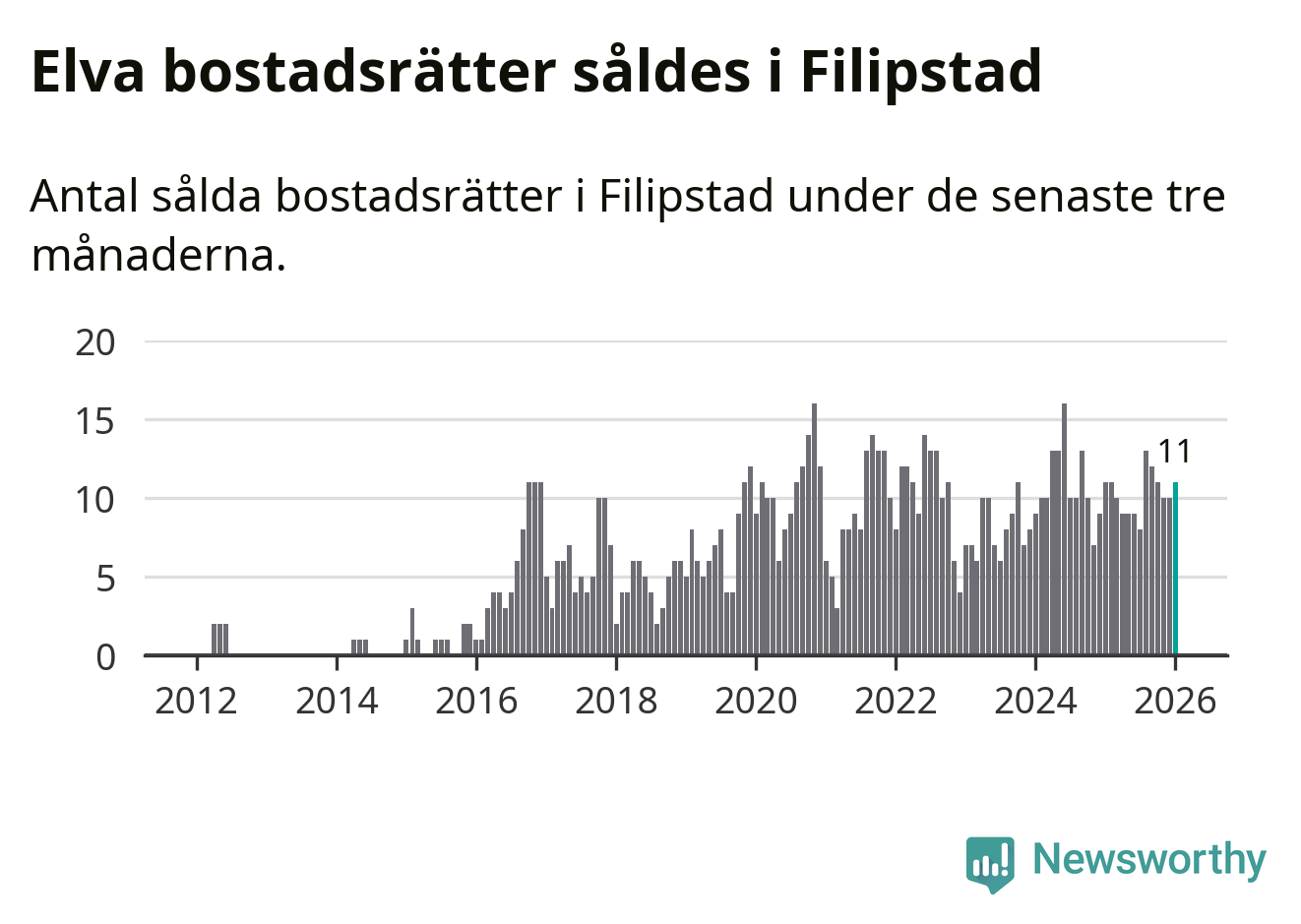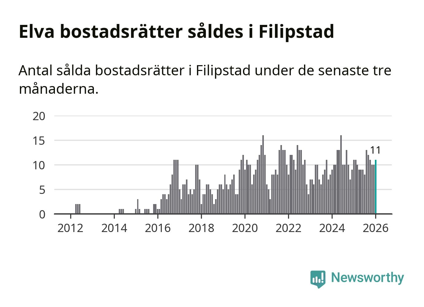 Mellan november och januari gjordes sammanlagt elva affärer med bostadsrätter i Filipstads kommun. Det är lika många affärer som vid motsvarande tid i fjol.