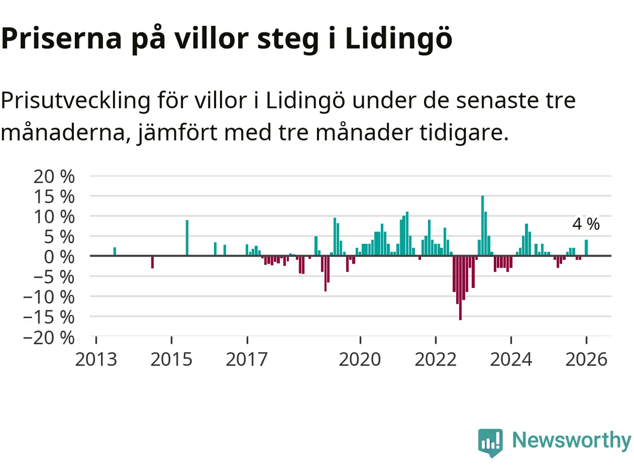 | Lidingö | +4 % ▲ | 48 | 15,1 miljoner |