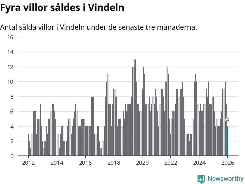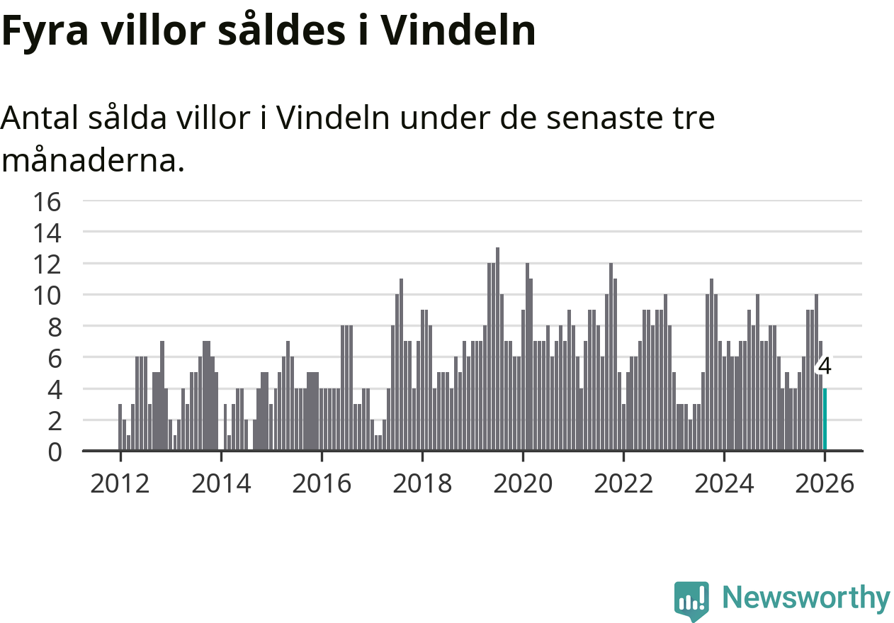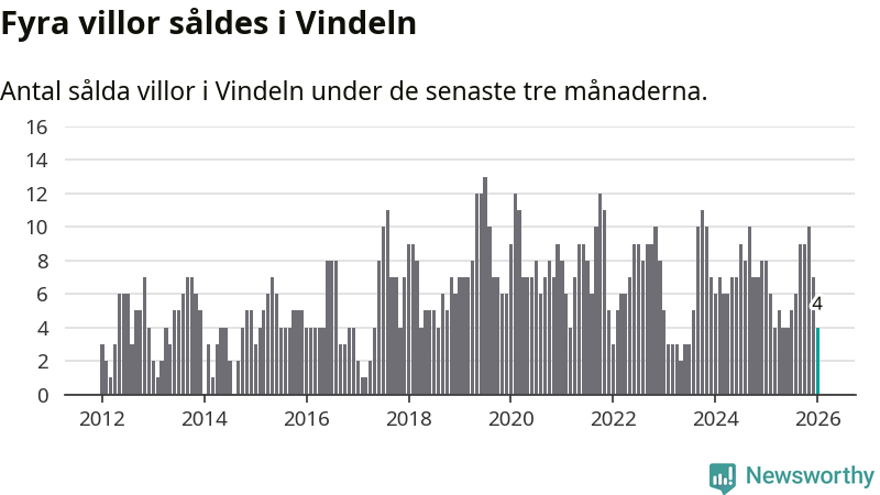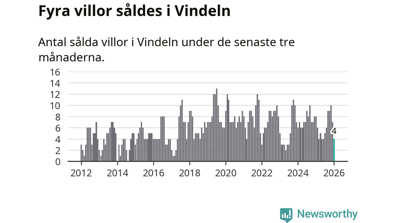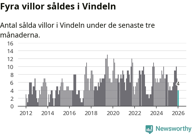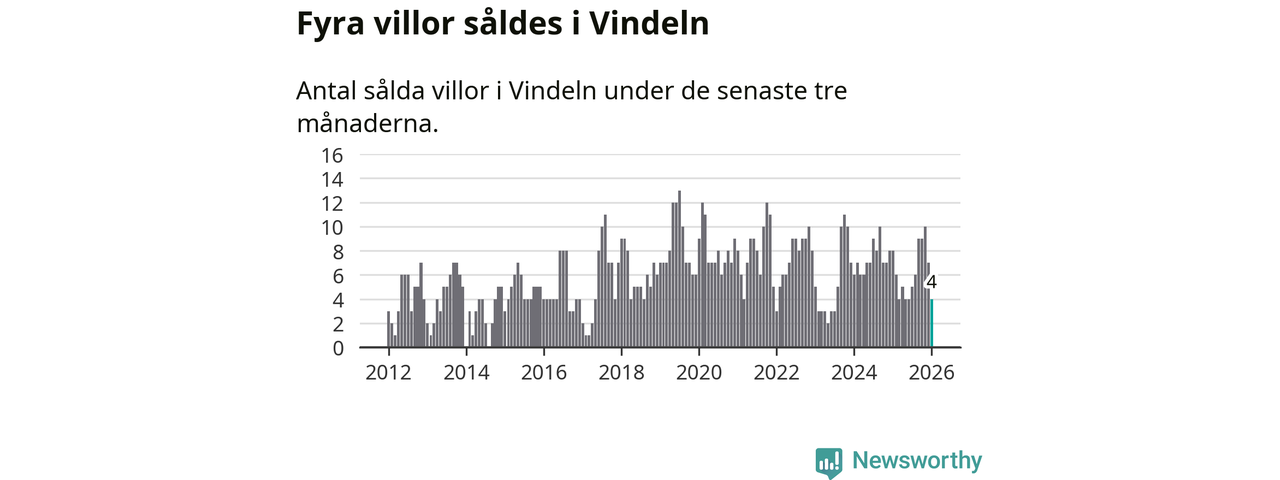 Mellan november och januari gjordes sammanlagt fyra affärer med villor i Vindelns kommun. Det kan jämföras med åtta vid motsvarande tid i fjol.