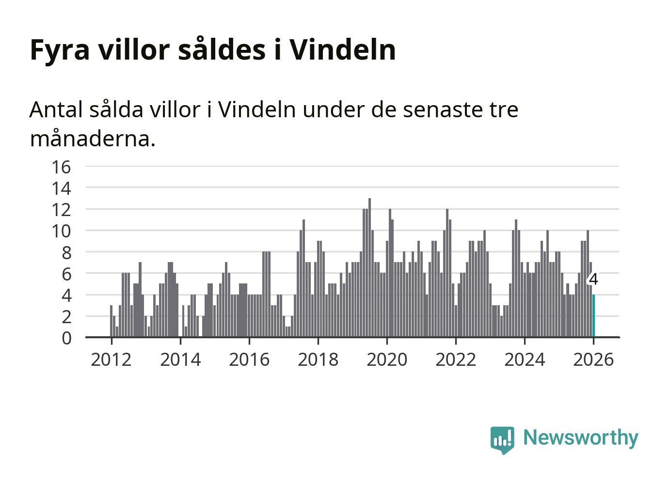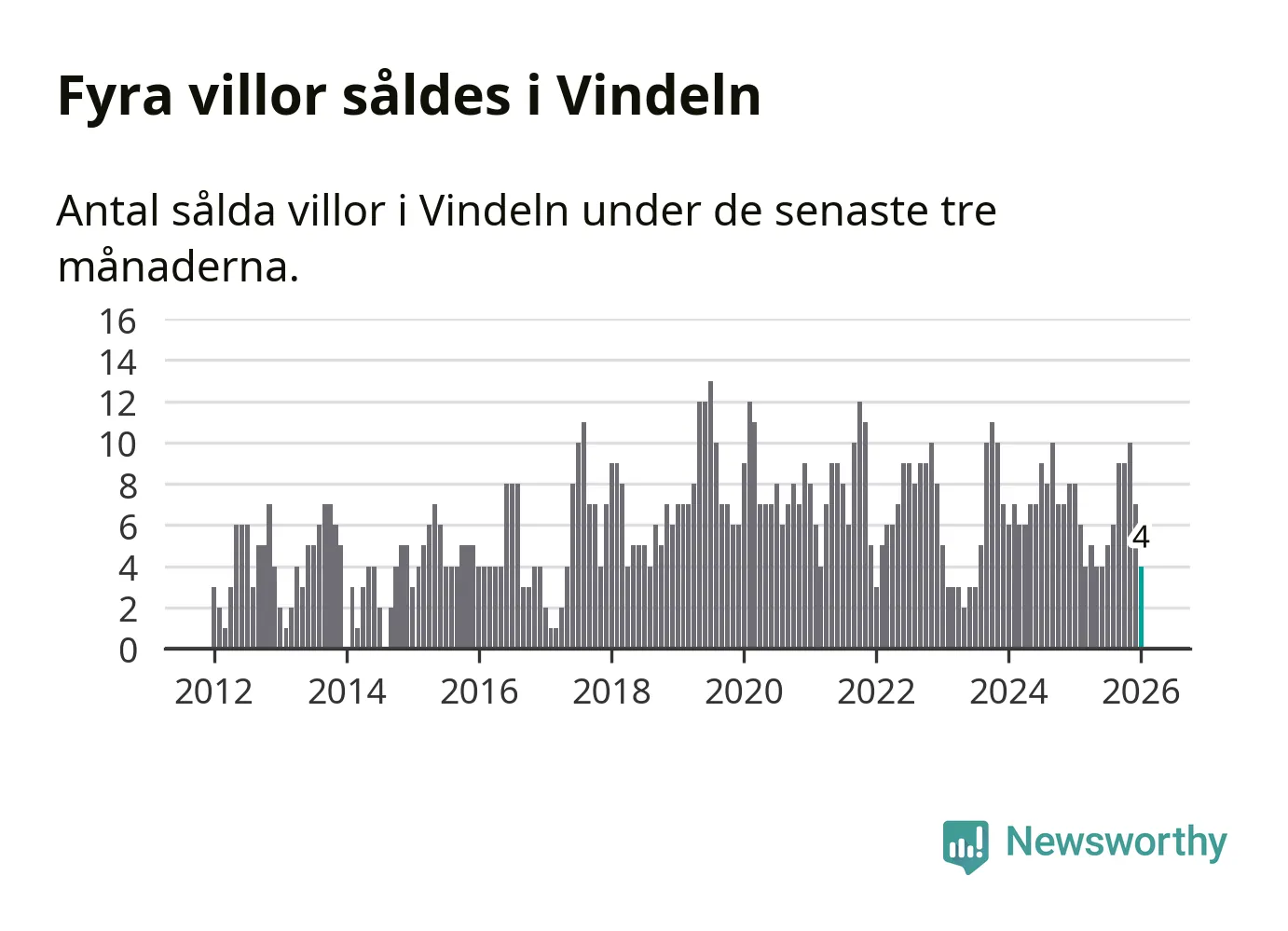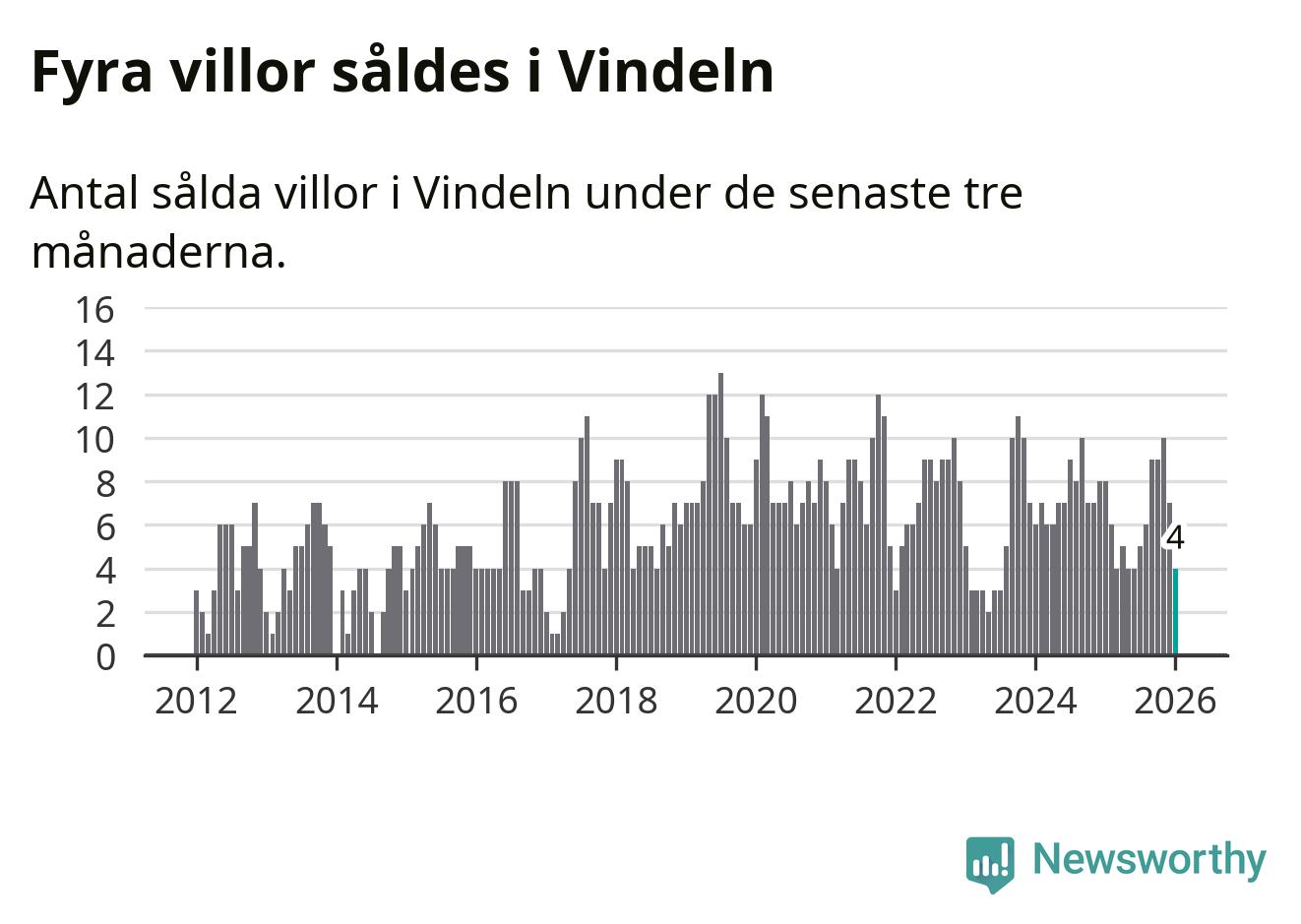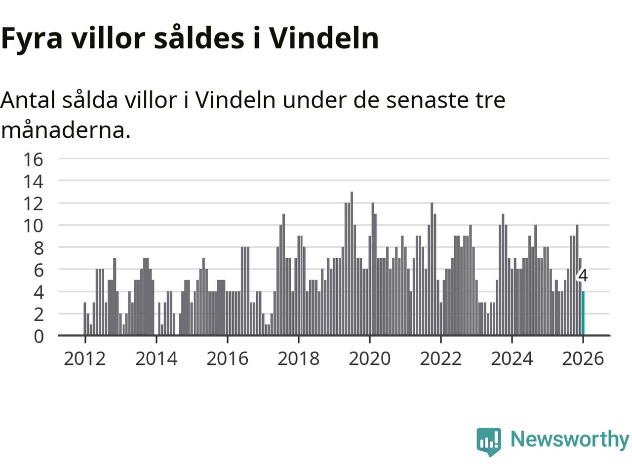 Mellan november och januari gjordes sammanlagt fyra affärer med villor i Vindelns kommun. Det kan jämföras med åtta vid motsvarande tid i fjol.