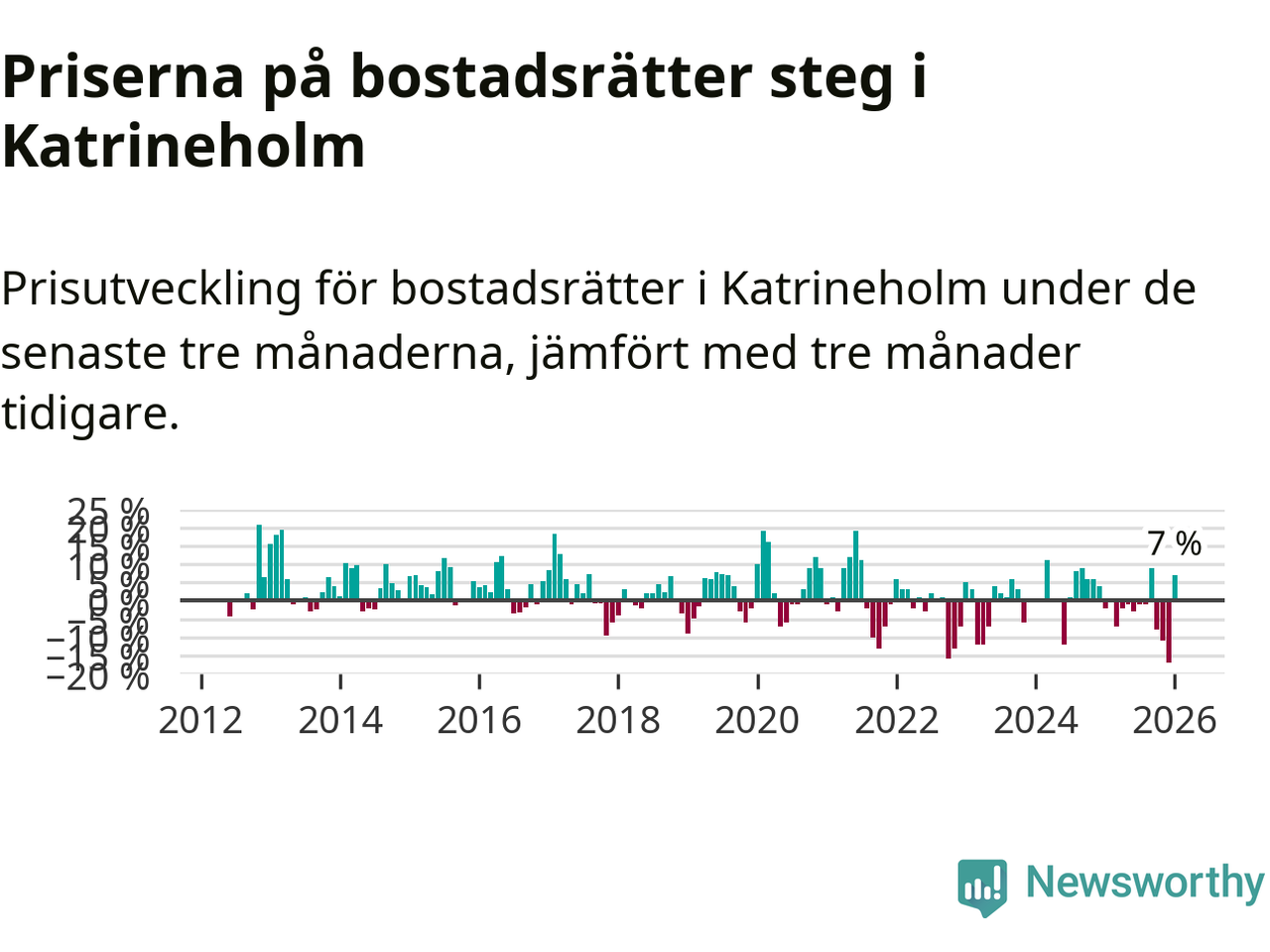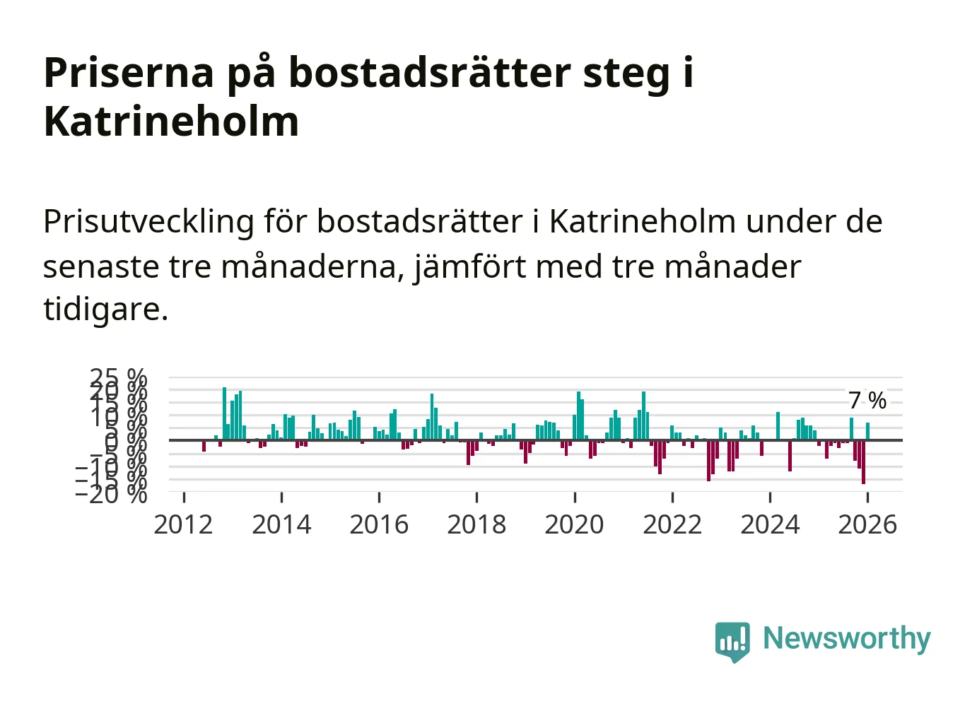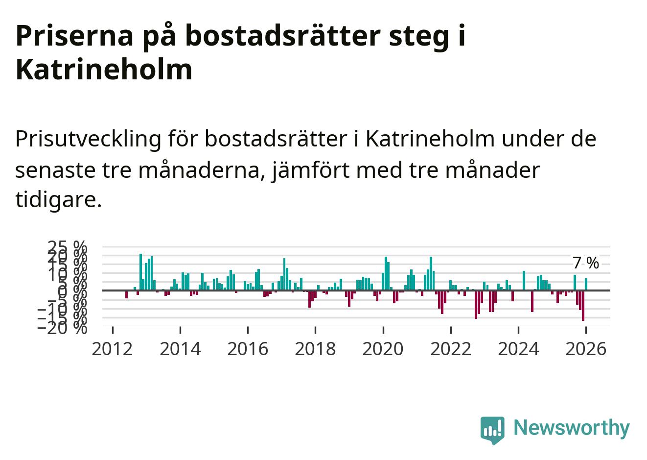 Priserna på bostadsrätter steg mellan november och januari med 7 procent i Katrineholms kommun. Det är en betydande uppgång jämfört med det gångna året då priserna i snitt sjunkit med 3 procent.
