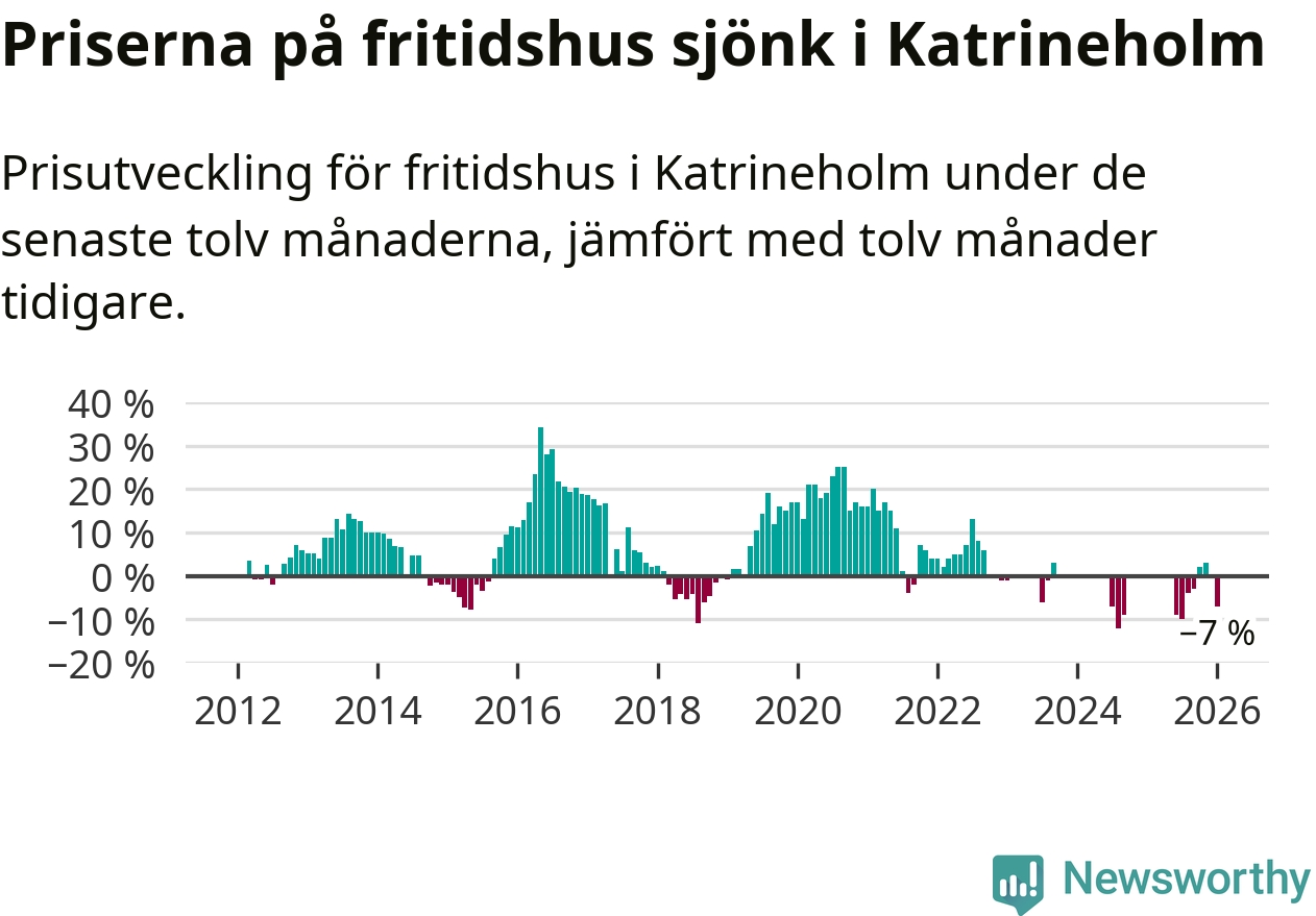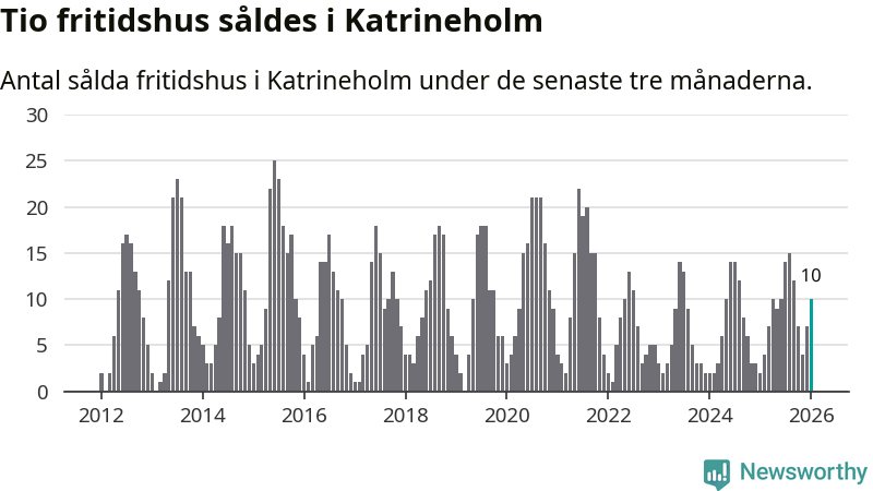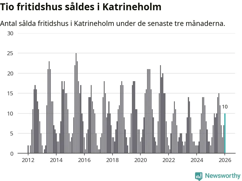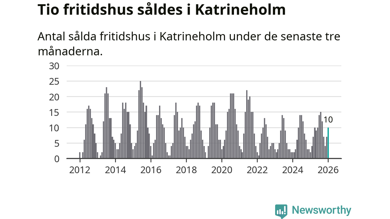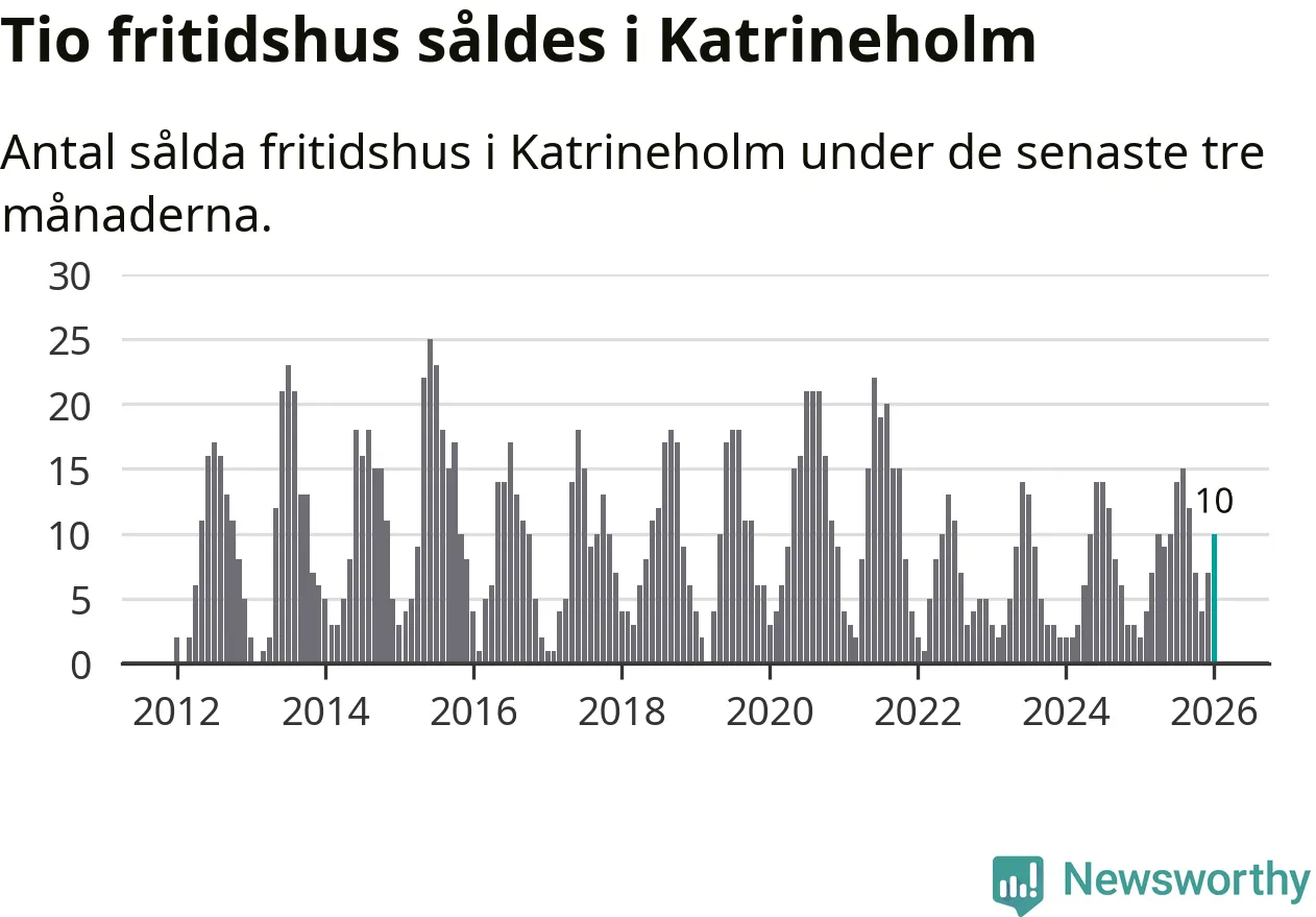 Sammanlagt såldes tio fritidshus i Katrineholms kommun mellan november 2025 och januari till ett genomsnittligt pris på 1,6 miljoner kronor. I fjol gjordes två affärer vid den här tiden på året.