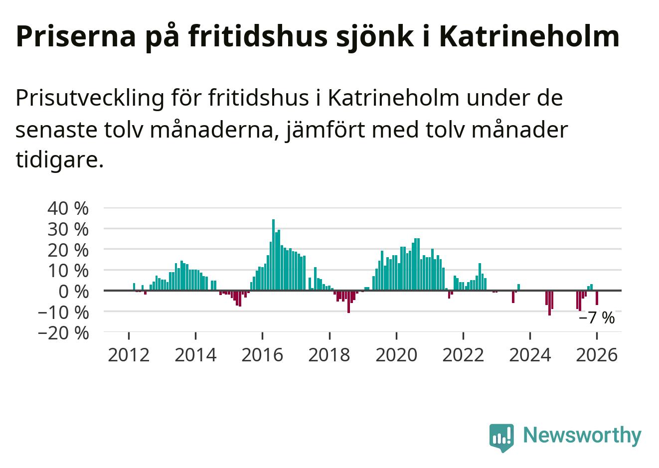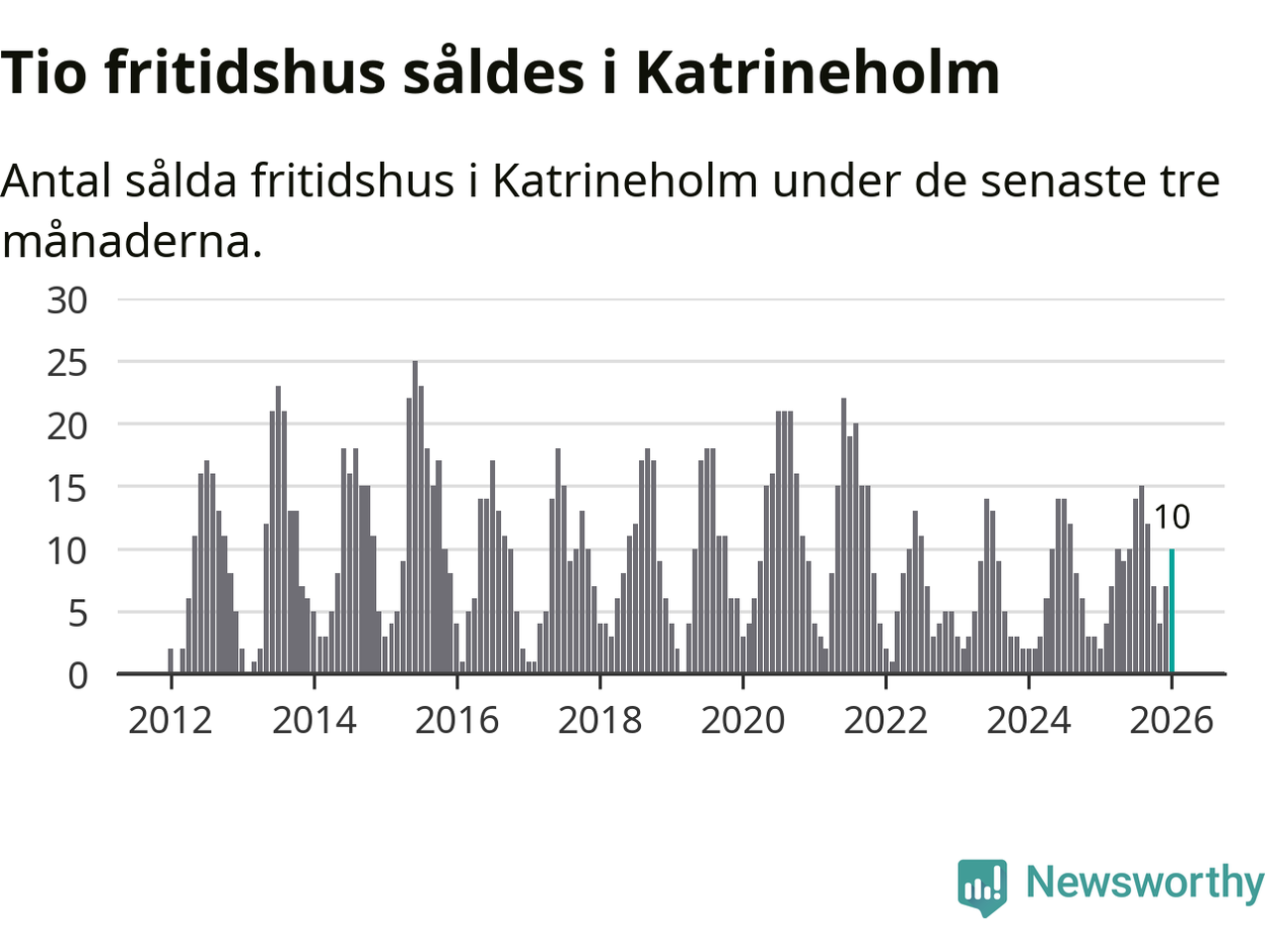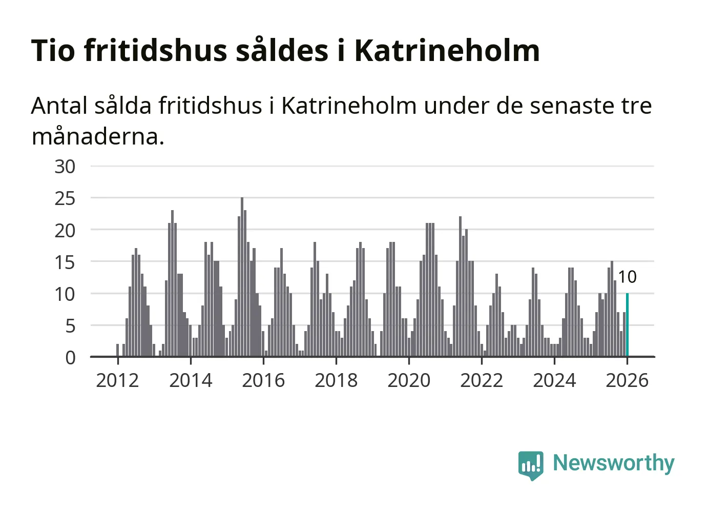 Sammanlagt såldes tio fritidshus i Katrineholms kommun mellan november 2025 och januari till ett genomsnittligt pris på 1,6 miljoner kronor. I fjol gjordes två affärer vid den här tiden på året.