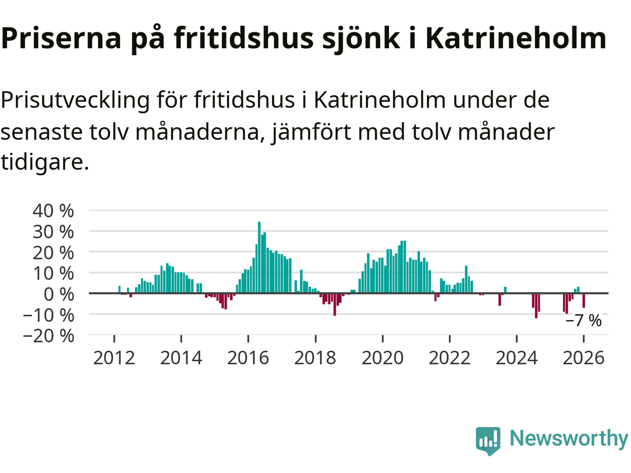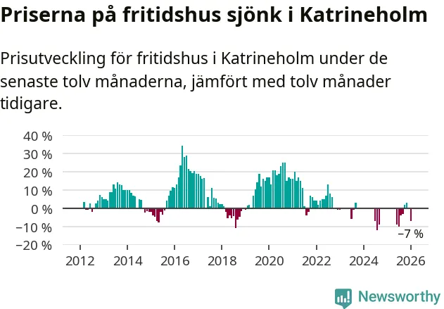 Priserna på fritidshus har gått ner i Katrineholms kommun. Medelpriset på försäljningarna under de senaste tolv månaderna visar på en nedgång med 7 procent.