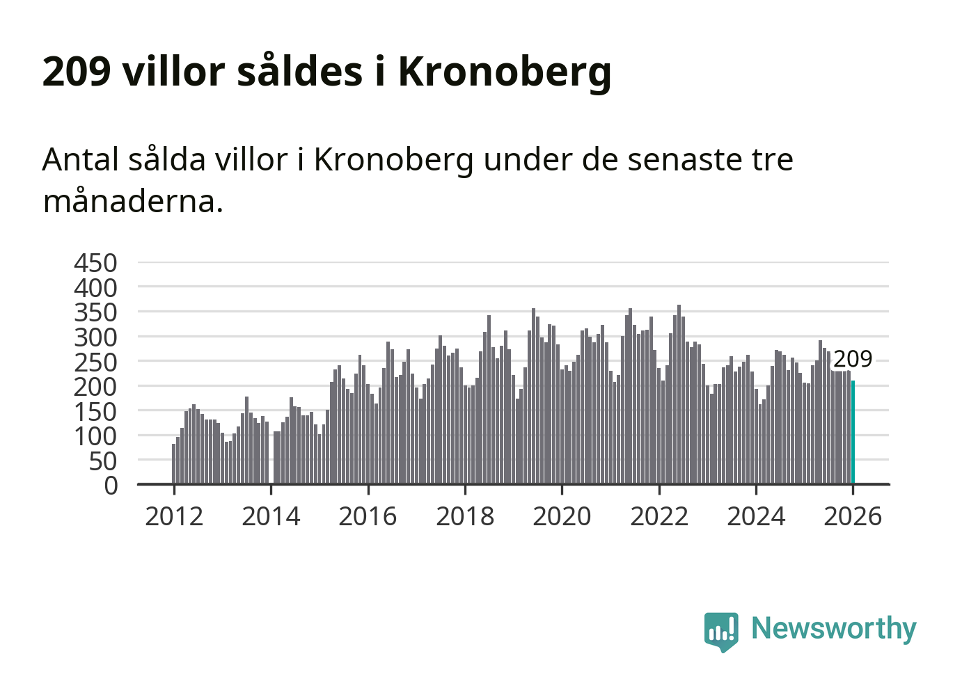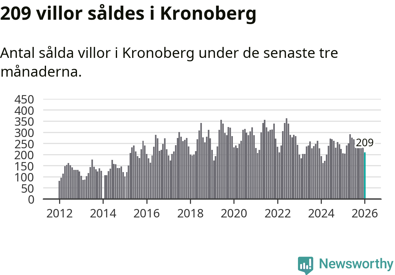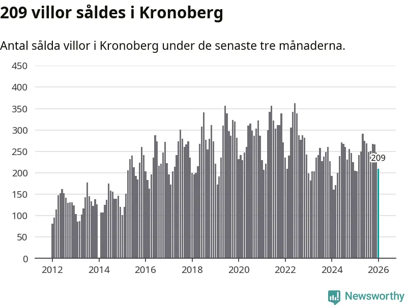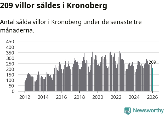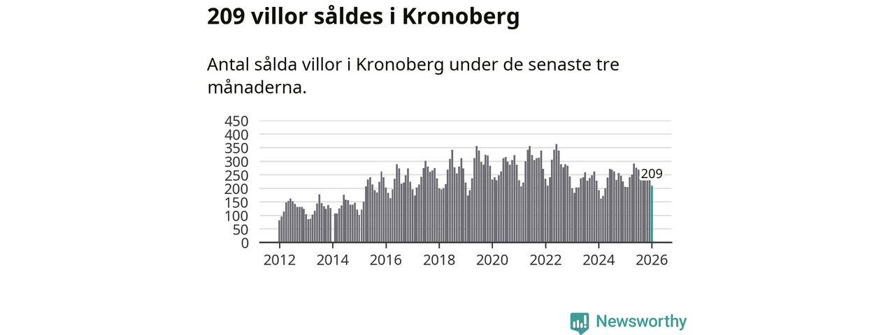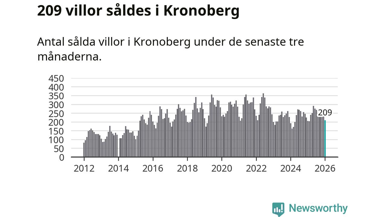 Sammanlagt såldes 209 villor i Kronobergs län mellan november och januari till ett genomsnittligt pris på 2,3 miljoner kronor. I fjol gjordes 205 affärer vid den här tiden på året.