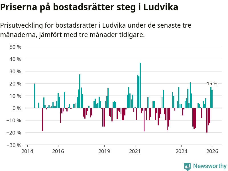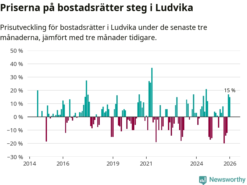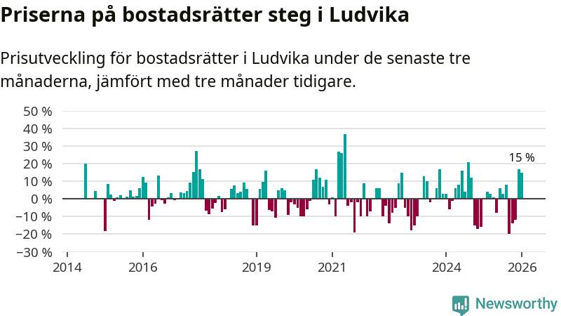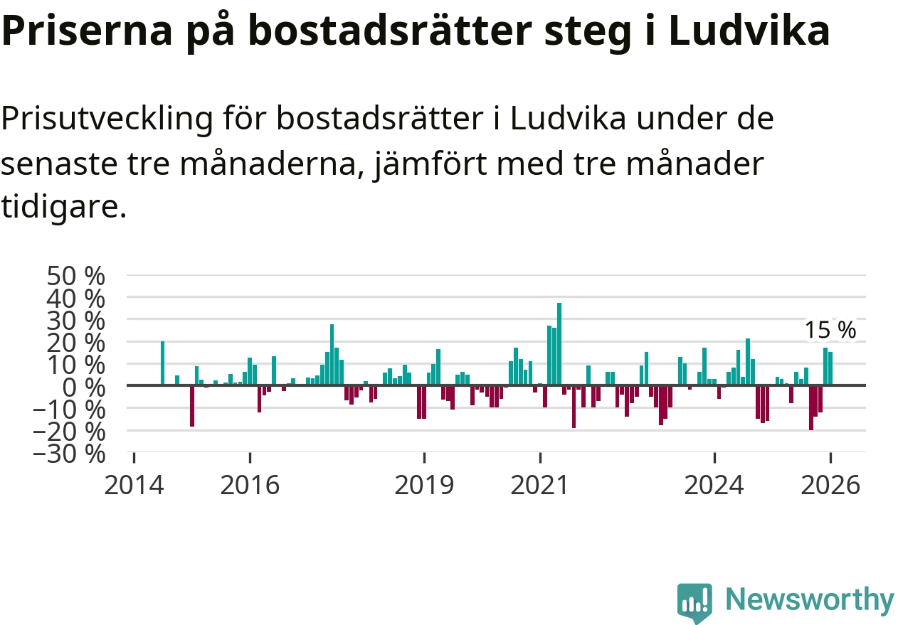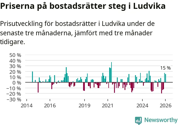 Priserna på bostadsrätter steg mellan november och januari med 15 procent i Ludvika kommun. Det är en betydande uppgång jämfört med det gångna året då priserna i snitt stått stilla.