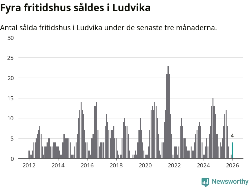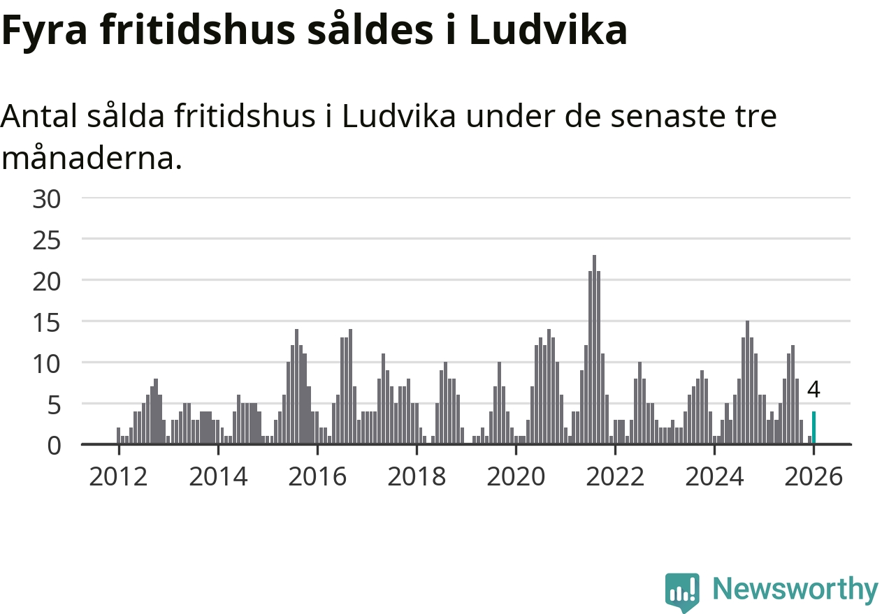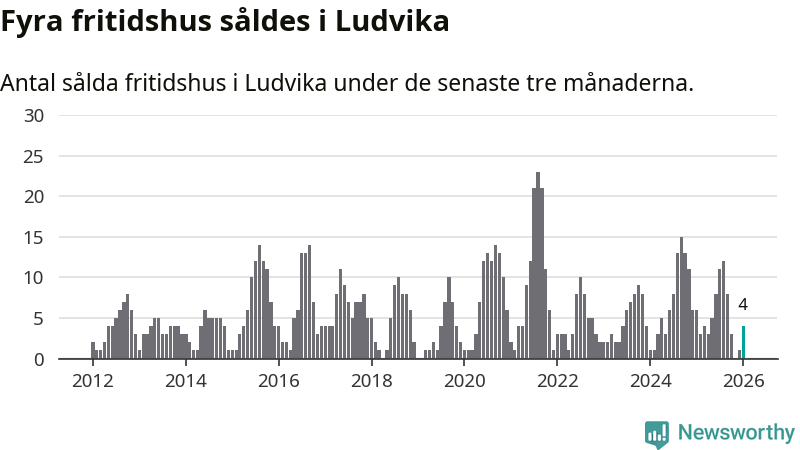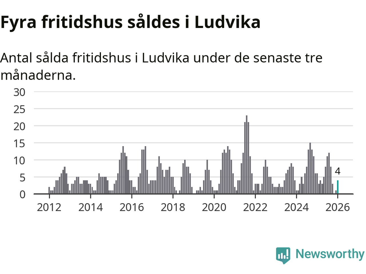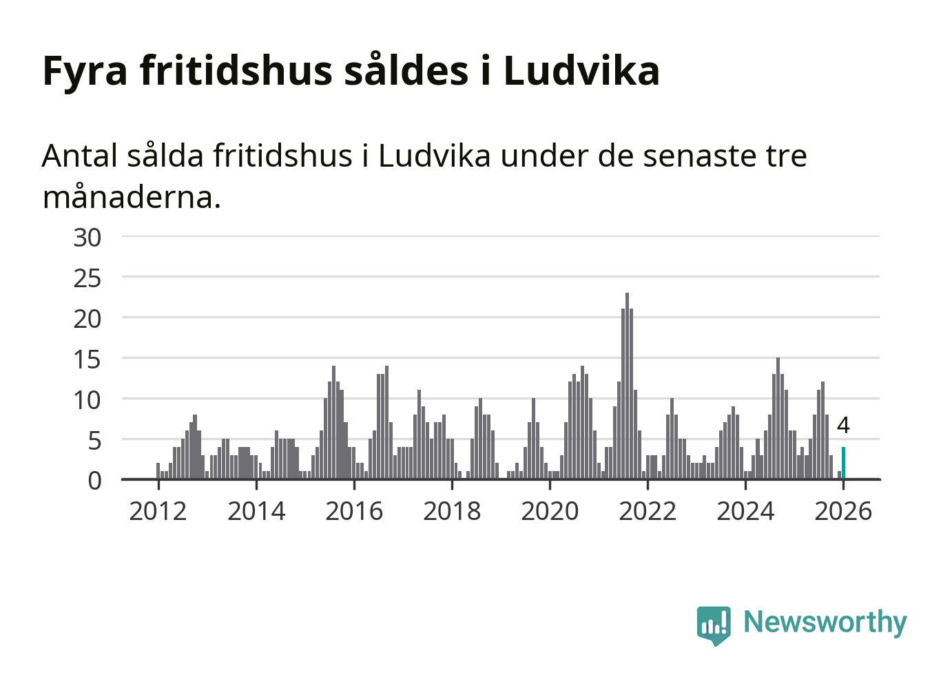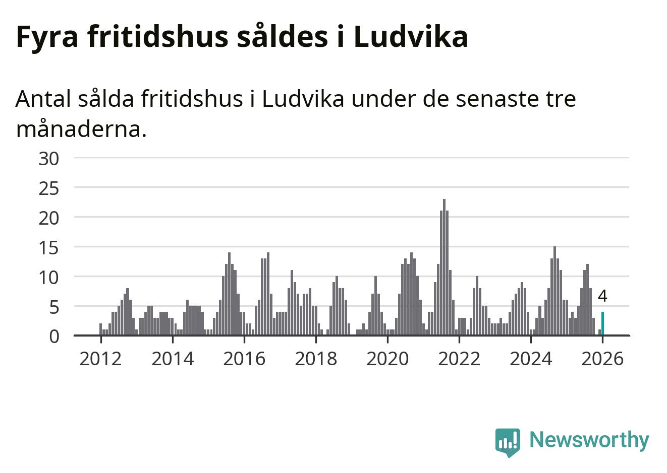 Mellan november och januari gjordes sammanlagt fyra affärer med fritidshus i Ludvika kommun. Det kan jämföras med sex vid motsvarande tid i fjol.