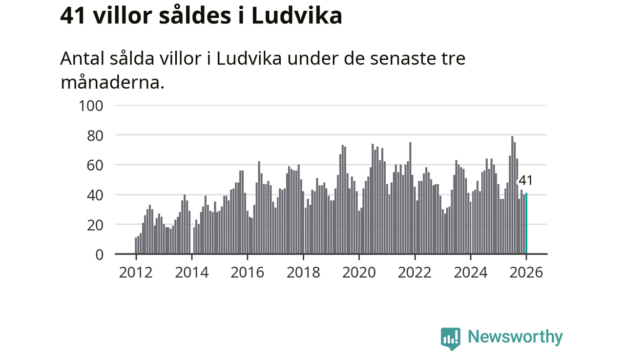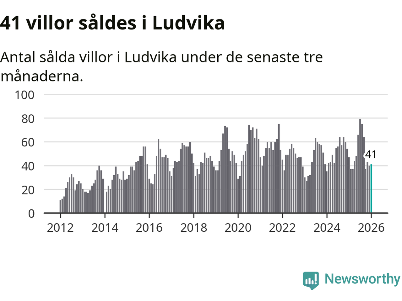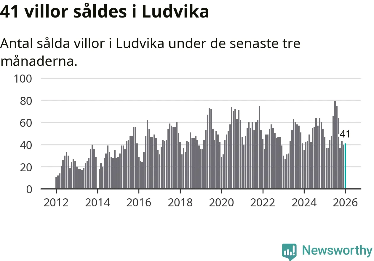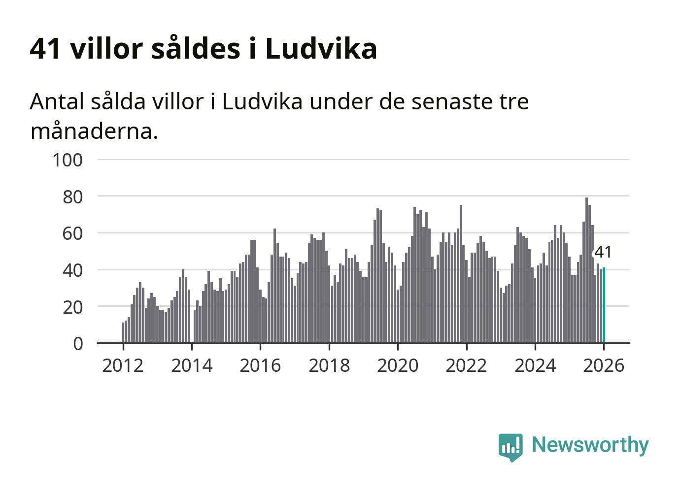 Sammanlagt såldes 41 villor i Ludvika kommun mellan november och januari till ett genomsnittligt pris på 1,4 miljoner kronor. I fjol gjordes 47 affärer vid den här tiden på året.