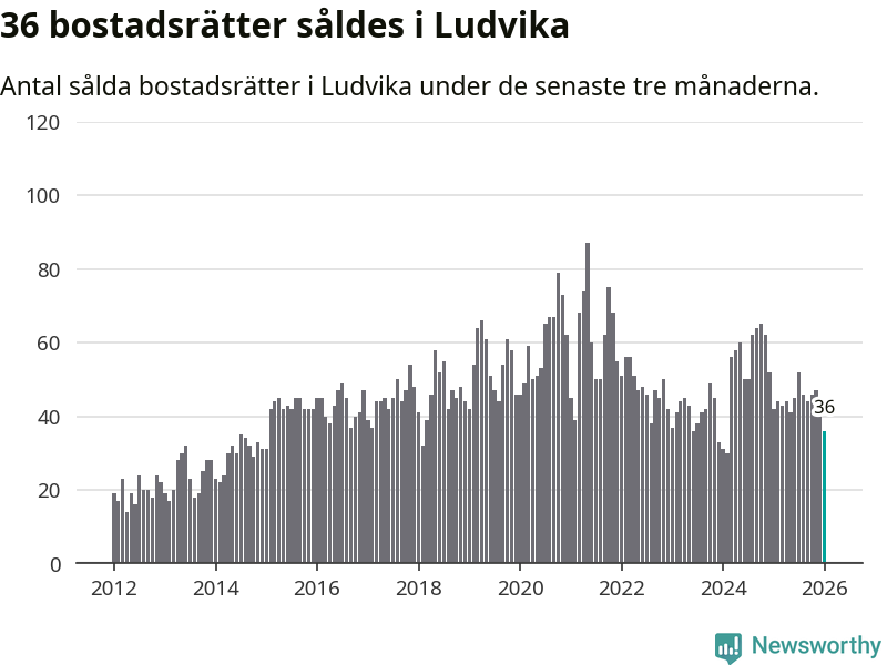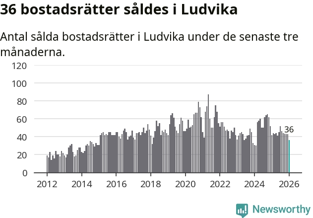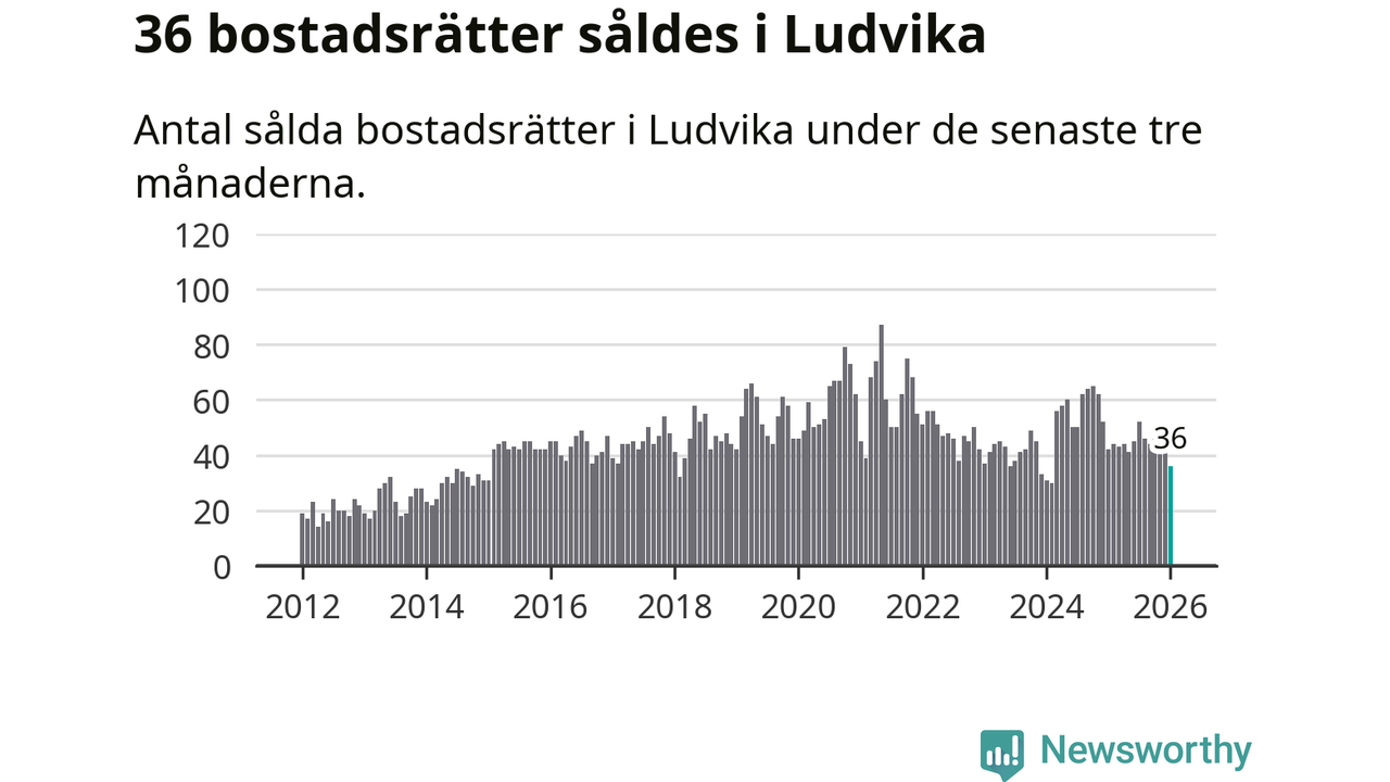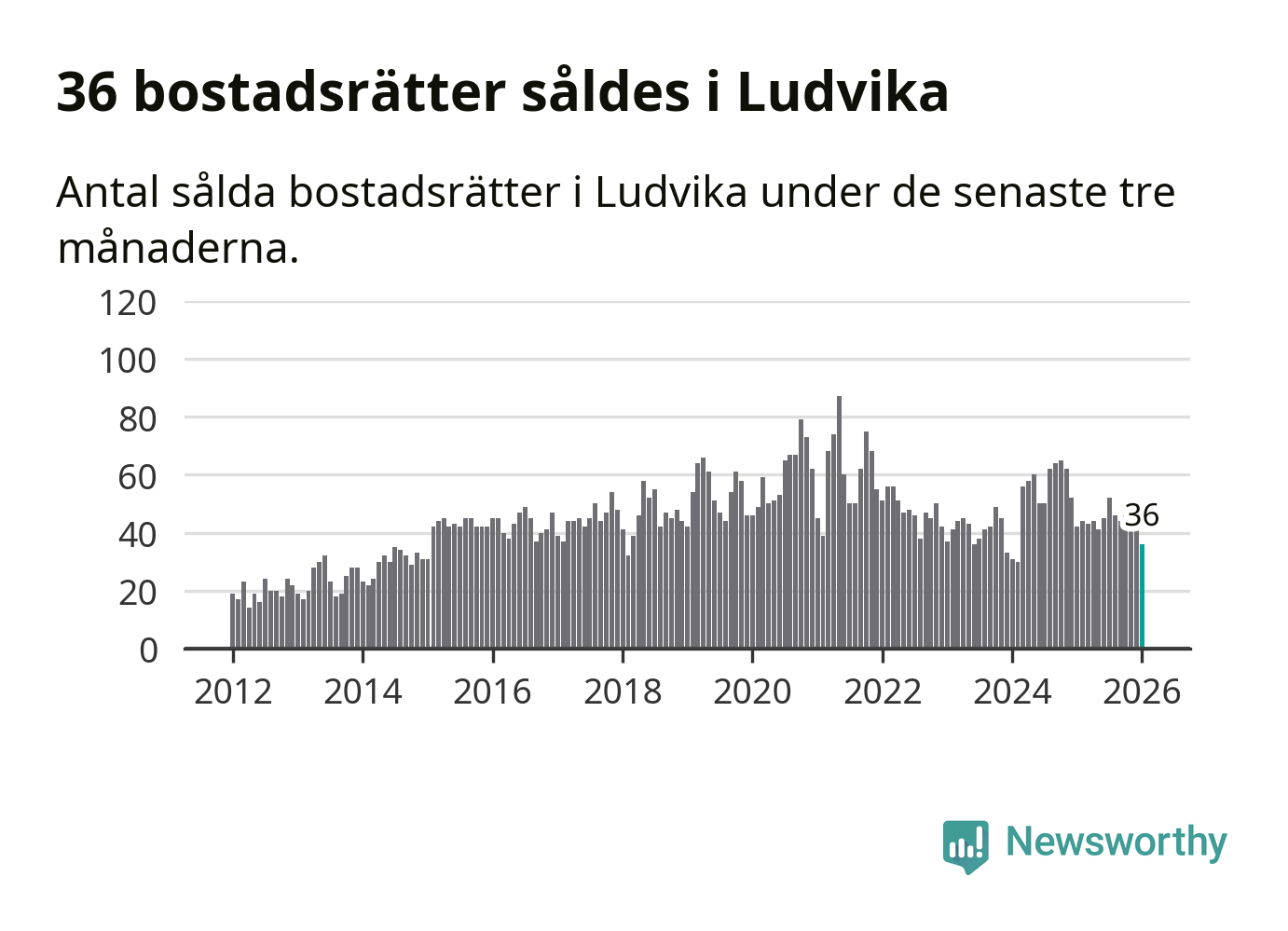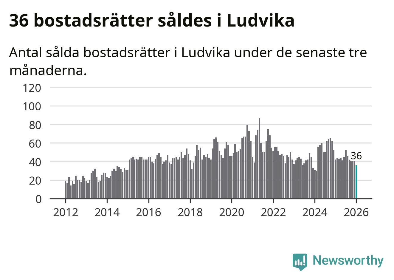 Sammanlagt såldes 36 bostadsrätter i Ludvika kommun mellan november och januari till ett genomsnittligt pris på 0,7 miljoner kronor. I fjol gjordes 42 affärer vid den här tiden på året.