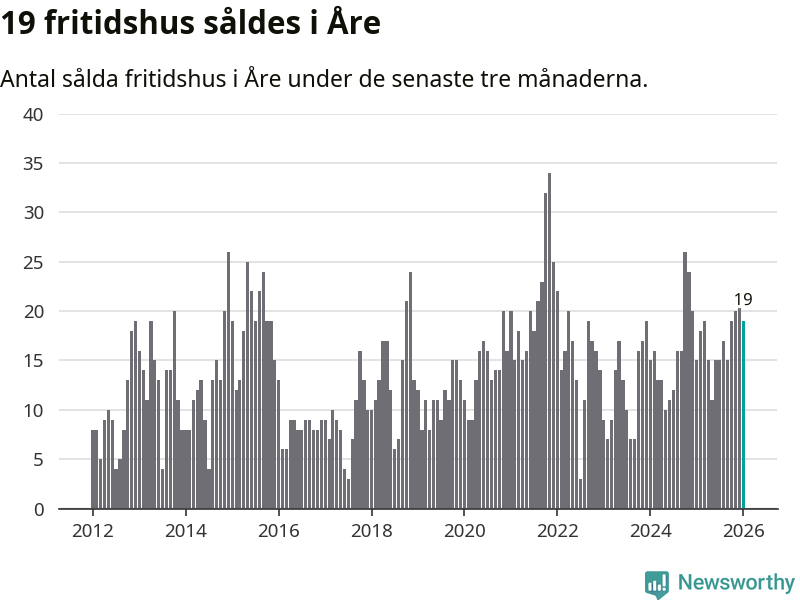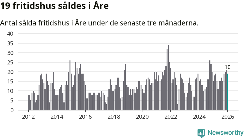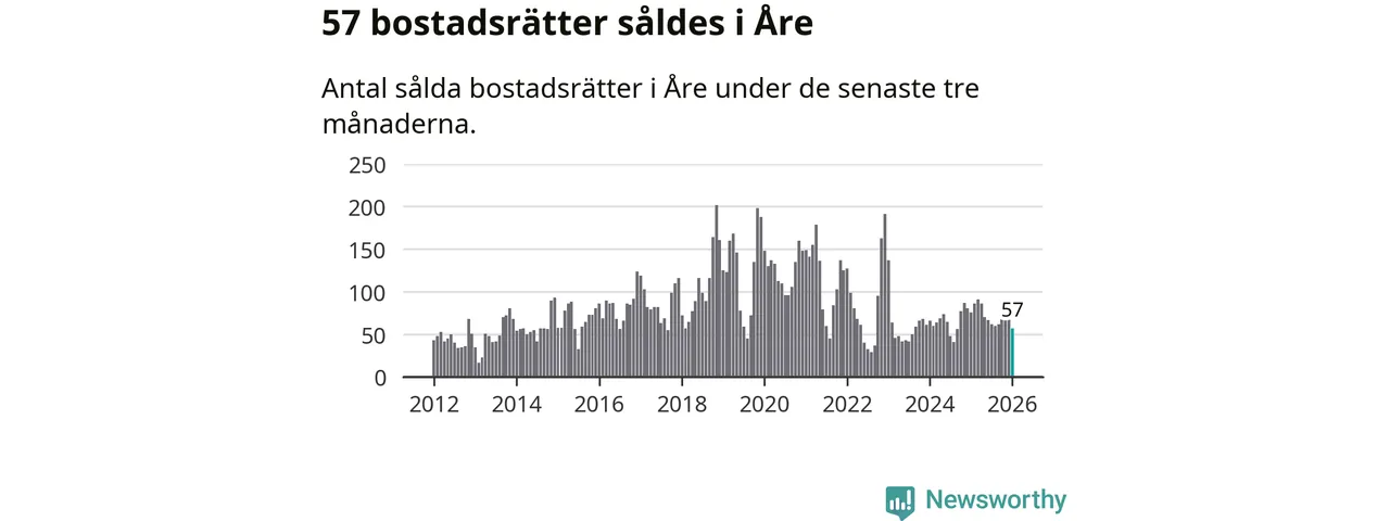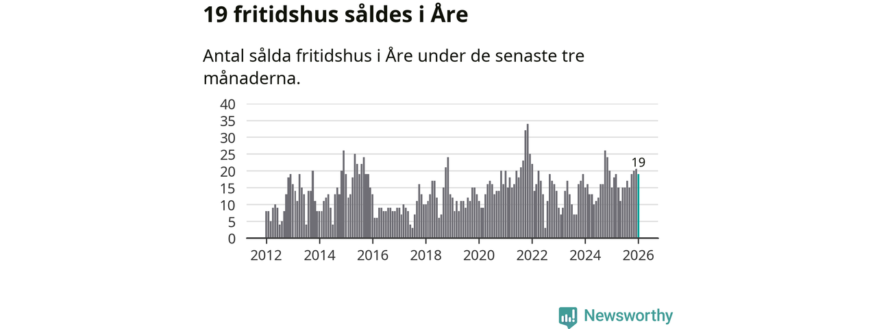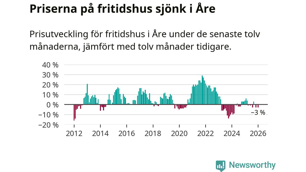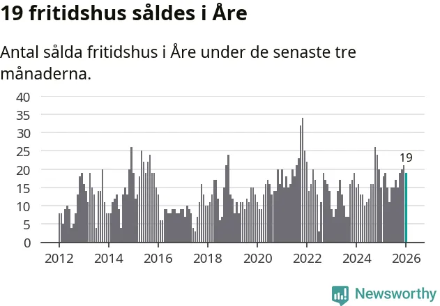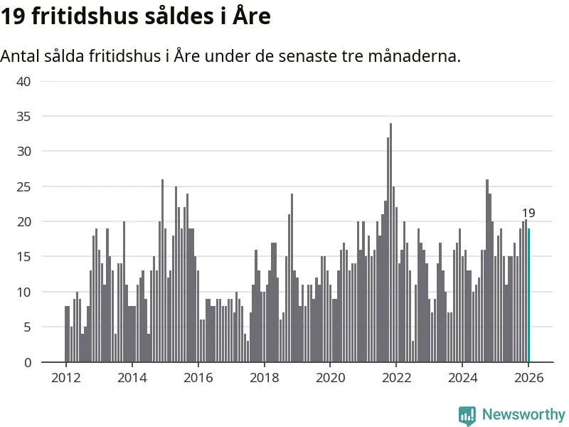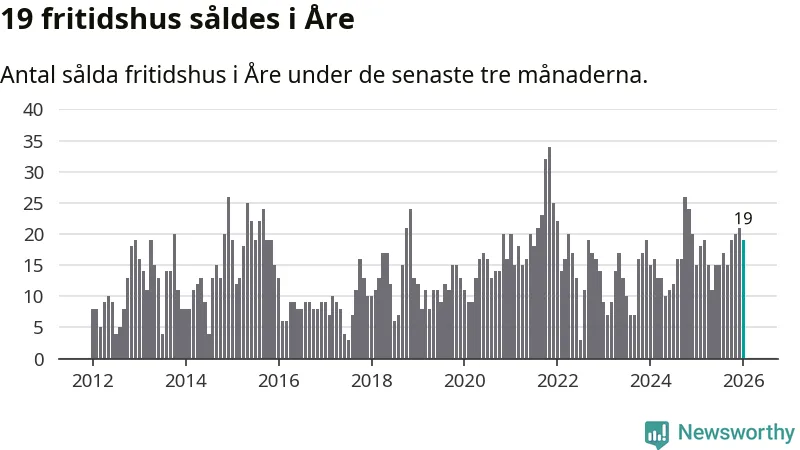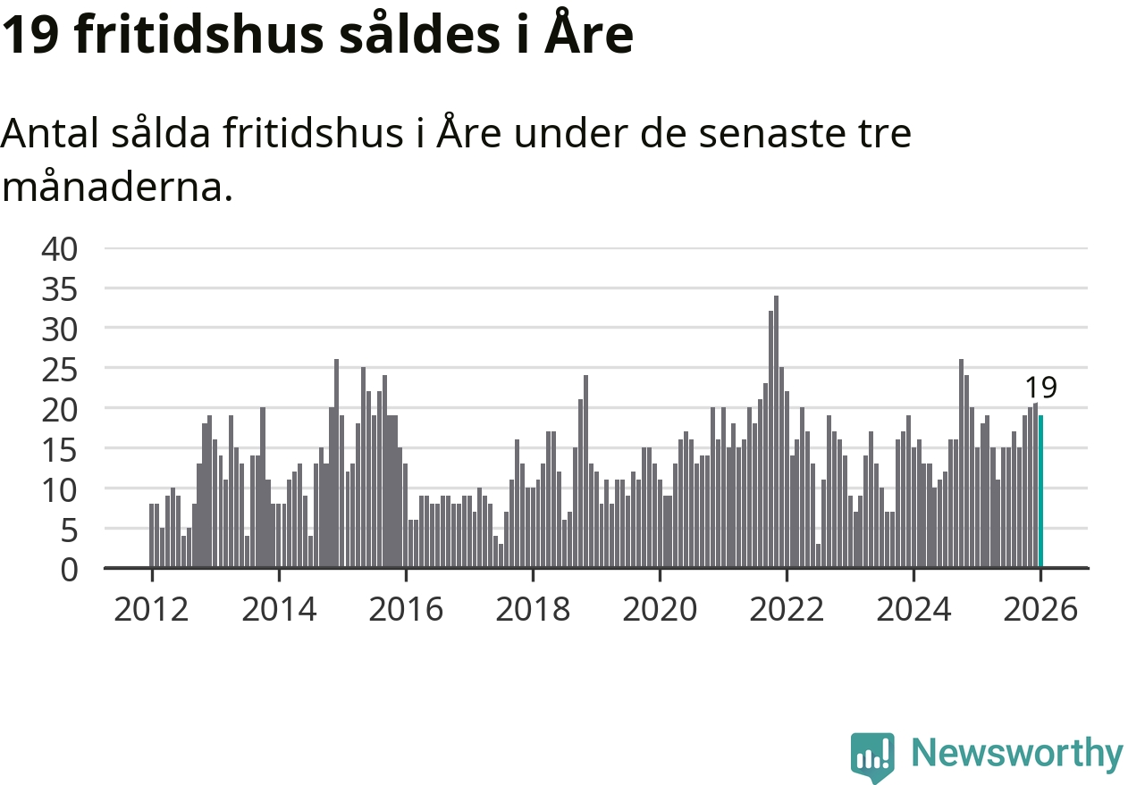 Sammanlagt såldes 19 fritidshus i Åre kommun mellan november 2025 och januari till ett genomsnittligt pris på 3,3 miljoner kronor. I fjol gjordes 15 affärer vid den här tiden på året.