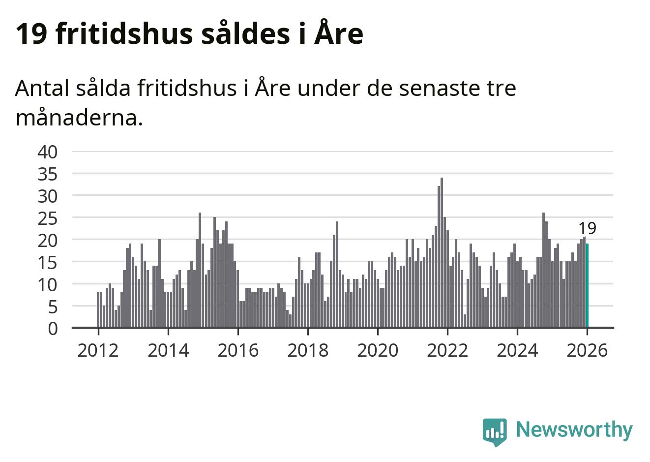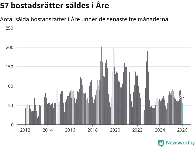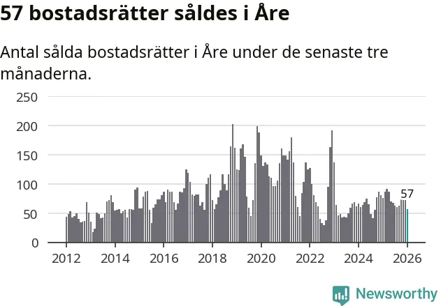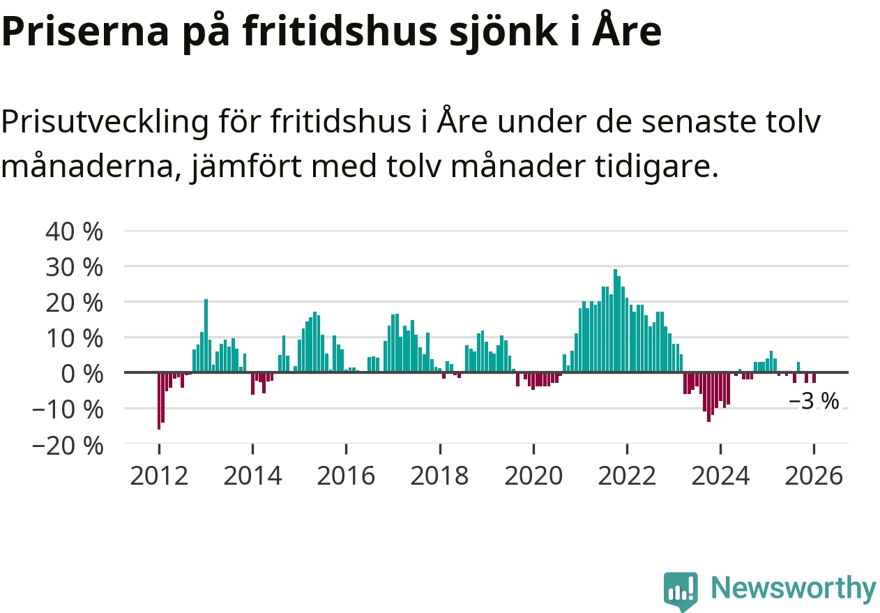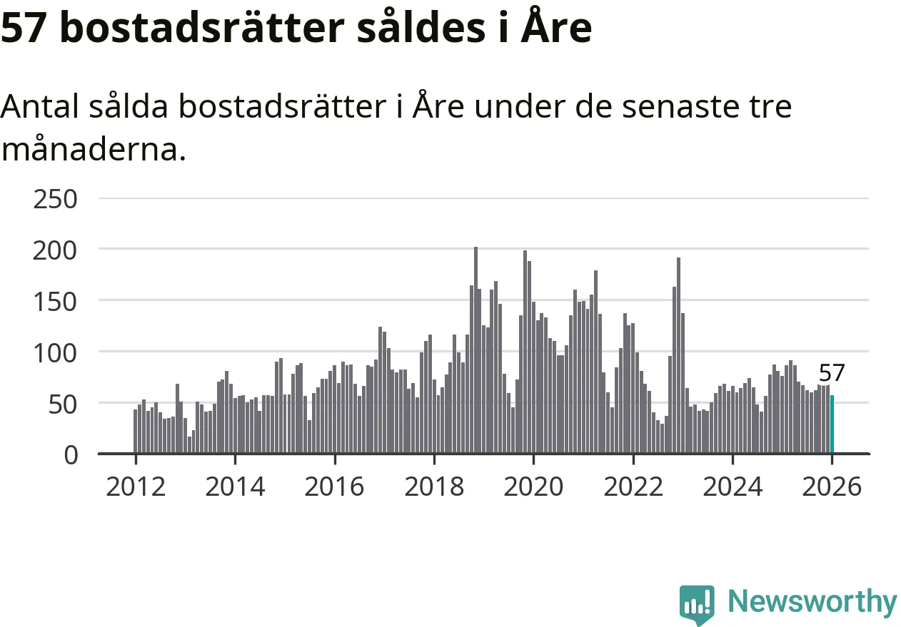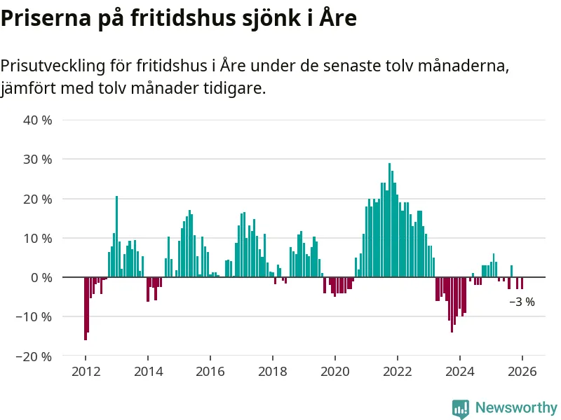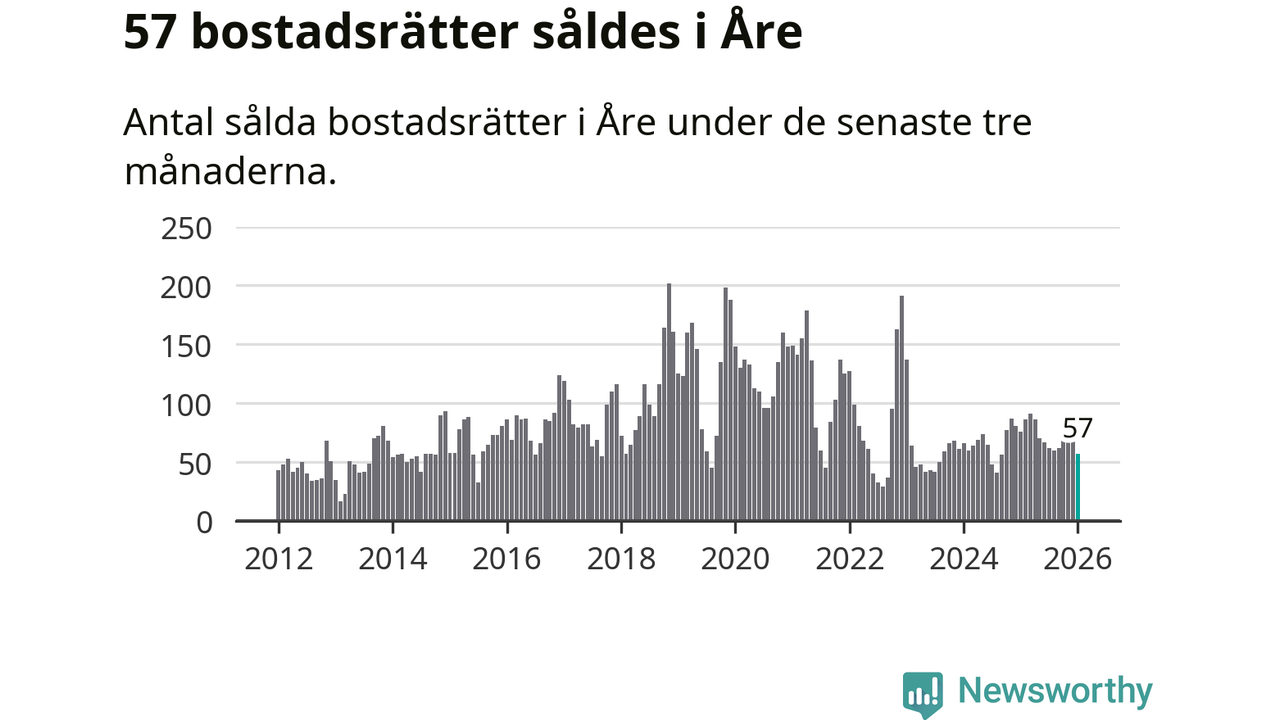 Sammanlagt såldes 19 fritidshus i Åre kommun mellan november 2025 och januari till ett genomsnittligt pris på 3,3 miljoner kronor. I fjol gjordes 15 affärer vid den här tiden på året.