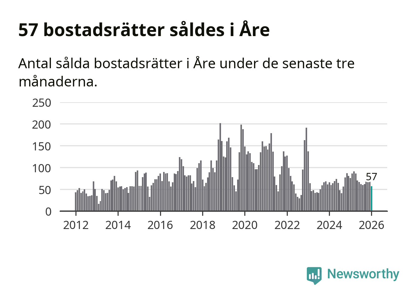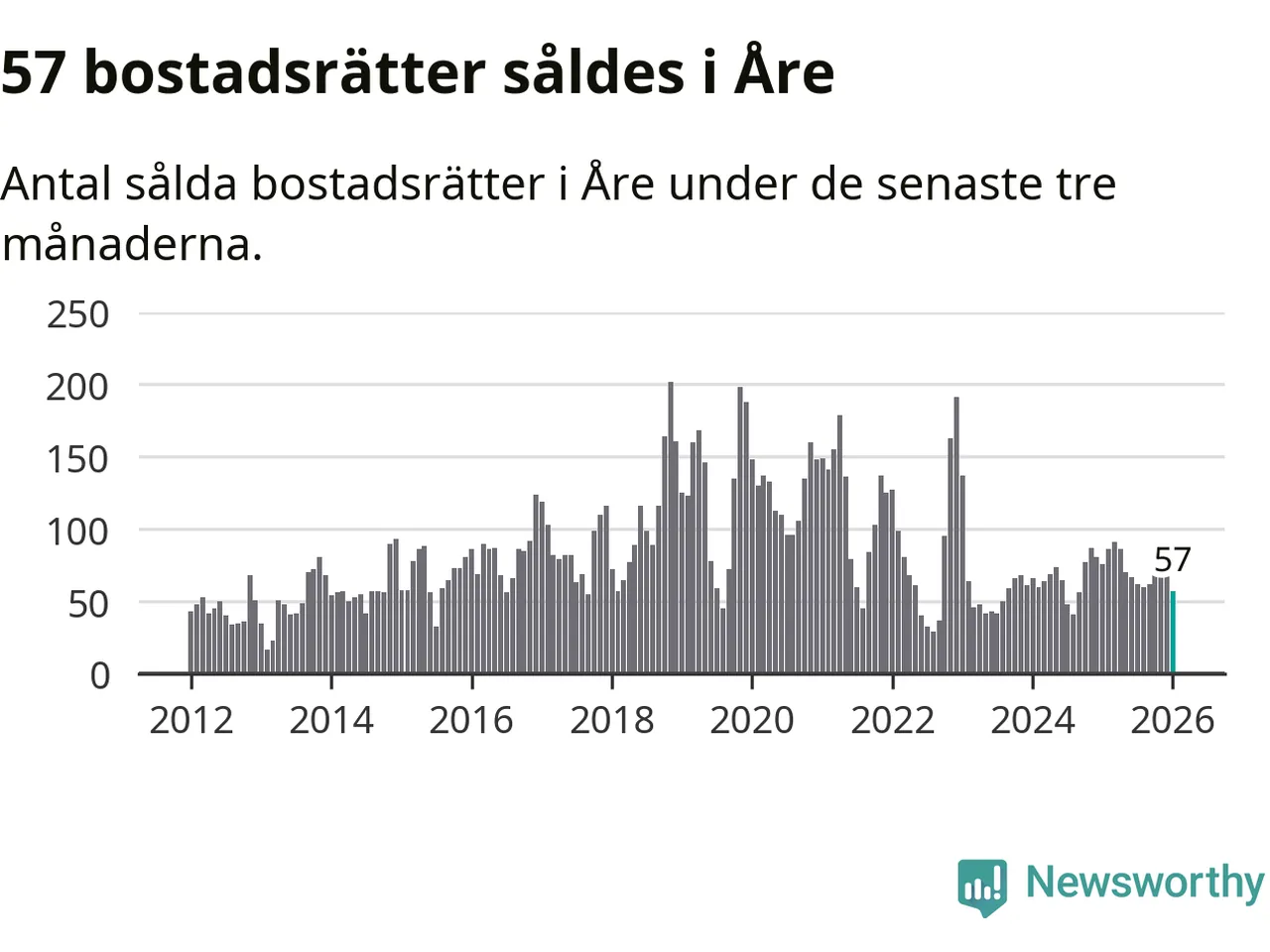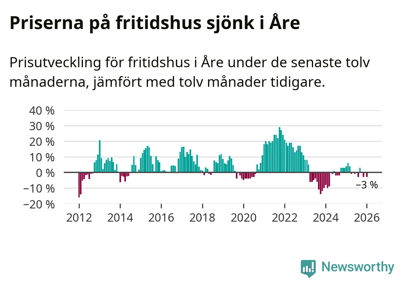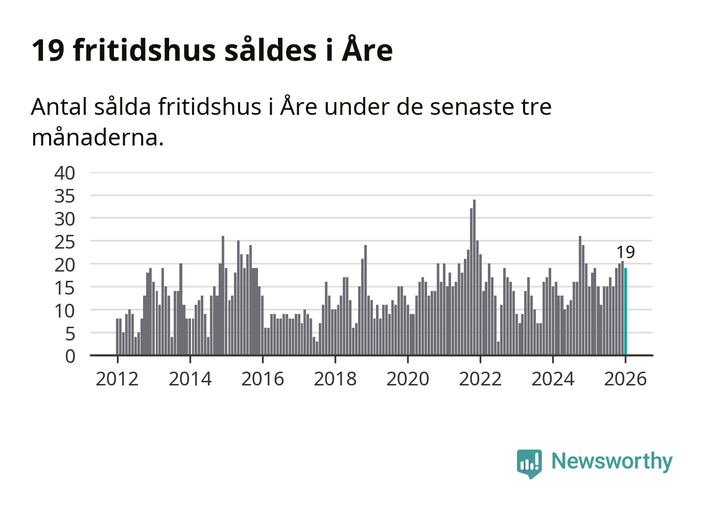 Sammanlagt såldes 19 fritidshus i Åre kommun mellan november 2025 och januari till ett genomsnittligt pris på 3,3 miljoner kronor. I fjol gjordes 15 affärer vid den här tiden på året.