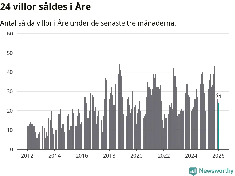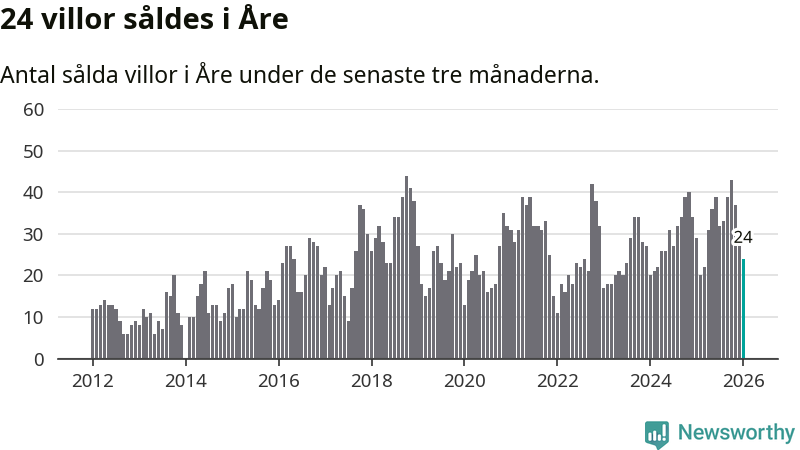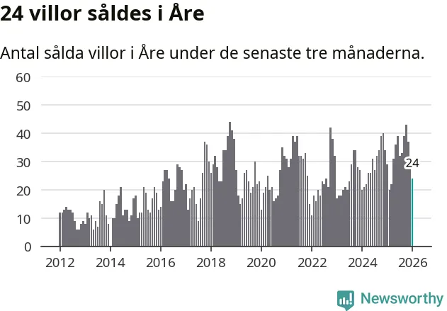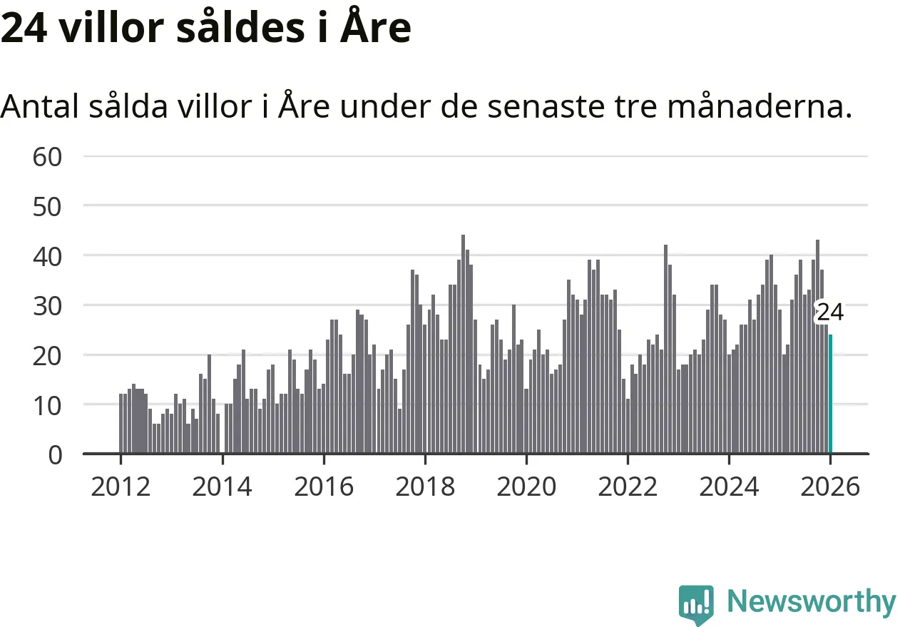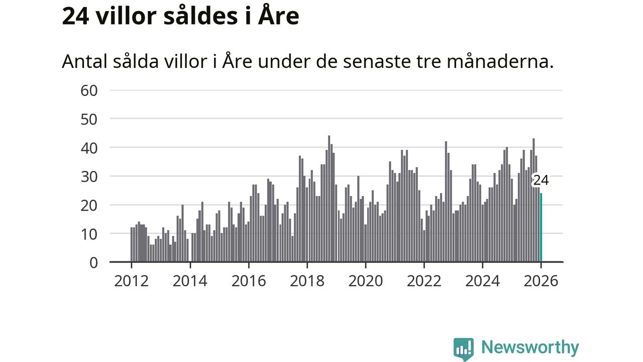 Mellan november och januari gjordes sammanlagt 24 affärer med villor i Åre kommun. Det kan jämföras med 29 vid motsvarande tid i fjol.