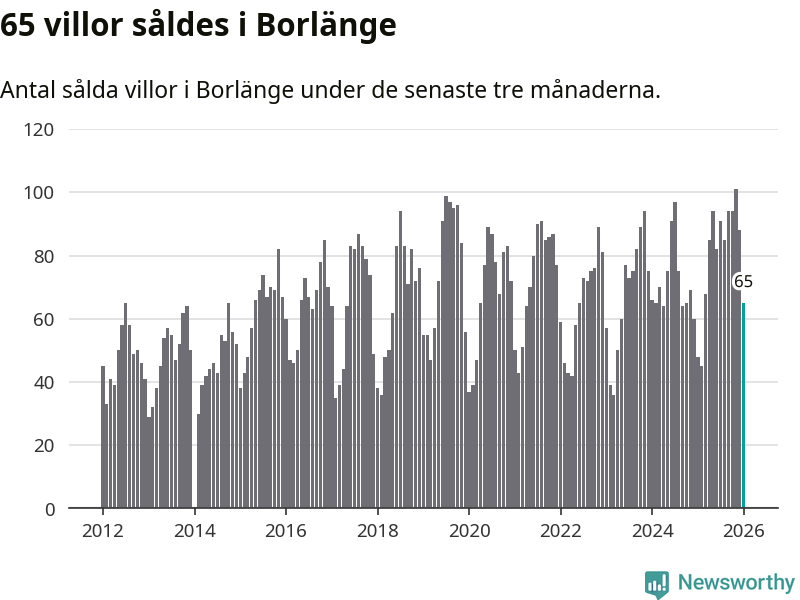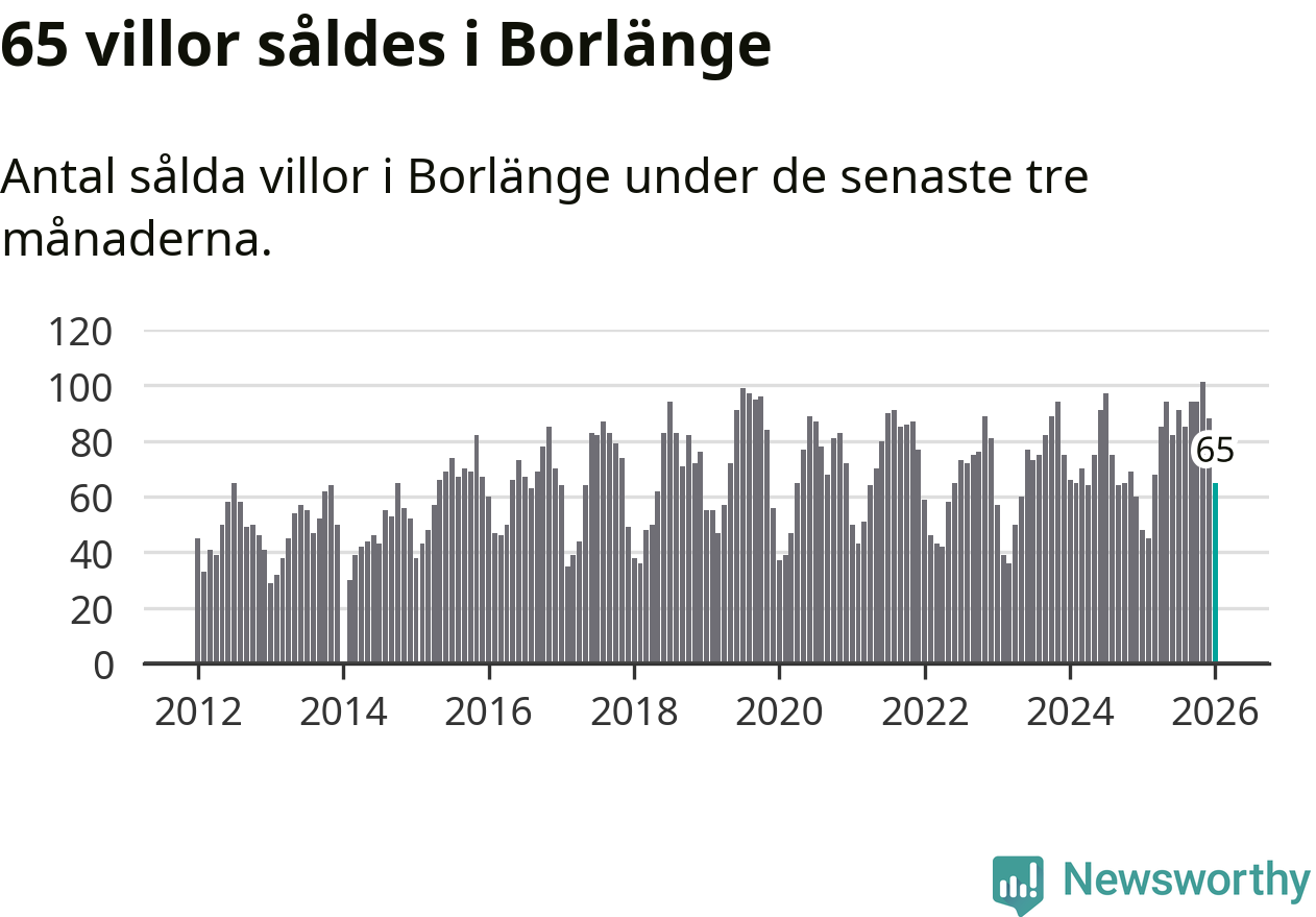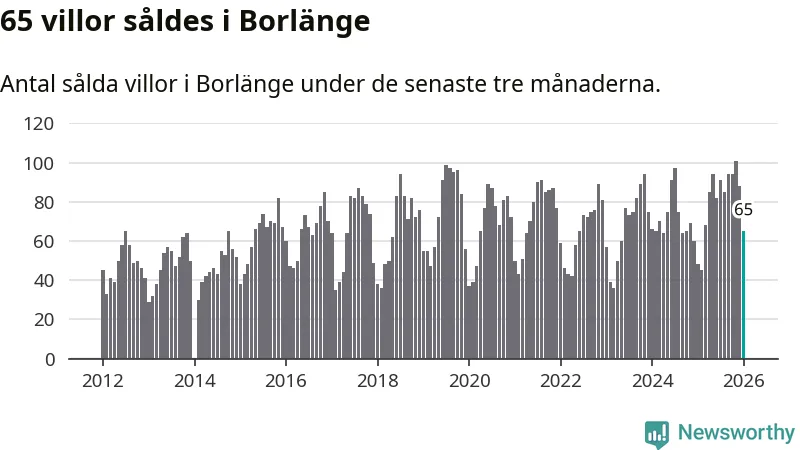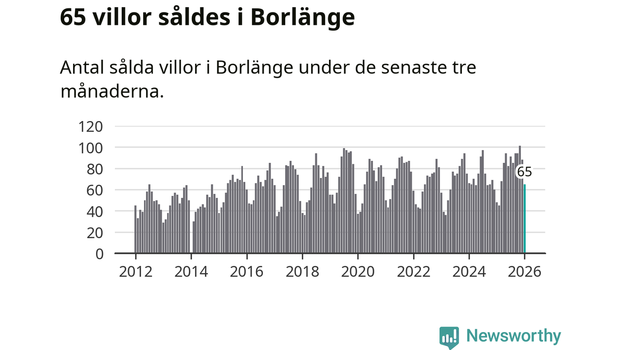 Sammanlagt såldes 65 villor i Borlänge kommun mellan november och januari till ett genomsnittligt pris på 2,7 miljoner kronor. I fjol gjordes 48 affärer vid den här tiden på året.