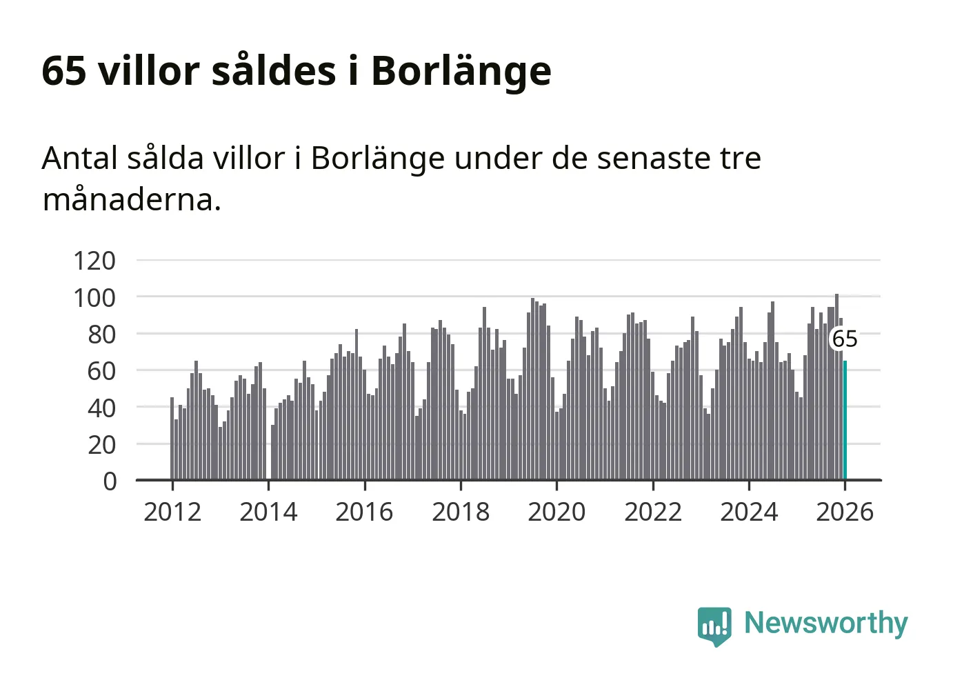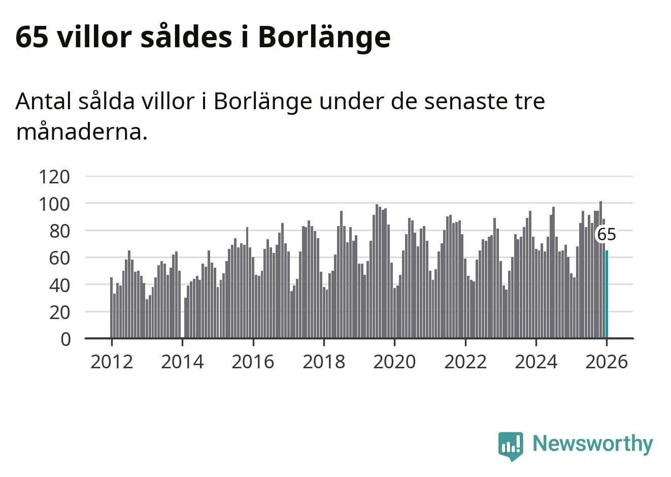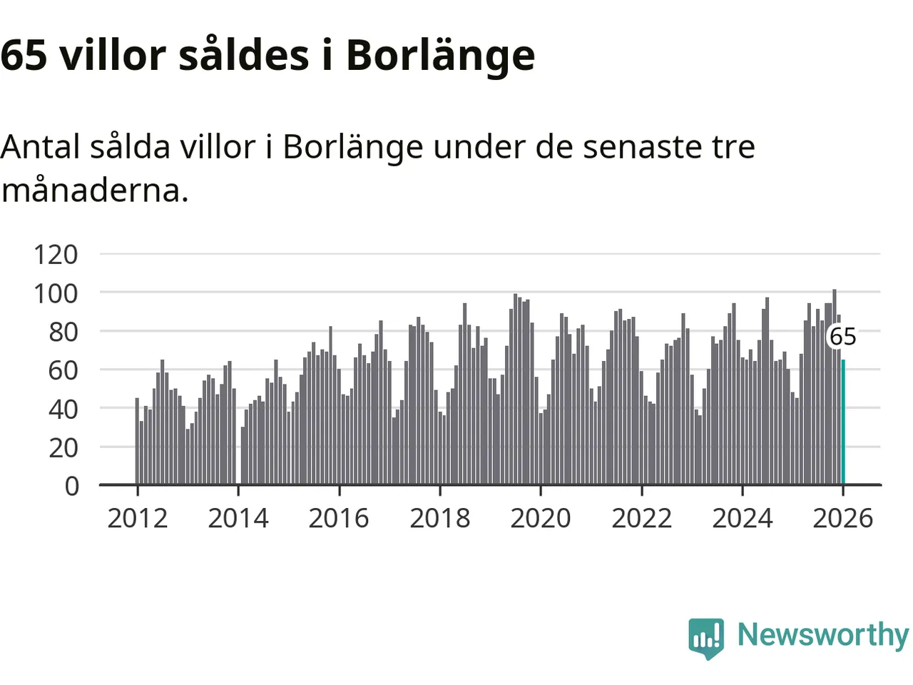 Sammanlagt såldes 65 villor i Borlänge kommun mellan november och januari till ett genomsnittligt pris på 2,7 miljoner kronor. I fjol gjordes 48 affärer vid den här tiden på året.