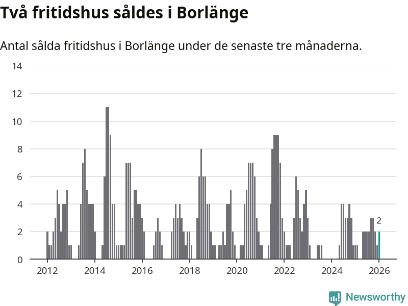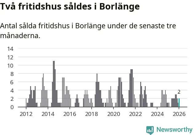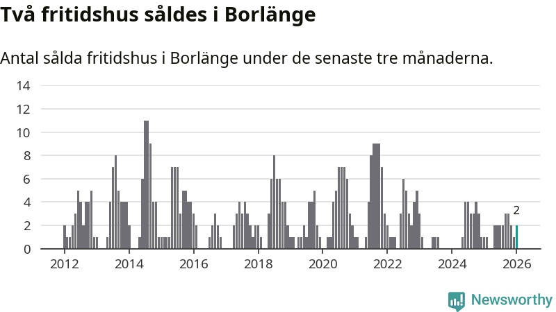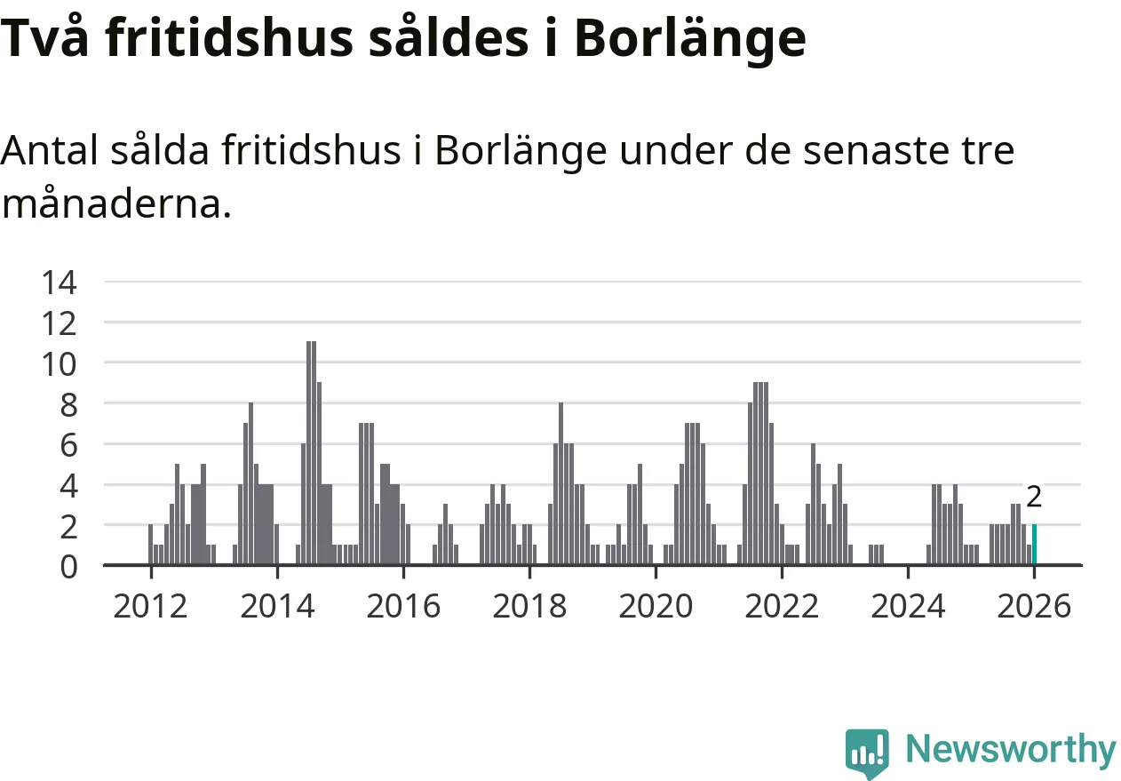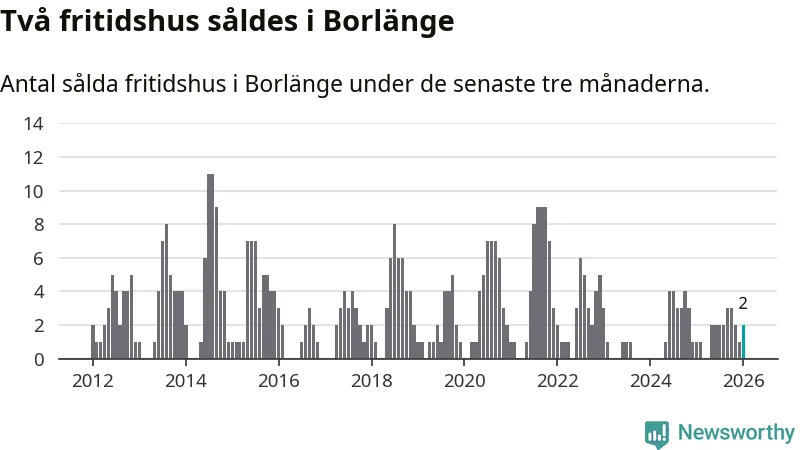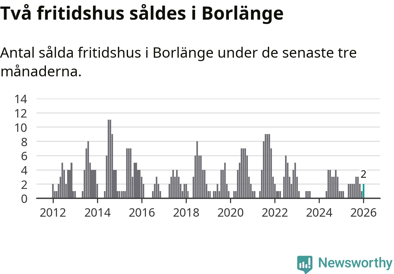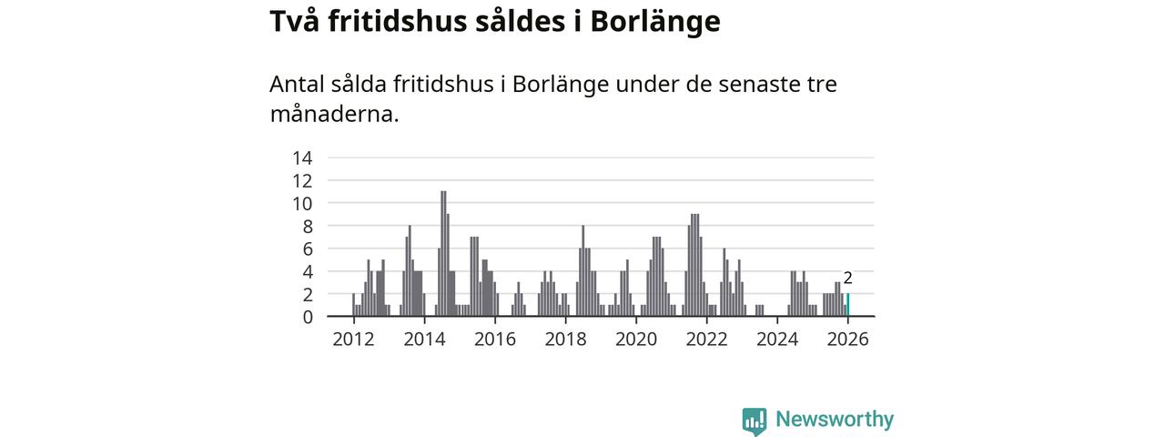 Mellan november och januari gjordes sammanlagt två affärer med fritidshus i Borlänge kommun. Det kan jämföras med ett vid motsvarande tid i fjol.
