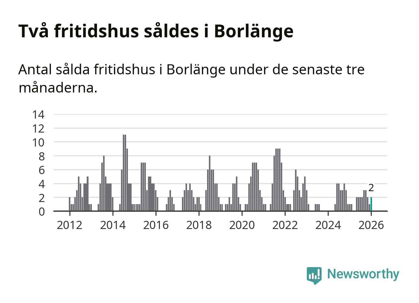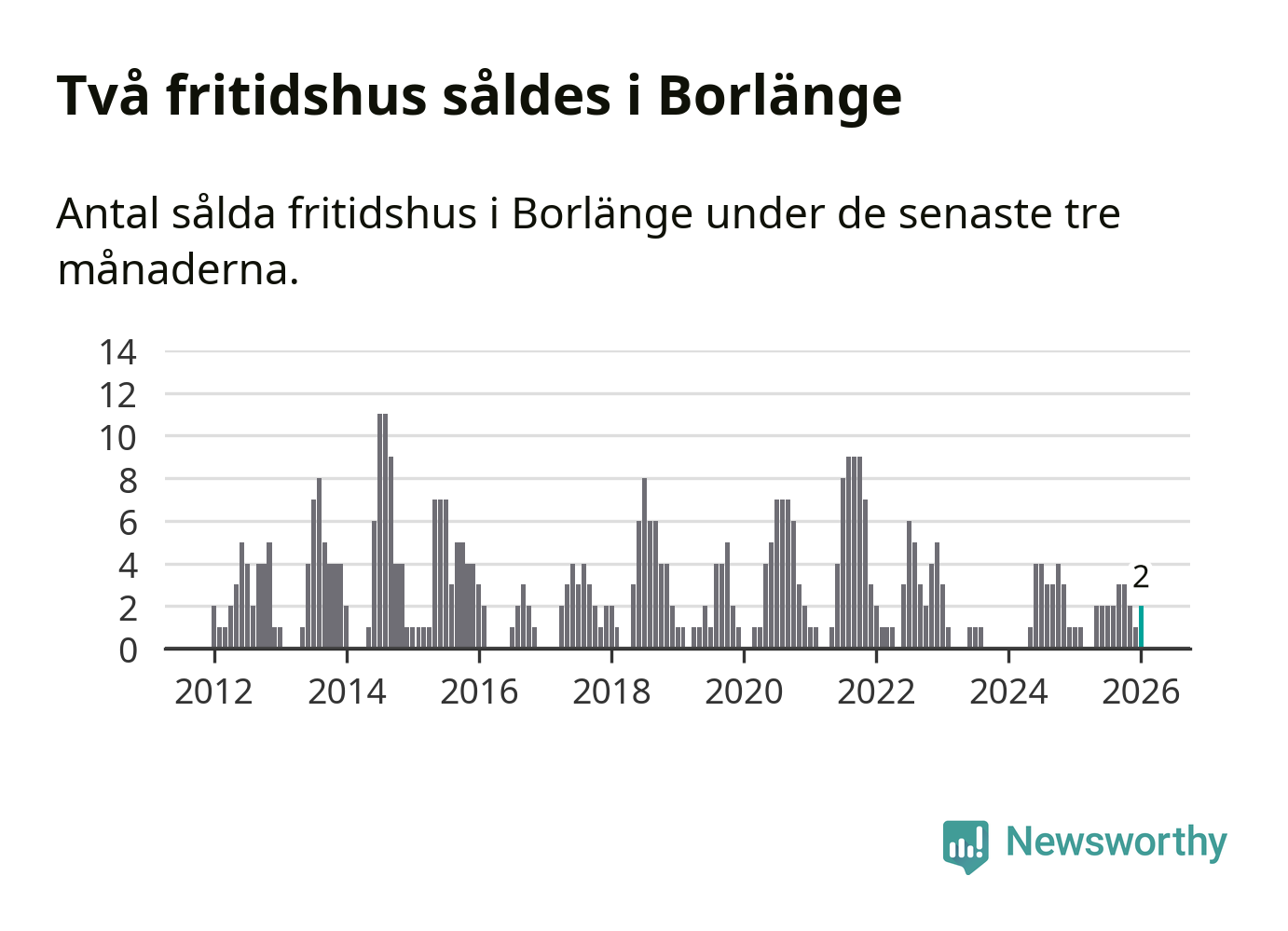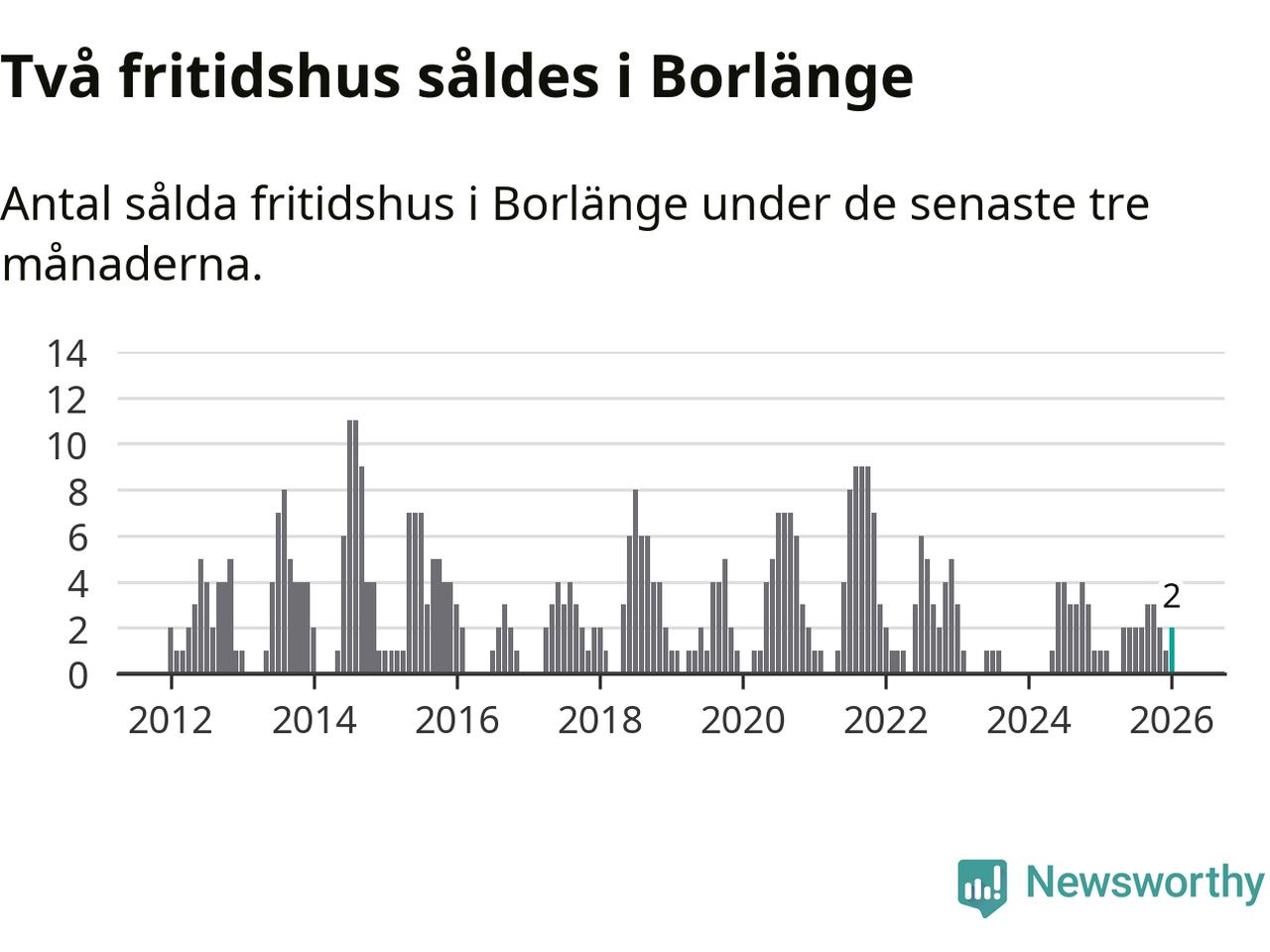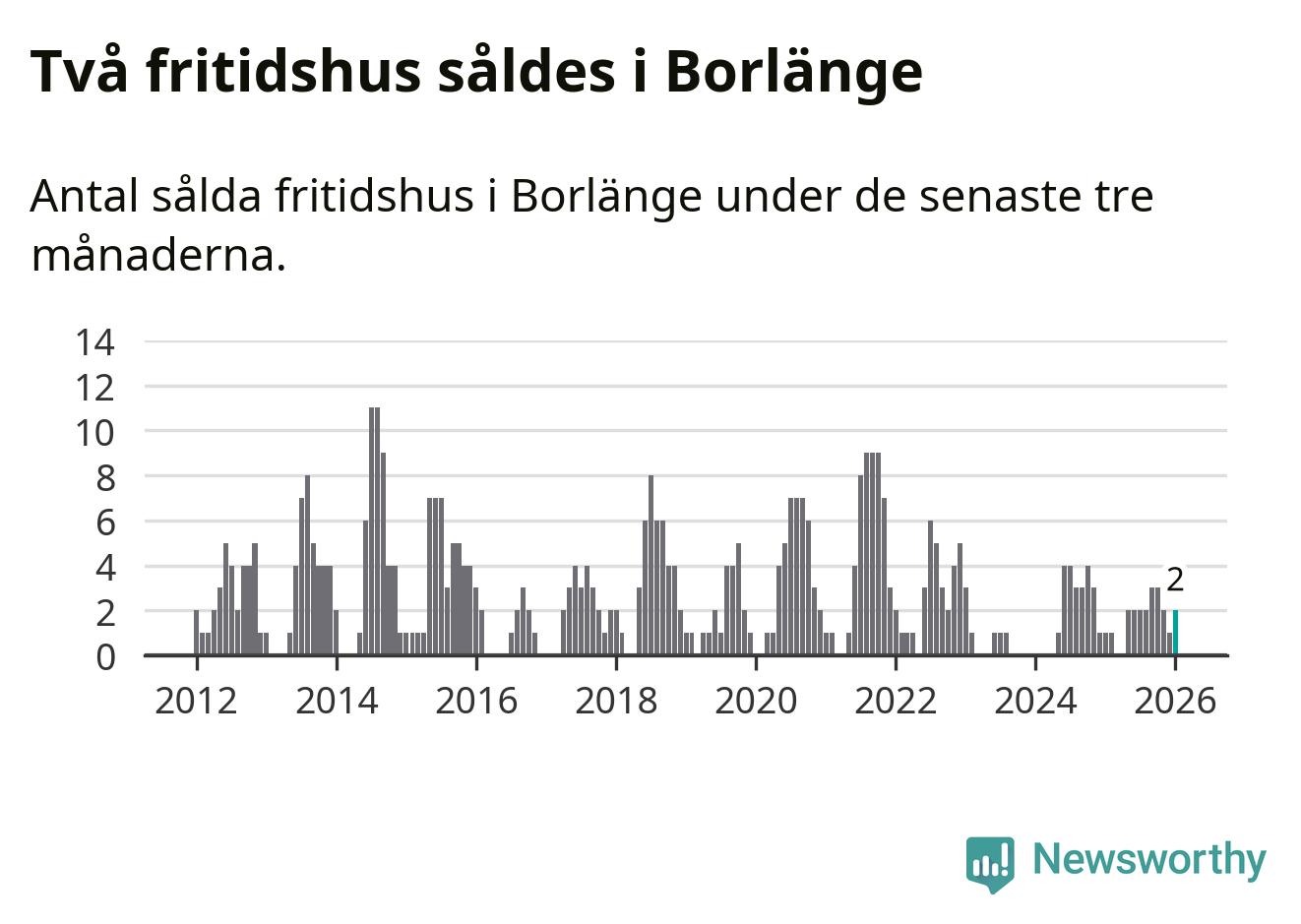 Mellan november och januari gjordes sammanlagt två affärer med fritidshus i Borlänge kommun. Det kan jämföras med ett vid motsvarande tid i fjol.