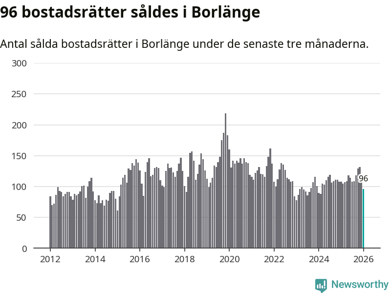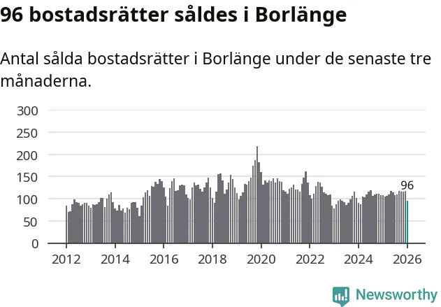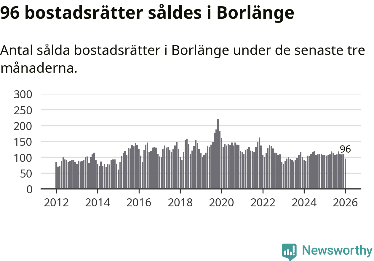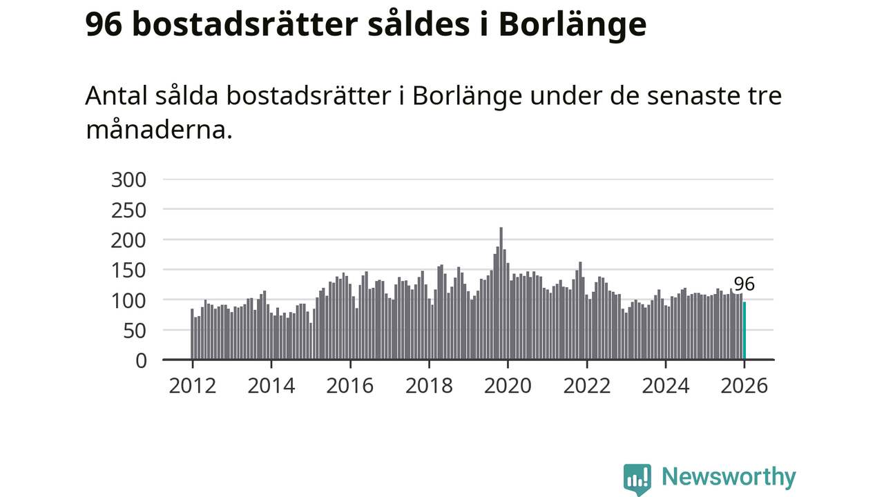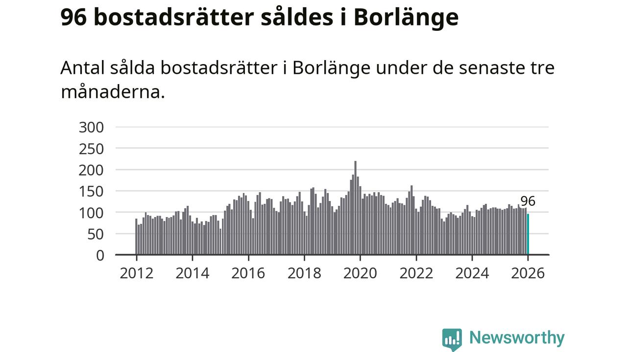 Sammanlagt såldes 96 bostadsrätter i Borlänge kommun mellan november och januari till ett genomsnittligt pris på 1,1 miljoner kronor. I fjol gjordes 108 affärer vid den här tiden på året.