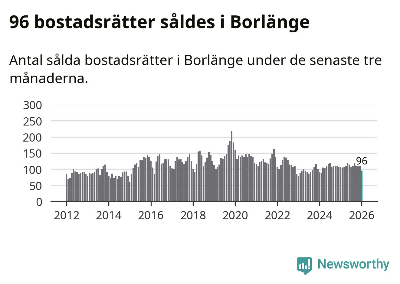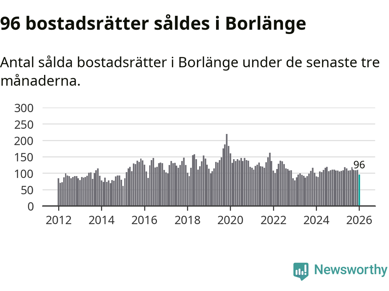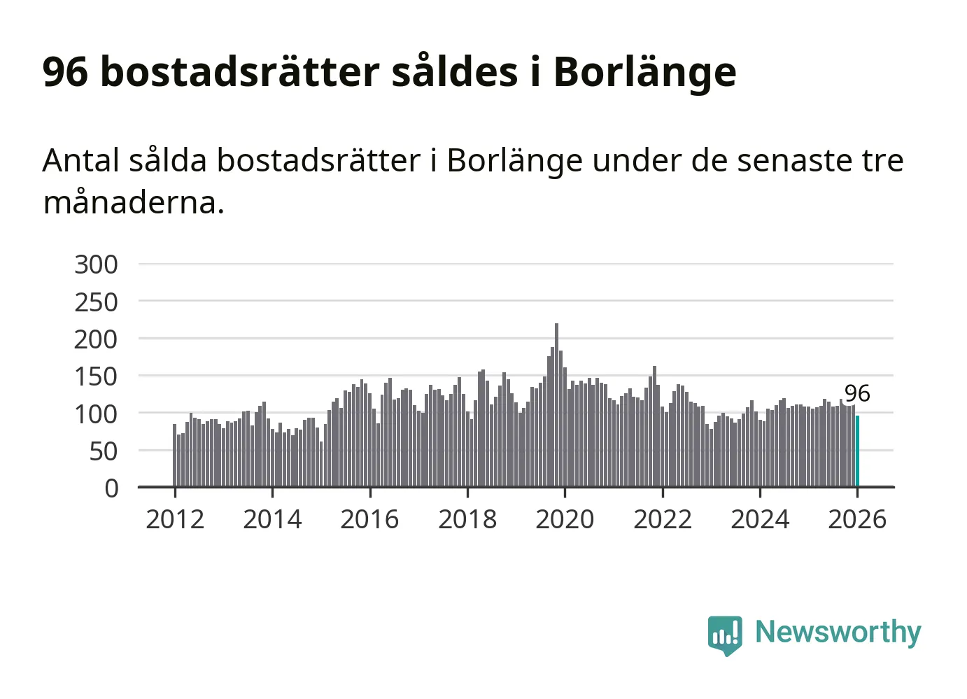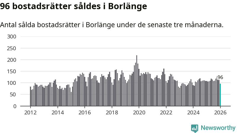 Sammanlagt såldes 96 bostadsrätter i Borlänge kommun mellan november och januari till ett genomsnittligt pris på 1,1 miljoner kronor. I fjol gjordes 108 affärer vid den här tiden på året.