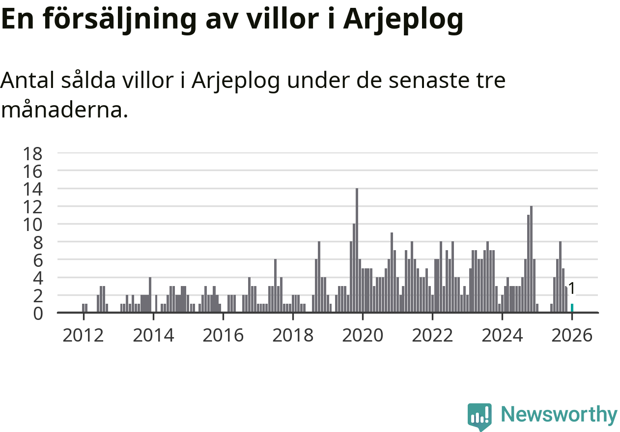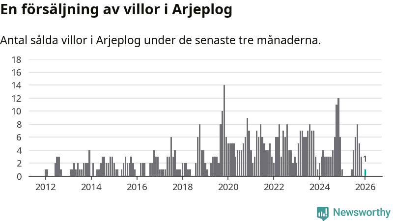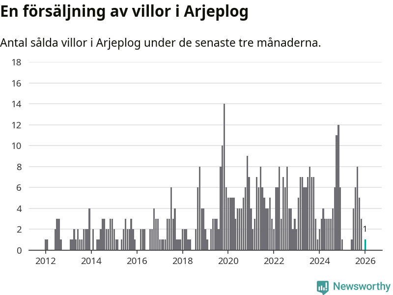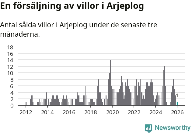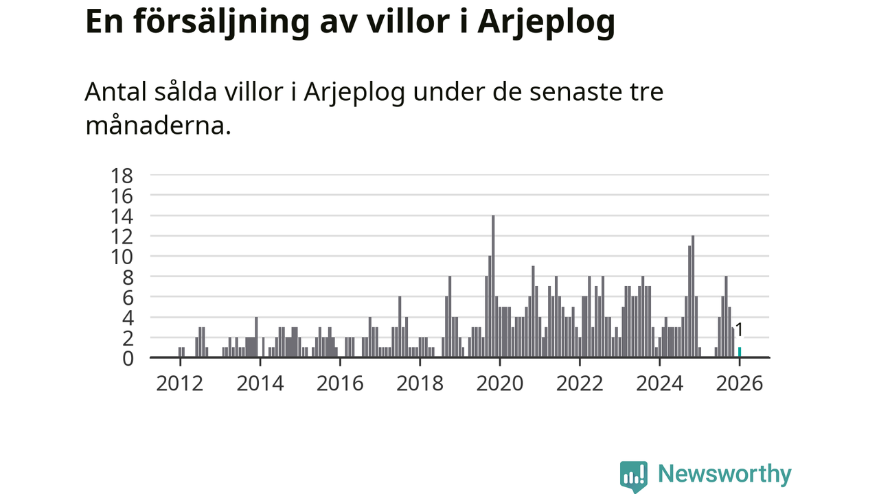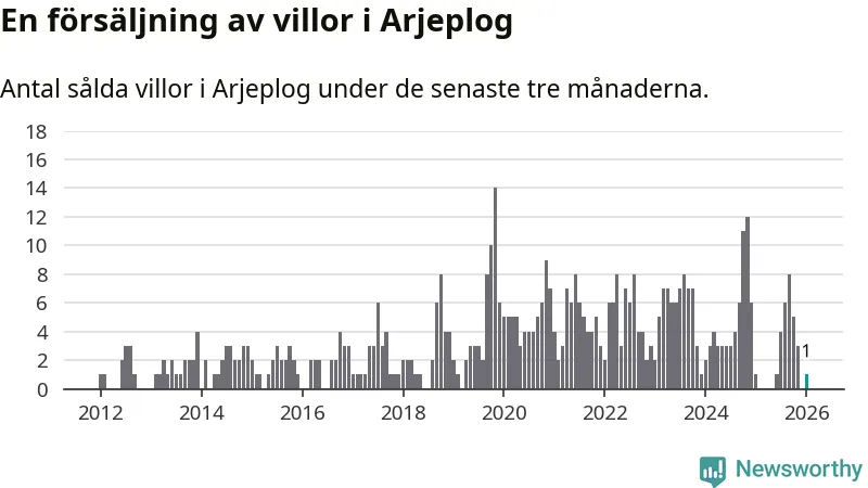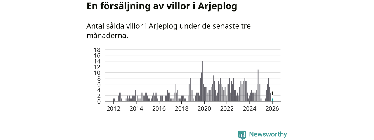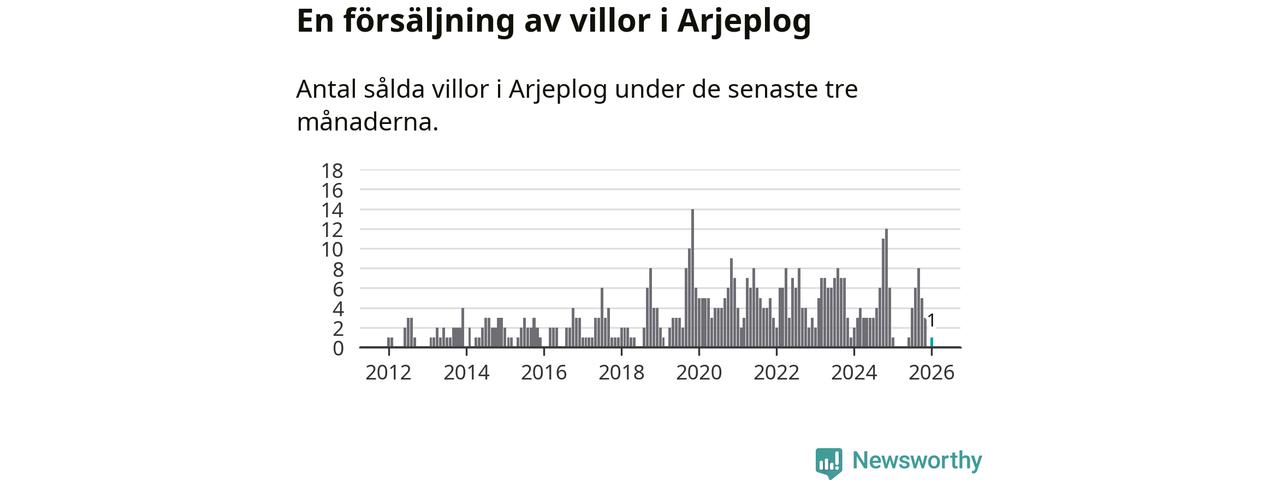 Mellan november och januari gjordes sammanlagt en affär med villor i Arjeplogs kommun. Det är lika många affärer som vid motsvarande tid i fjol.