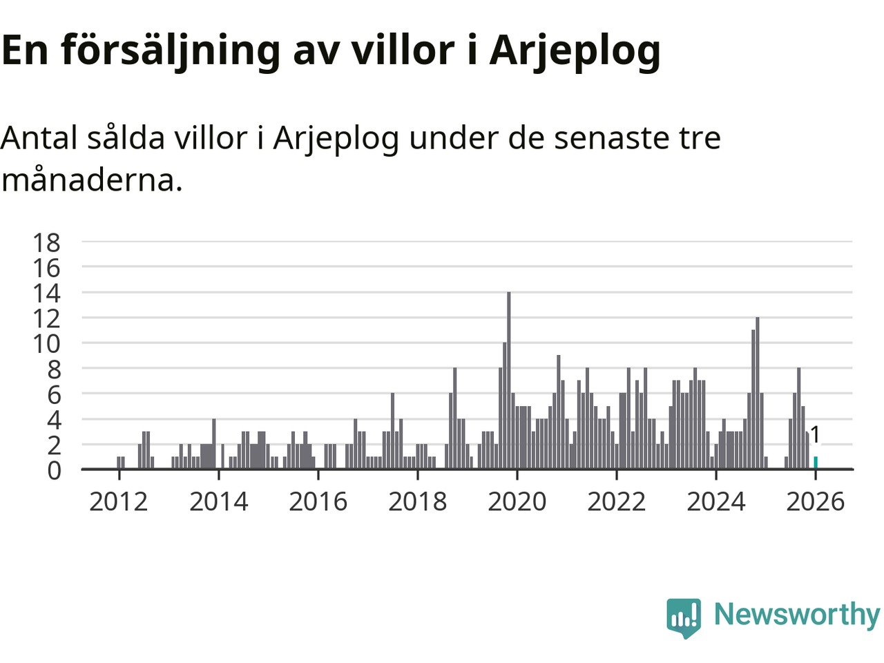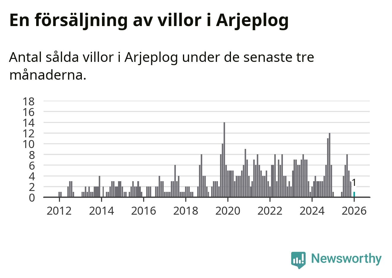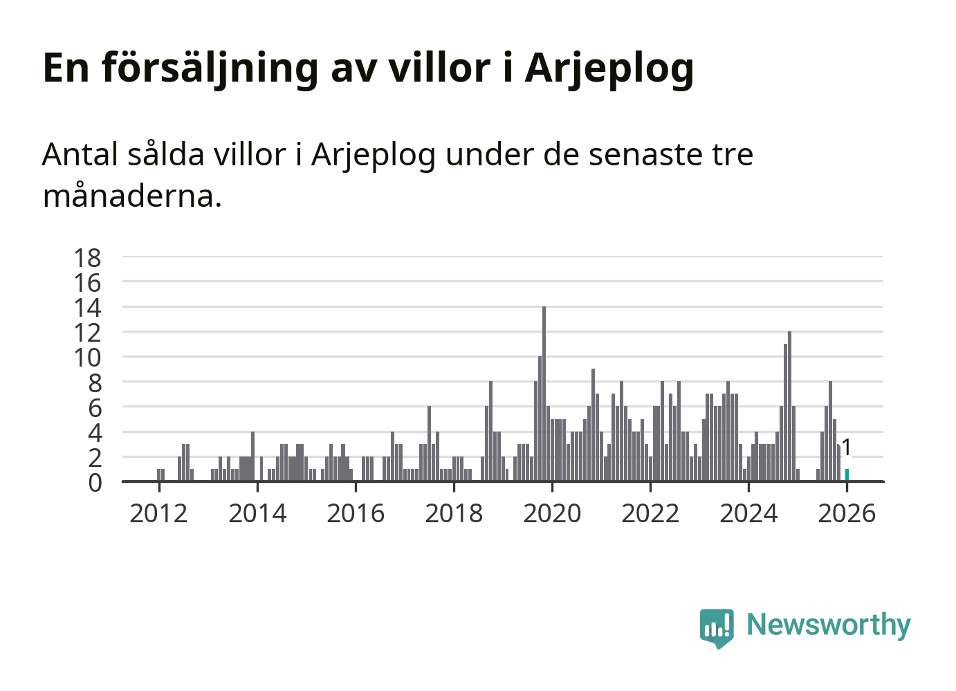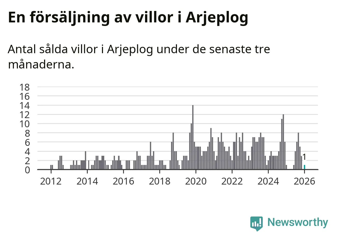 Mellan november och januari gjordes sammanlagt en affär med villor i Arjeplogs kommun. Det är lika många affärer som vid motsvarande tid i fjol.