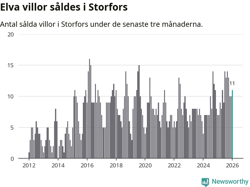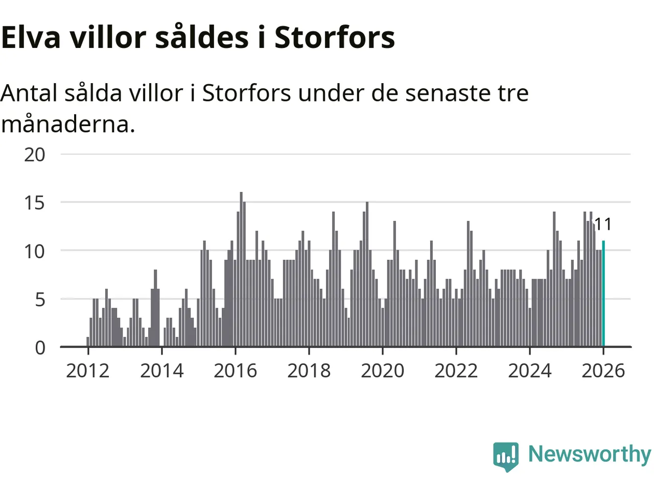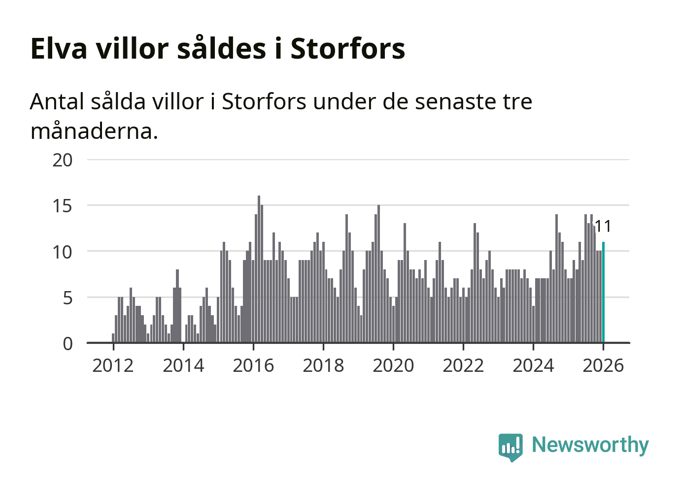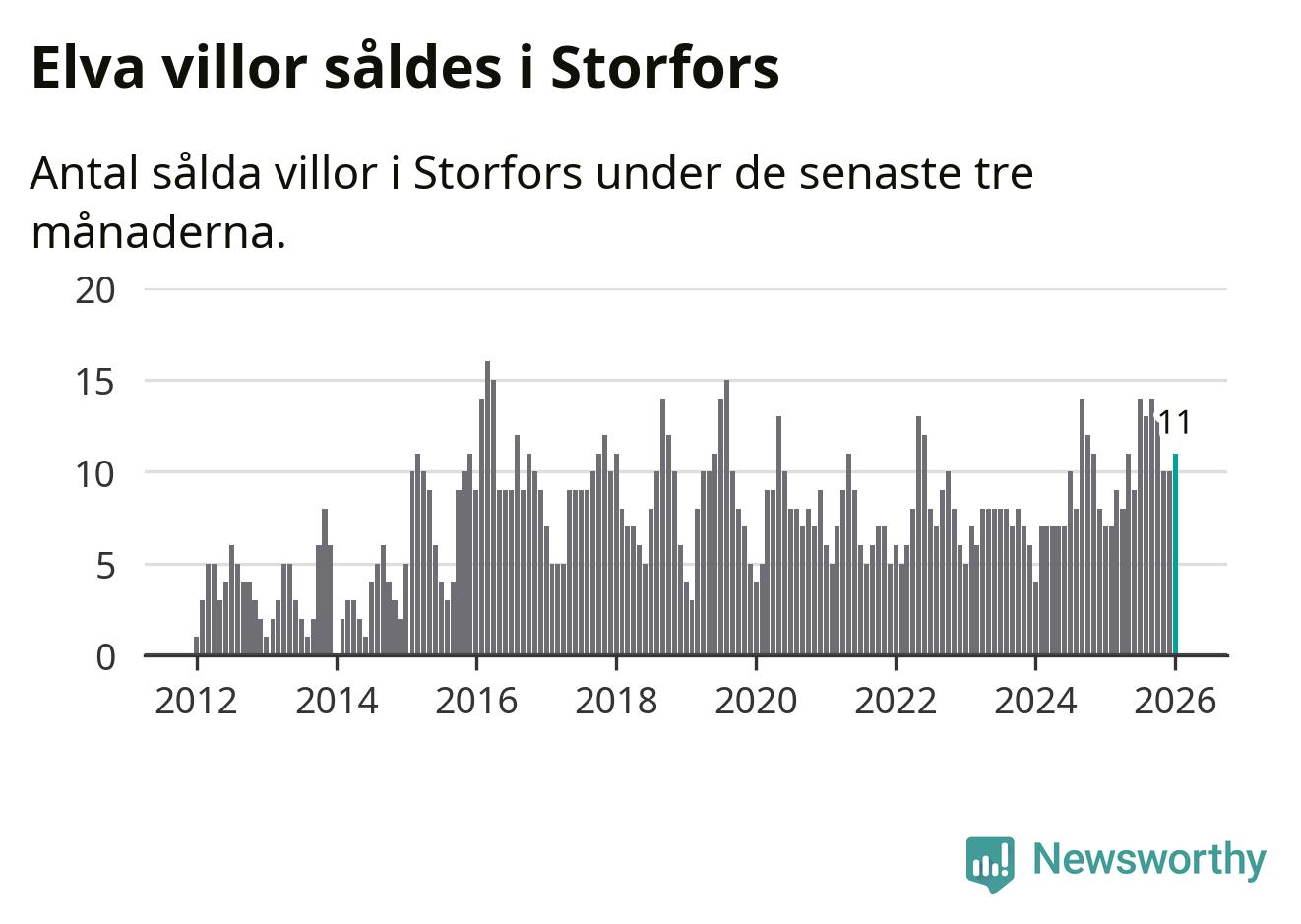 Mellan november och januari gjordes sammanlagt elva affärer med villor i Storfors kommun. Det kan jämföras med sju vid motsvarande tid i fjol.