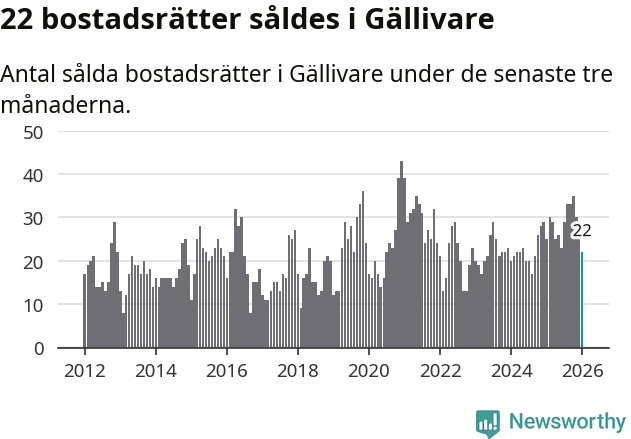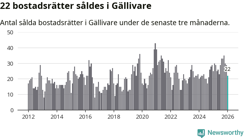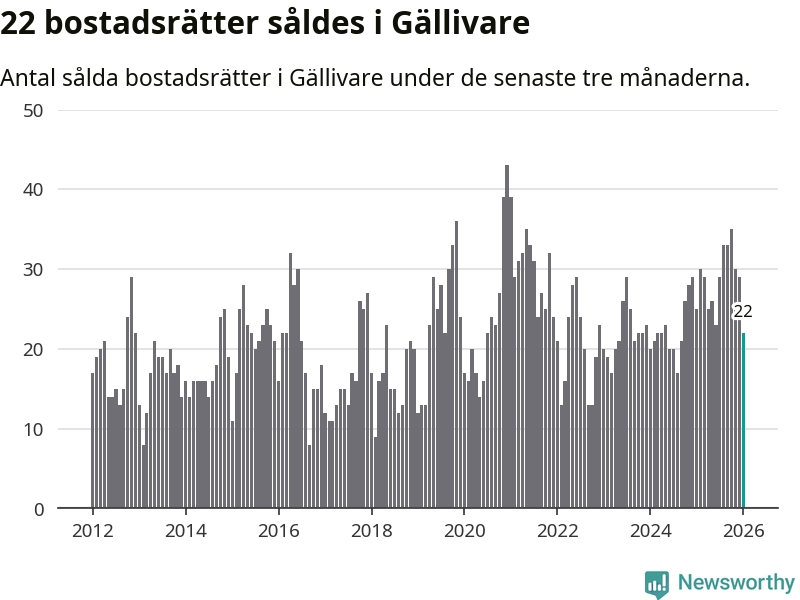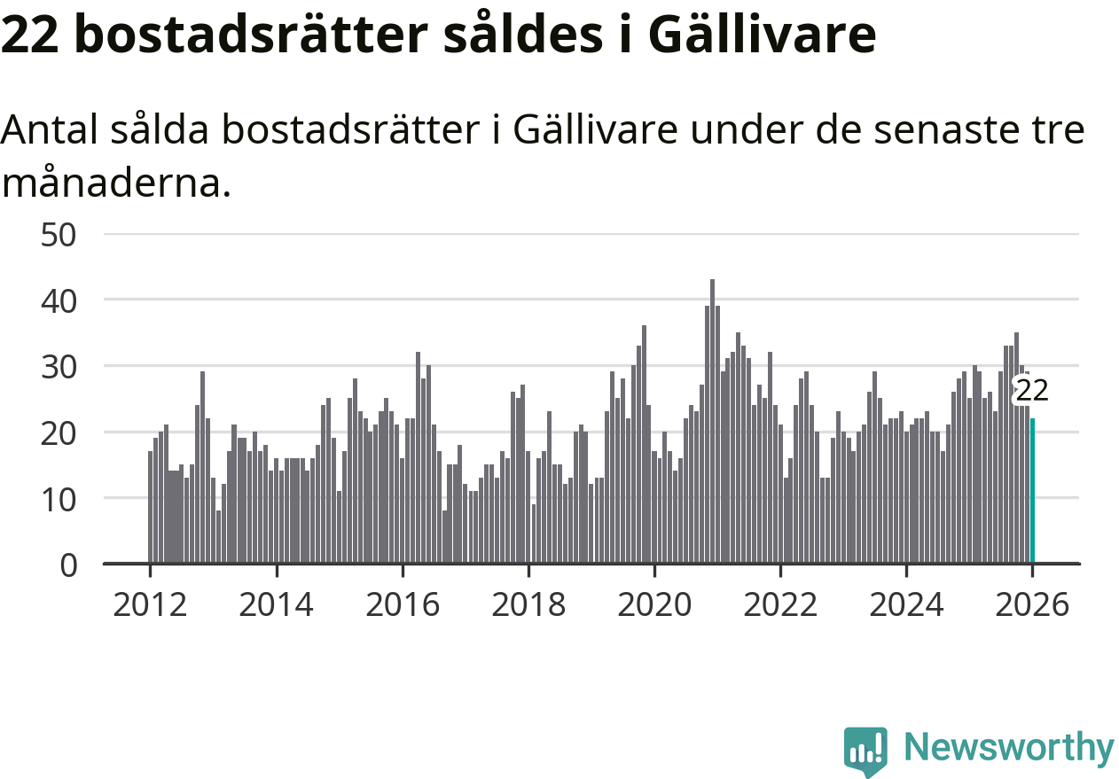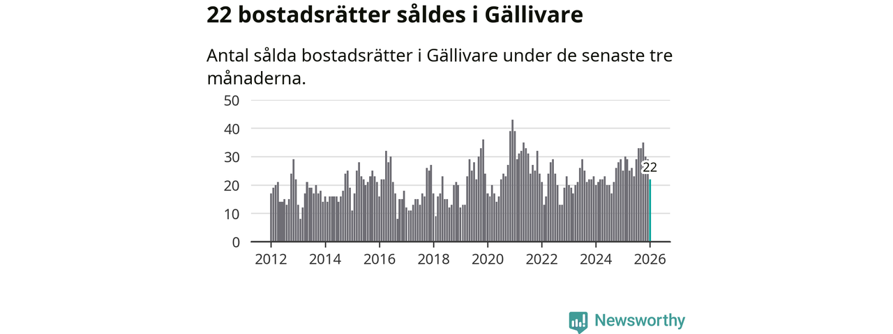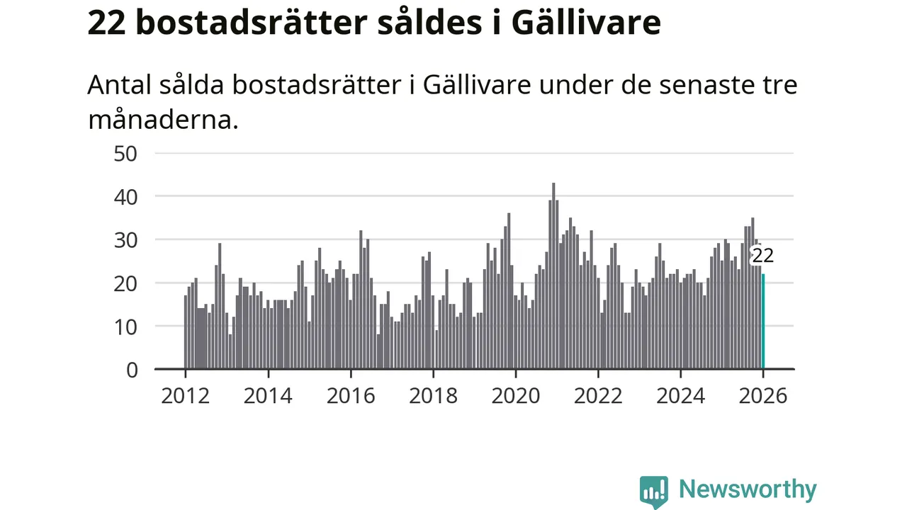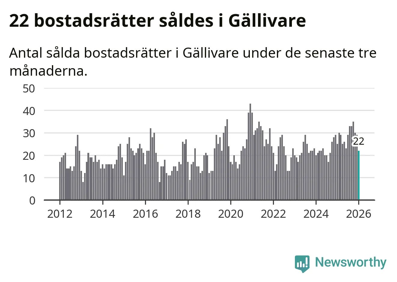 Mellan november och januari gjordes sammanlagt 22 affärer med bostadsrätter i Gällivare kommun. Det kan jämföras med 25 vid motsvarande tid i fjol.