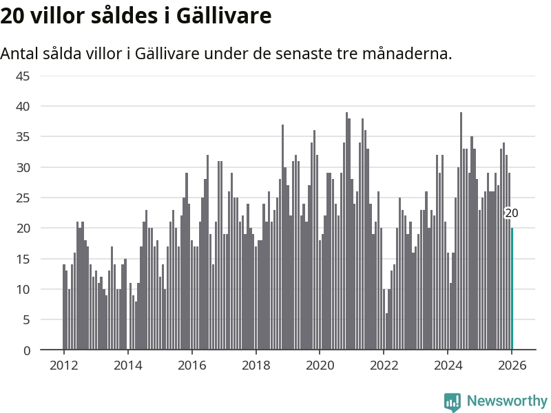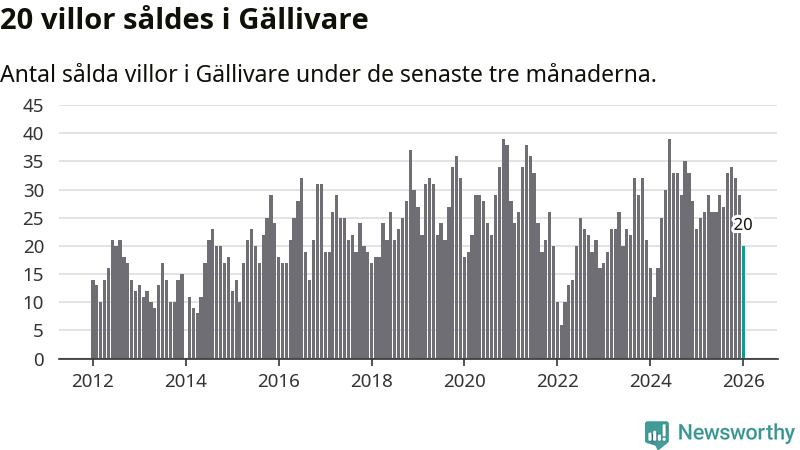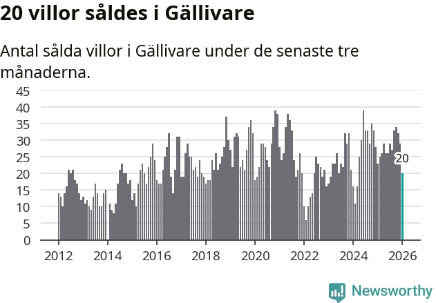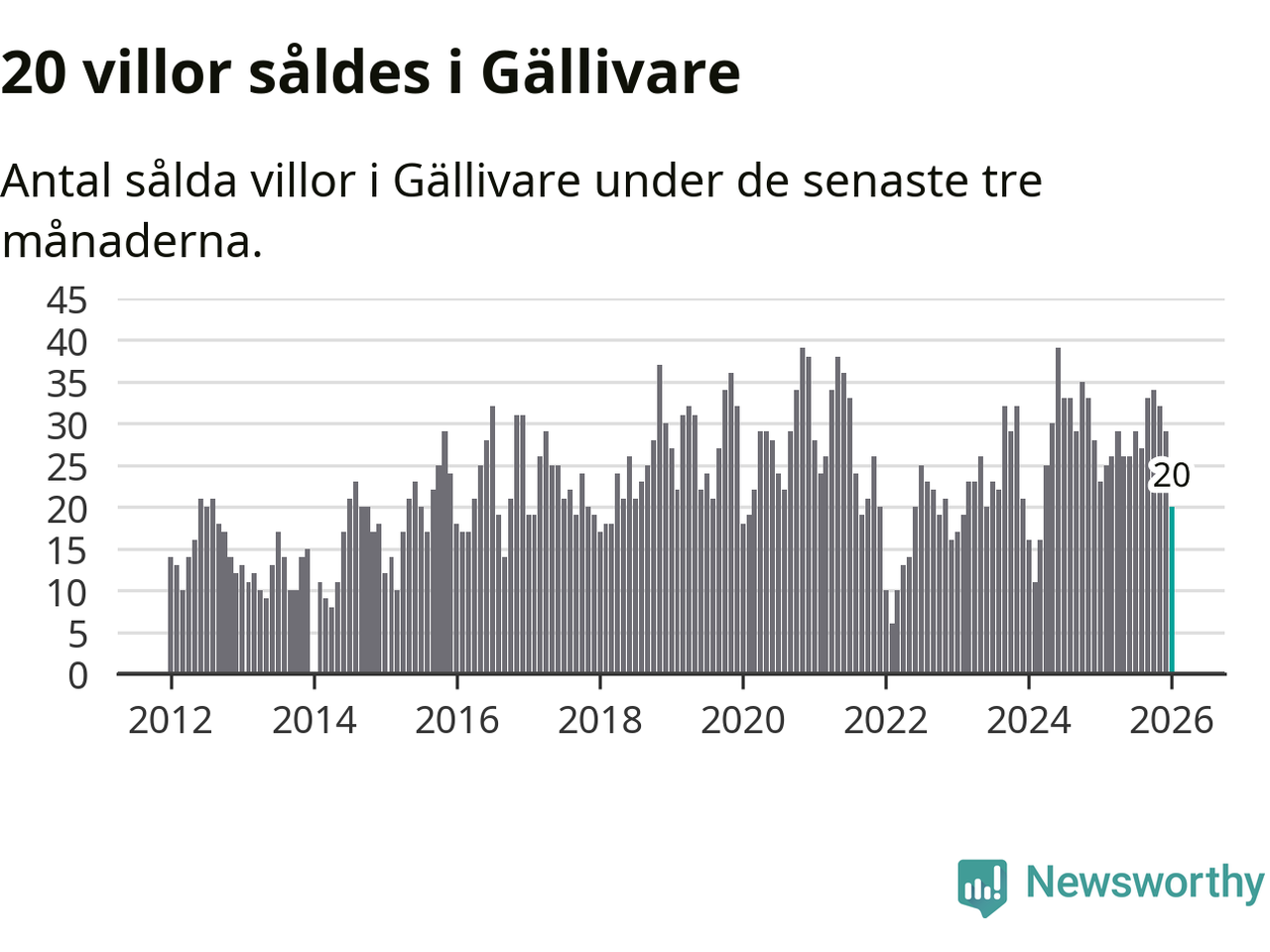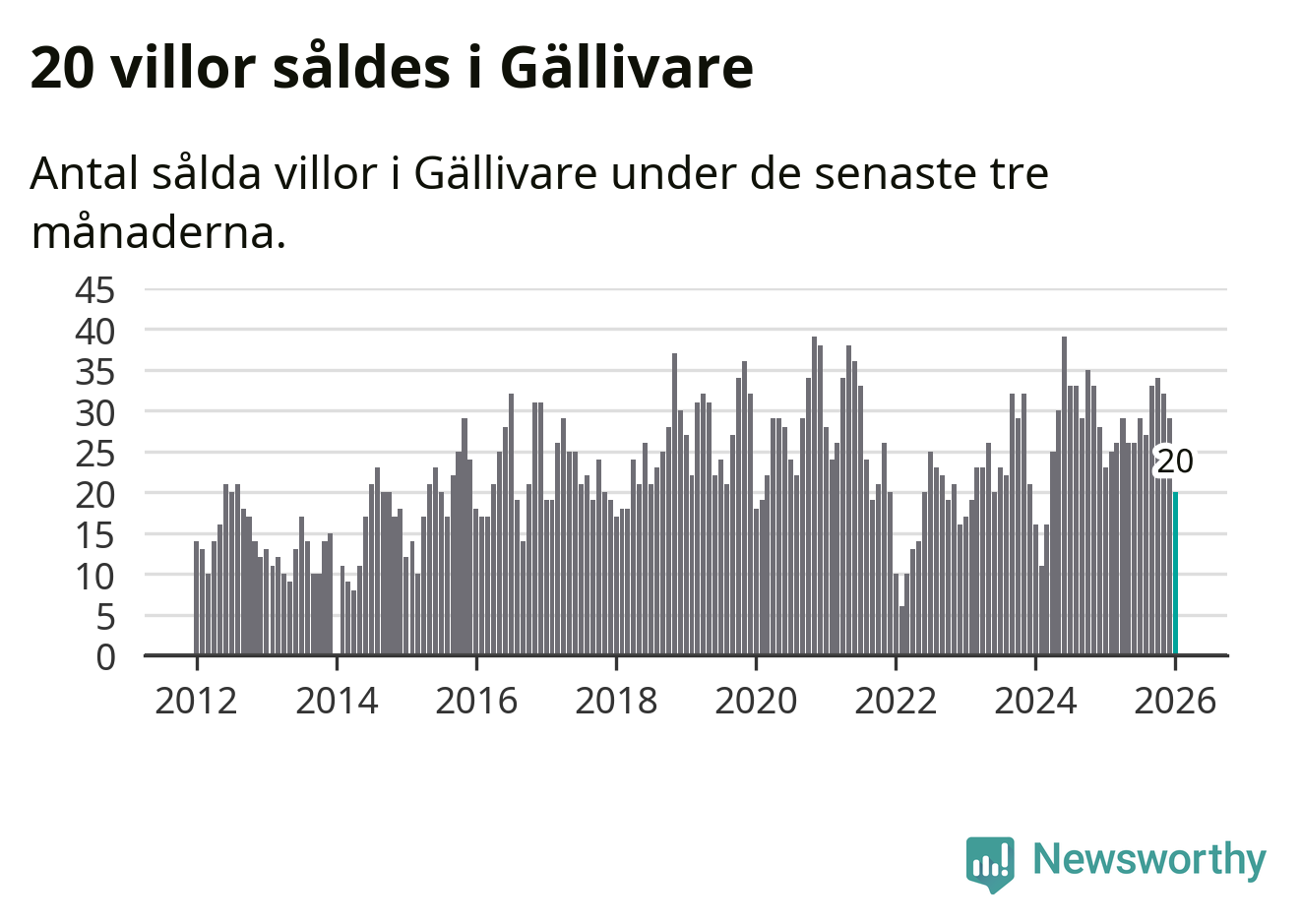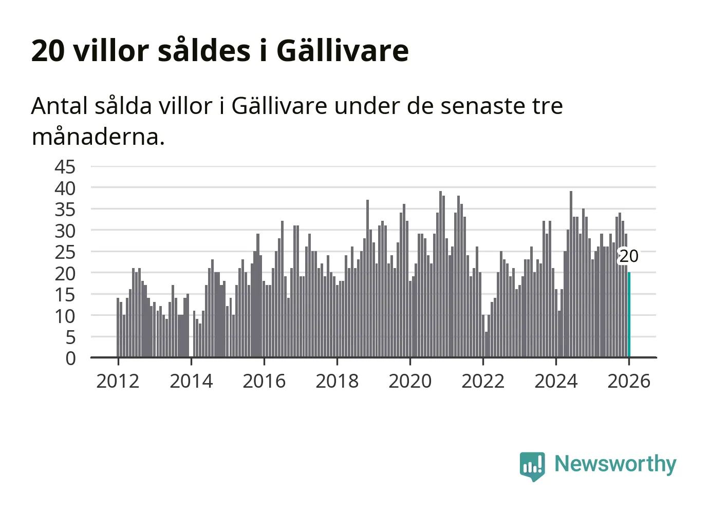 Mellan november och januari gjordes sammanlagt 20 affärer med villor i Gällivare kommun. Det kan jämföras med 23 vid motsvarande tid i fjol.